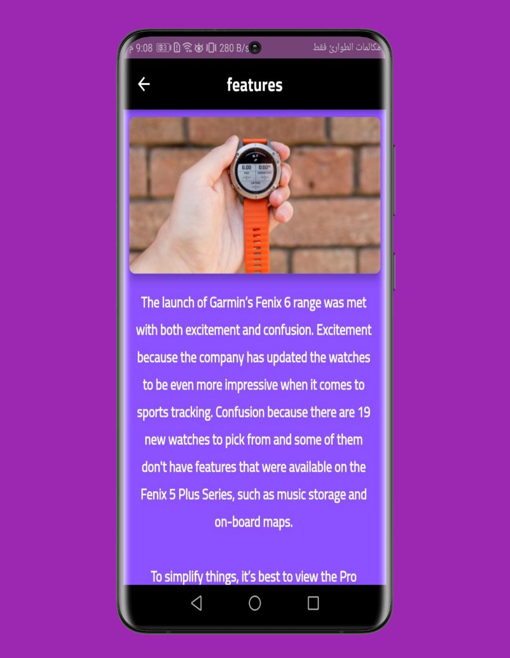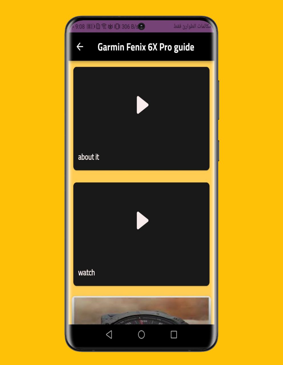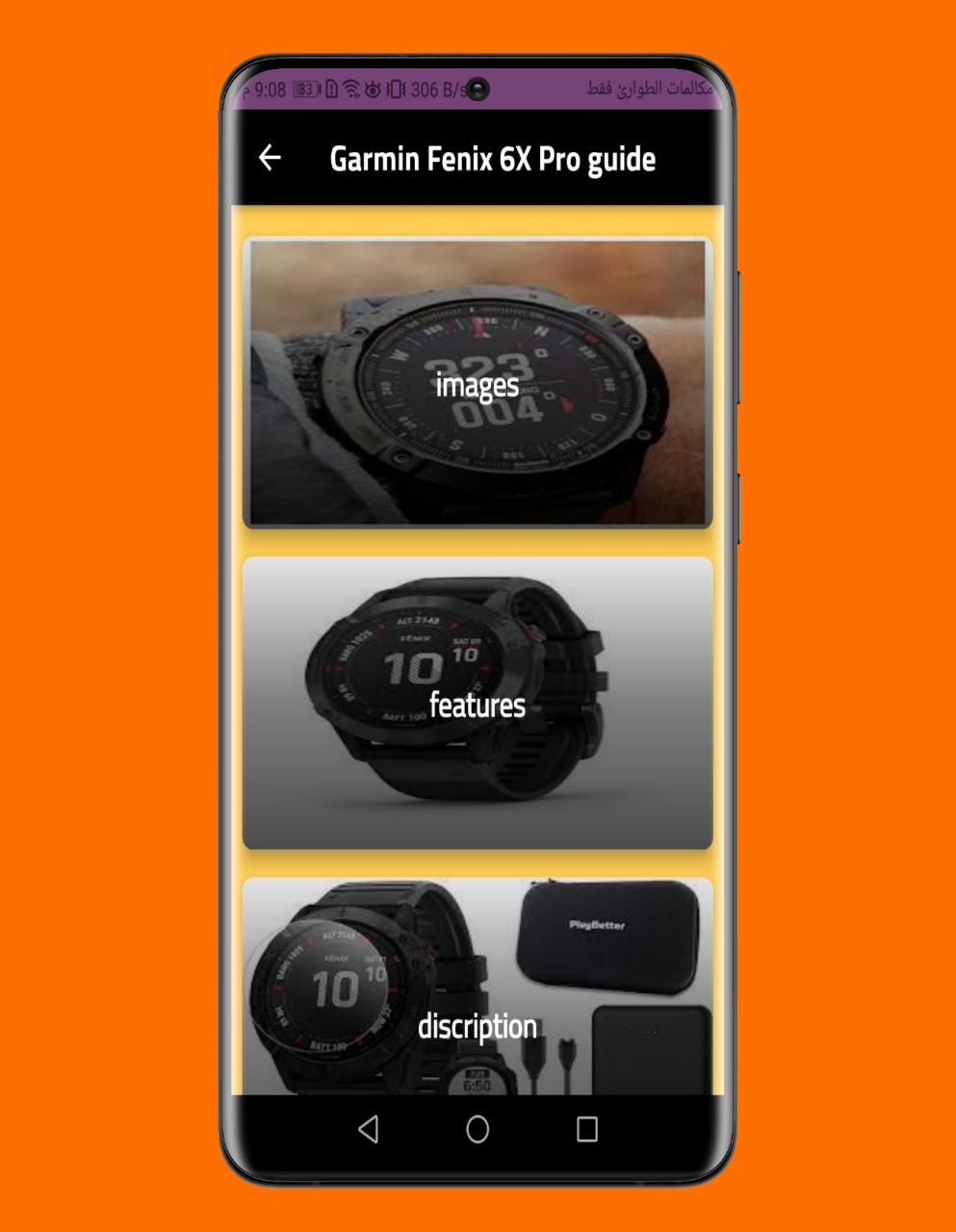 Garmin Fenix 6X Pro guide application contains all the information and features of the Garmin Fenix 6X Pro, as you can get them clearly and easily through the Garmin Fenix 6X Pro guide application, which contains a demonstration video of the Garmin fenix 6, which gives you the opportunity to watch it from In all directions and in all places, it flies and it is also on the ground