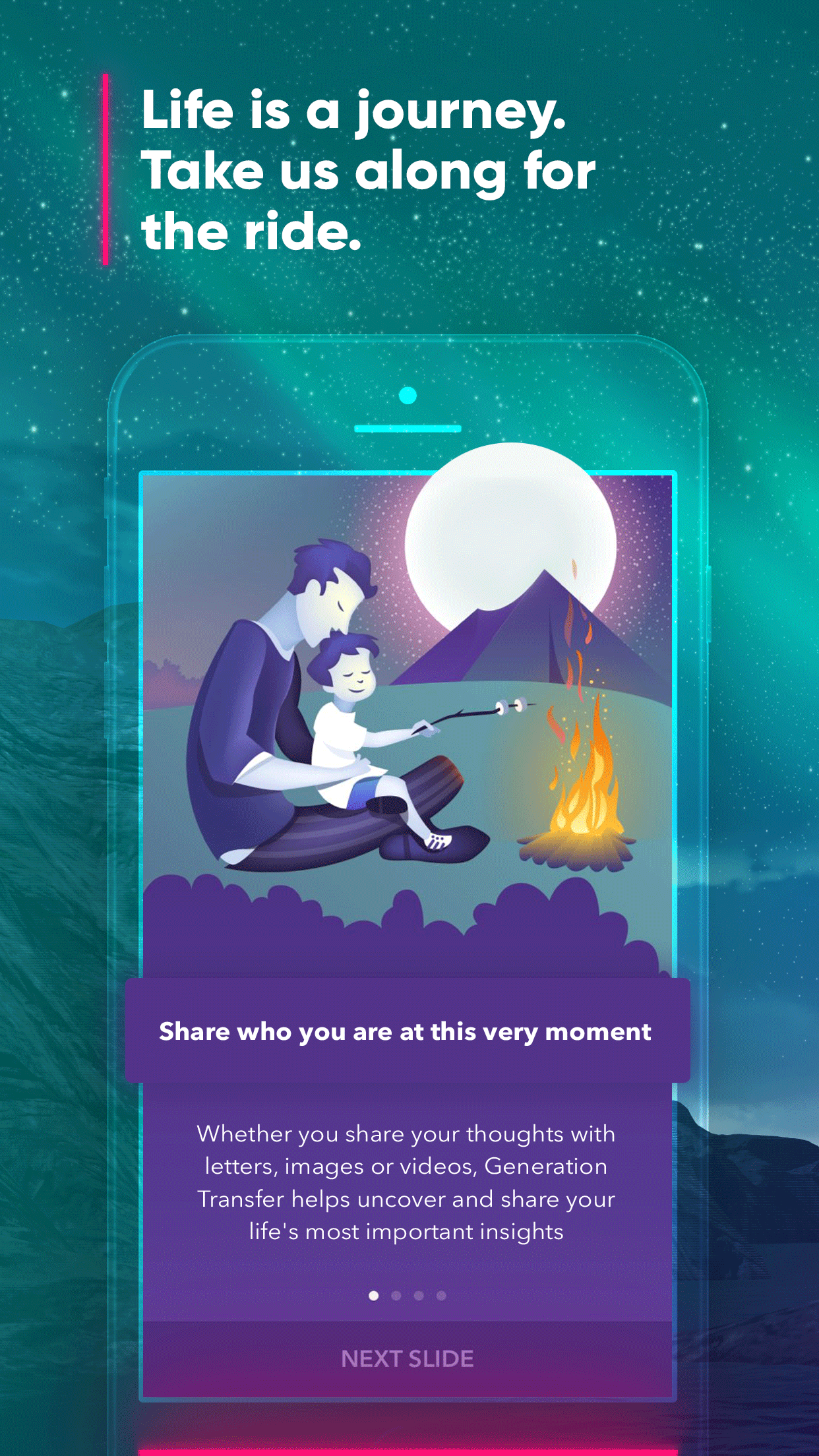 Generation Transfer allows you to build a personalized and private journal that will help build a lasting connection between parents and children in your family. Leave behind copious messages to your family that will allow them to appreciate and understand your legacy. Bridge the gap between generations to help convey messages of love and support via memories that can be passed on and cherished for all eternity.