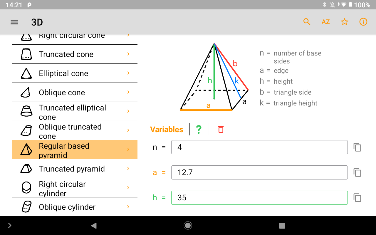 También lo ayudará a calcular el área y el volumen de sólidos 3D, como un: