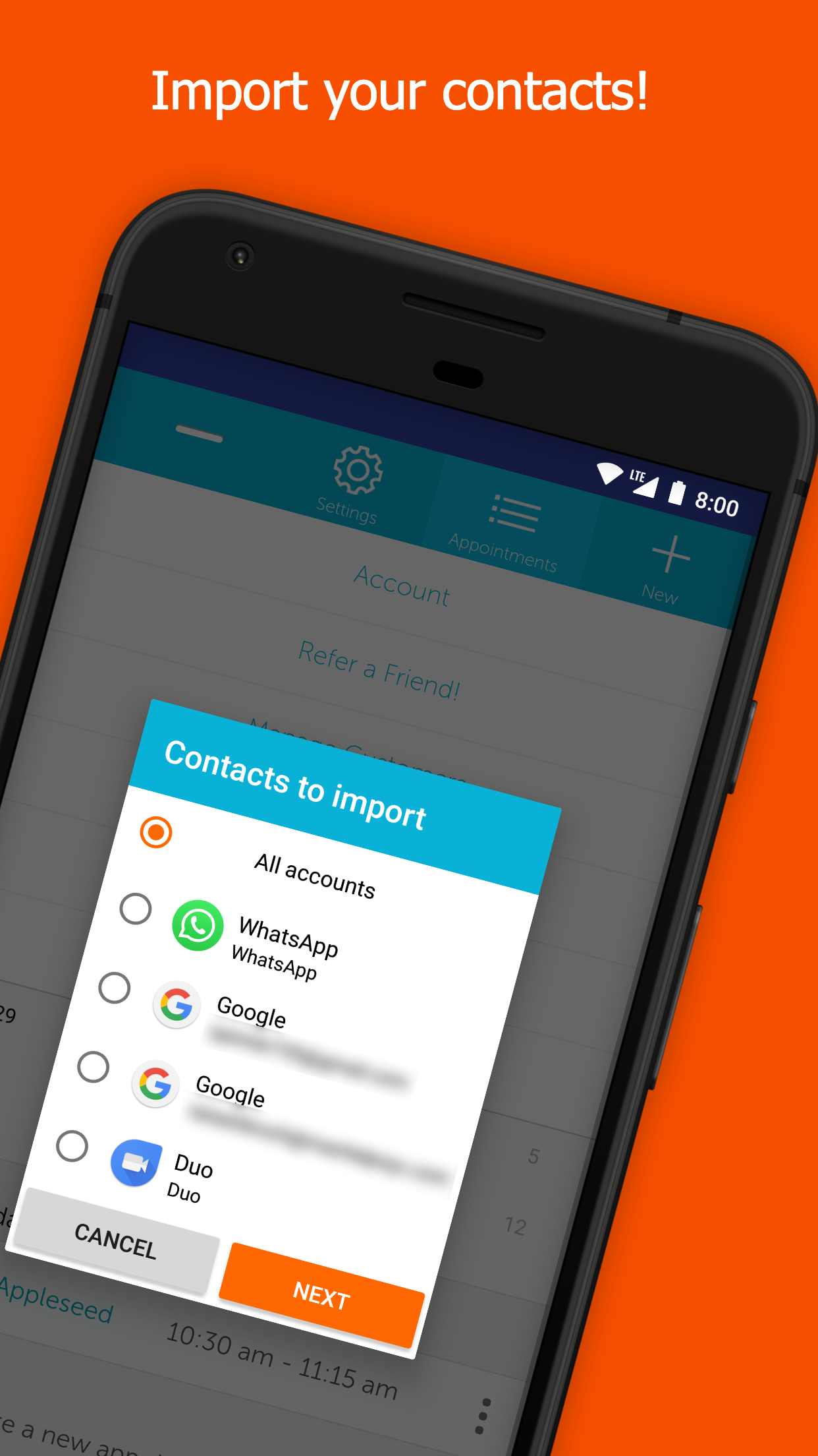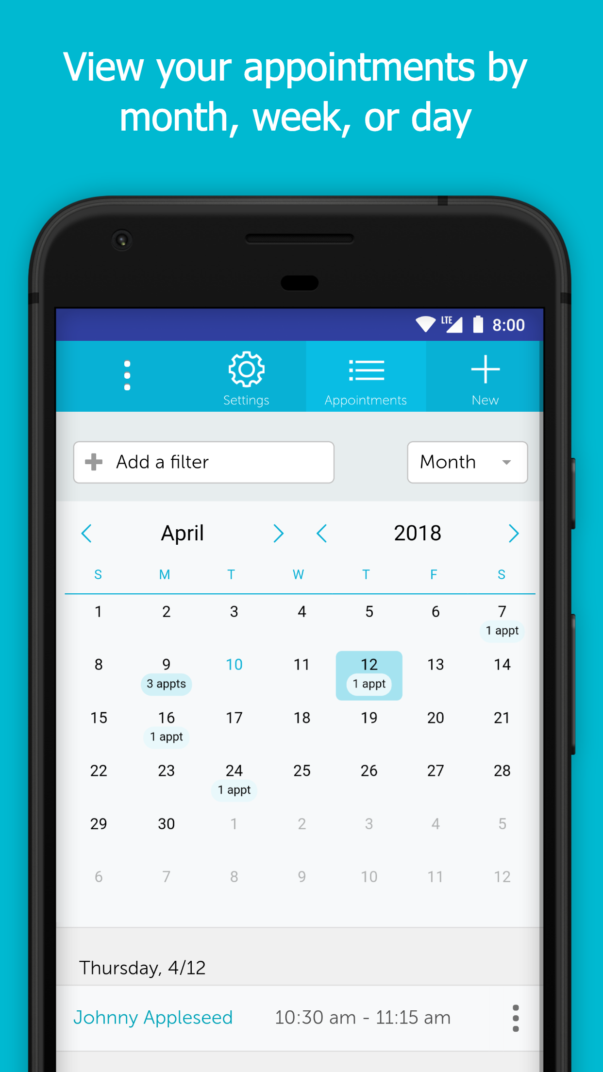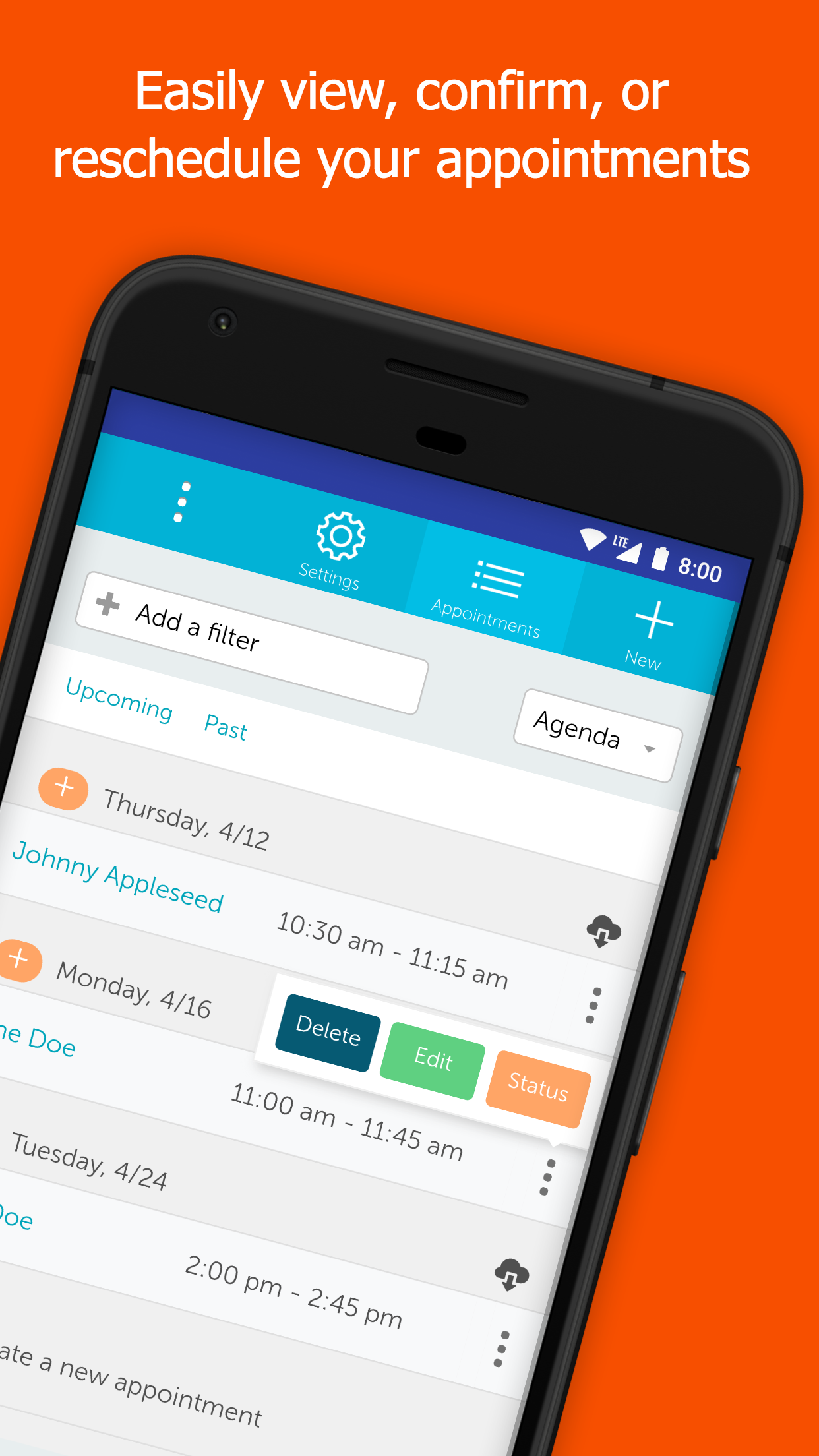 ¡Ahorre tiempo y disminuya las ausencias! Programe citas rápidamente en la mejor aplicación de programación y los clientes reciben automáticamente recordatorios por correo electrónico o mensaje de texto. Los clientes confirman fácilmente y las citas aparecen en su calendario en iPhone/iPad, Outlook y Google Calendar, y en nuestra aplicación con vistas de agenda, día, semana y mes".