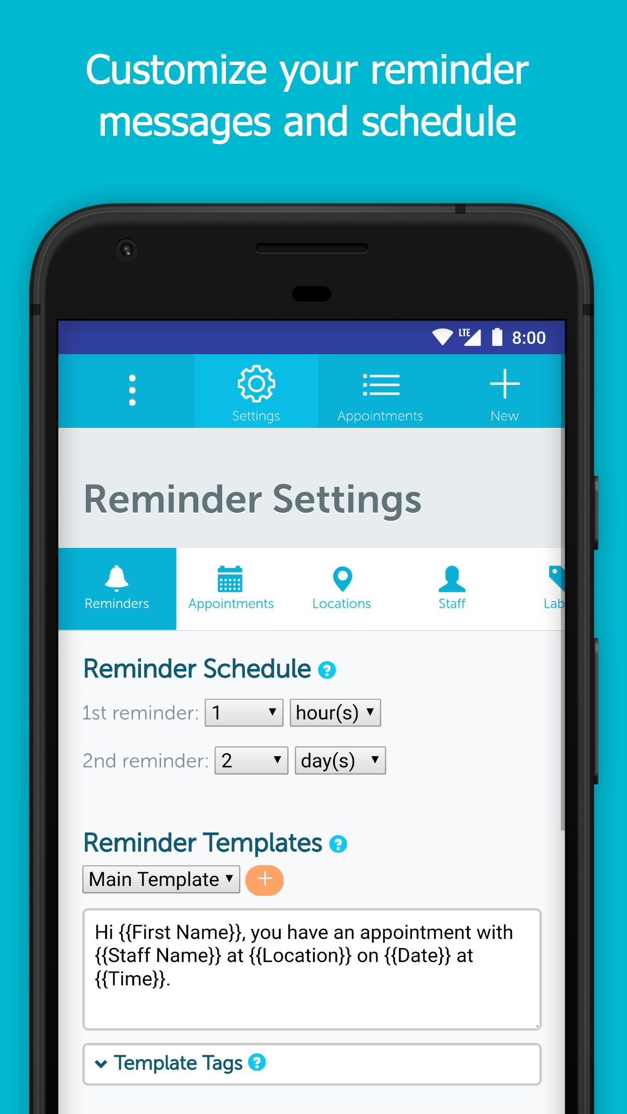 + Plantilla y calendario de mensajes de recordatorio personalizables: ¡configúrelos y olvídese!