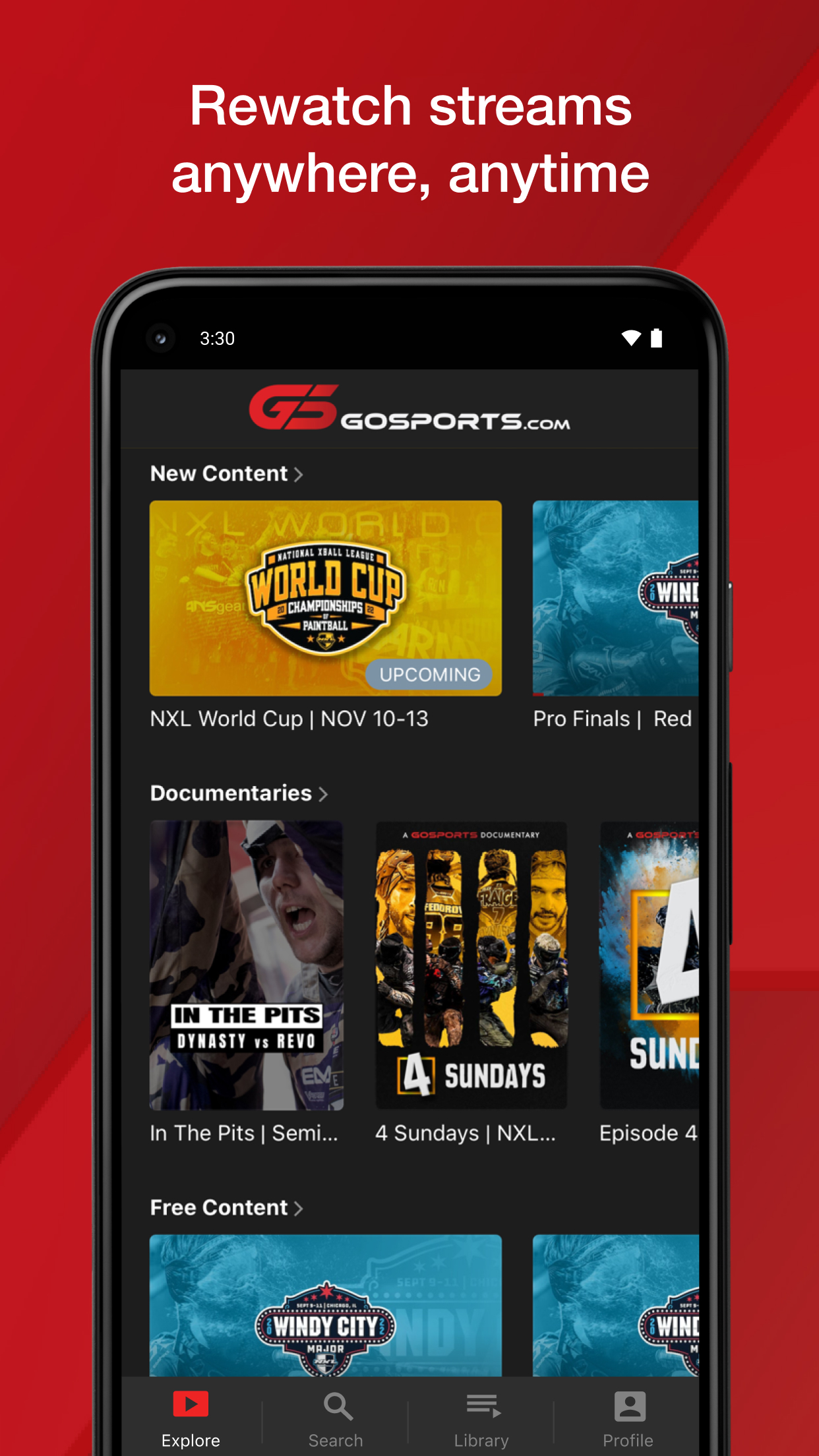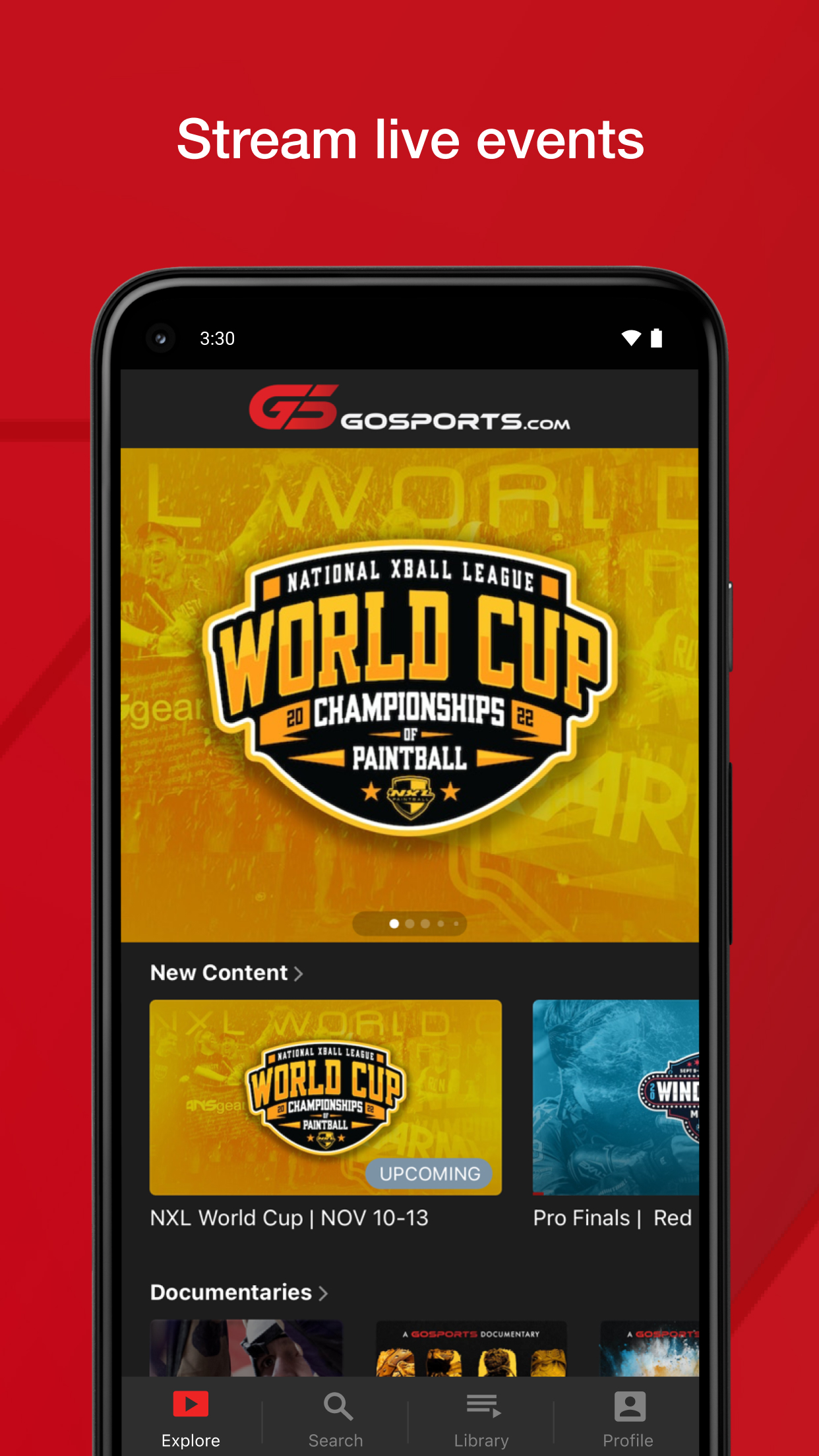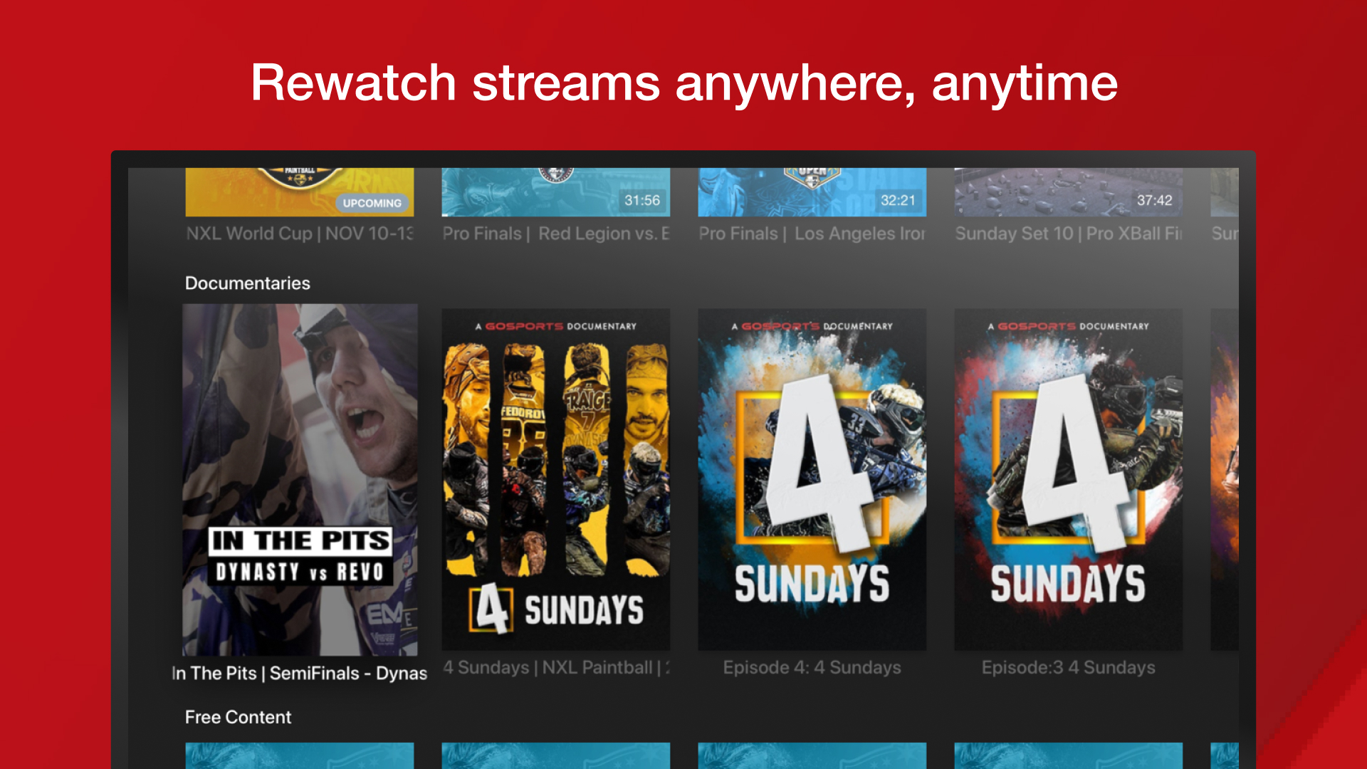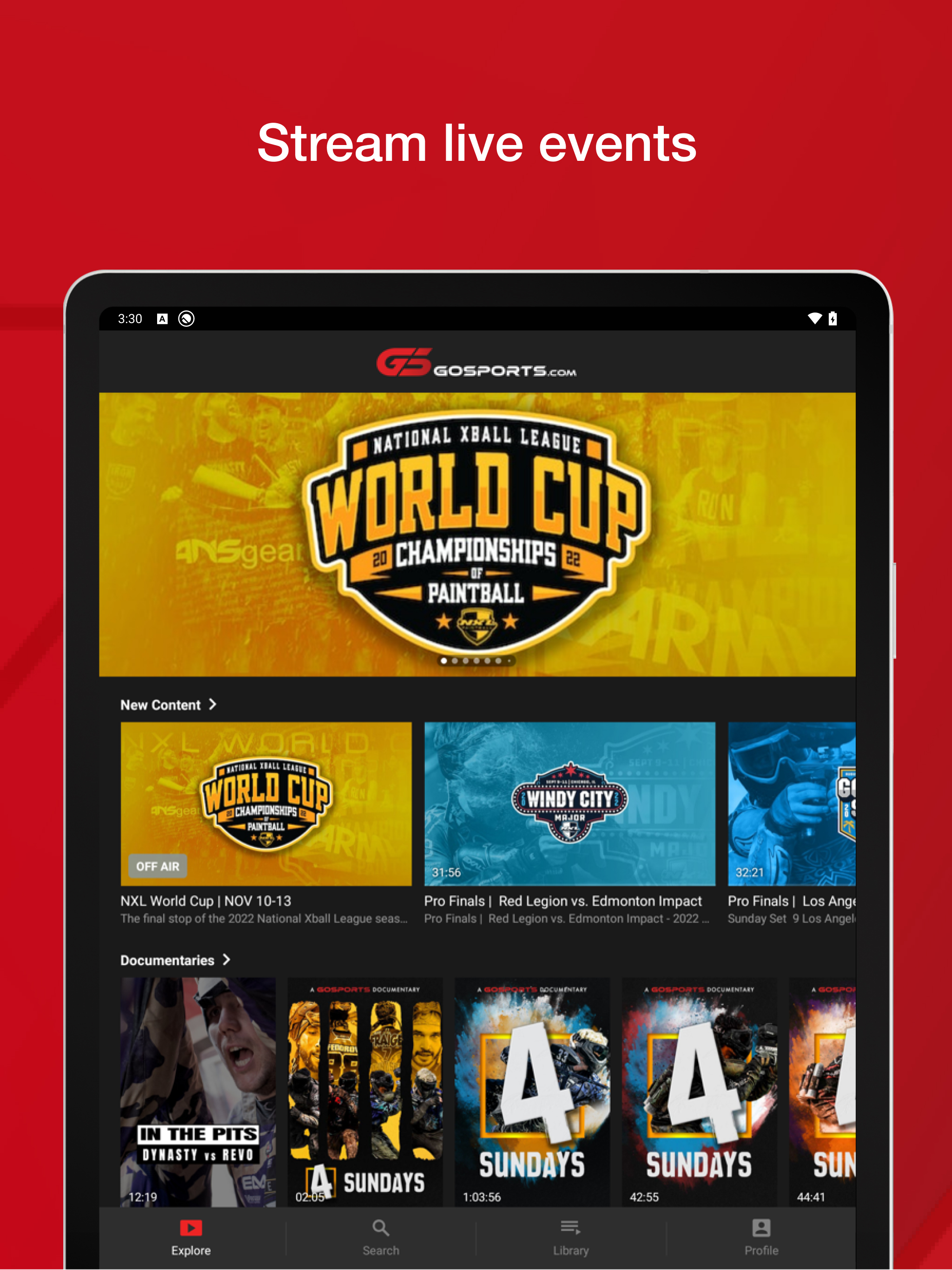 Hogar de la mejor experiencia para los aficionados al Paintball. Transmita eventos en vivo en la red de Paintball Sports líder en el mundo con su suscripción a GoSports. Obtenga acceso a la biblioteca de Paintball más grande del mundo de NXL y eventos pasados. Gosports es el lugar donde los fanáticos pueden ver todos los juegos profesionales de NXL, hasta la Copa Mundial de NXL, así como la nueva programación original. MIRA PAINTBALL COMO QUIERAS • Puede ver GoSports Live en su televisor inteligente, Apple TV, iPhone, iPad, computadora a través de la aplicación GoSports Live. • El video se reproduce con la mejor calidad disponible en su dispositivo y conexión: hasta Full HD 1080p • Vuelva a ver transmisiones en vivo para no perderse nada de la acción. Para acceder a todas las funciones y el contenido, puede suscribirse a GoSports Live de forma mensual o anual con una suscripción de renovación automática dentro de la aplicación.* Los precios pueden variar según la región y se confirmarán antes de la compra en la aplicación. Las suscripciones en la aplicación se renovarán automáticamente al final de su ciclo. * Todos los pagos se realizarán a través de su cuenta de Google y se pueden administrar en Configuración de la cuenta después del pago inicial. Los pagos de suscripción se renovarán automáticamente a menos que se desactiven al menos 24 horas antes del final del ciclo actual. Se le cobrará a su cuenta la renovación al menos 24 horas antes del final del ciclo actual. Cualquier porción no utilizada de su prueba gratuita se perderá al momento del pago. Las cancelaciones se incurren al deshabilitar la renovación automática. Condiciones de servicio: https://www.nxllive.com/tos Política de privacidad: https://www.nxllive.com/privacy Es posible que parte del contenido no esté disponible en formato de pantalla ancha y se muestre con formato de pantalla ancha en televisores de pantalla ancha