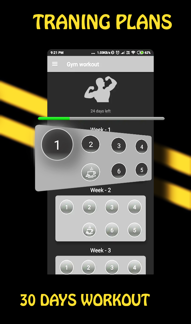 The only fitness & bodybuilding app on store that will help you to achieve health and fitness goals you dreamt about in just 30 days. Yes it is Real, You just need to follow this app. In addition to this, 4 Weeks Fitness Challenge provides you the extensive database of Fitness & Bodybuilding exercises for every muscle of body. Each exercise will provide you a video tutorial and well described info. Our app provides workout plan for Bodybuilding, weightlifting and fitness. Our app will work as pro instructor of gym so that you can save hundreds of bucks. This app is full fitness exercise workout trainer. Simple gym trainer & workout coach app for you. It is 30 day weight loss & fat loss app to Build Muscles