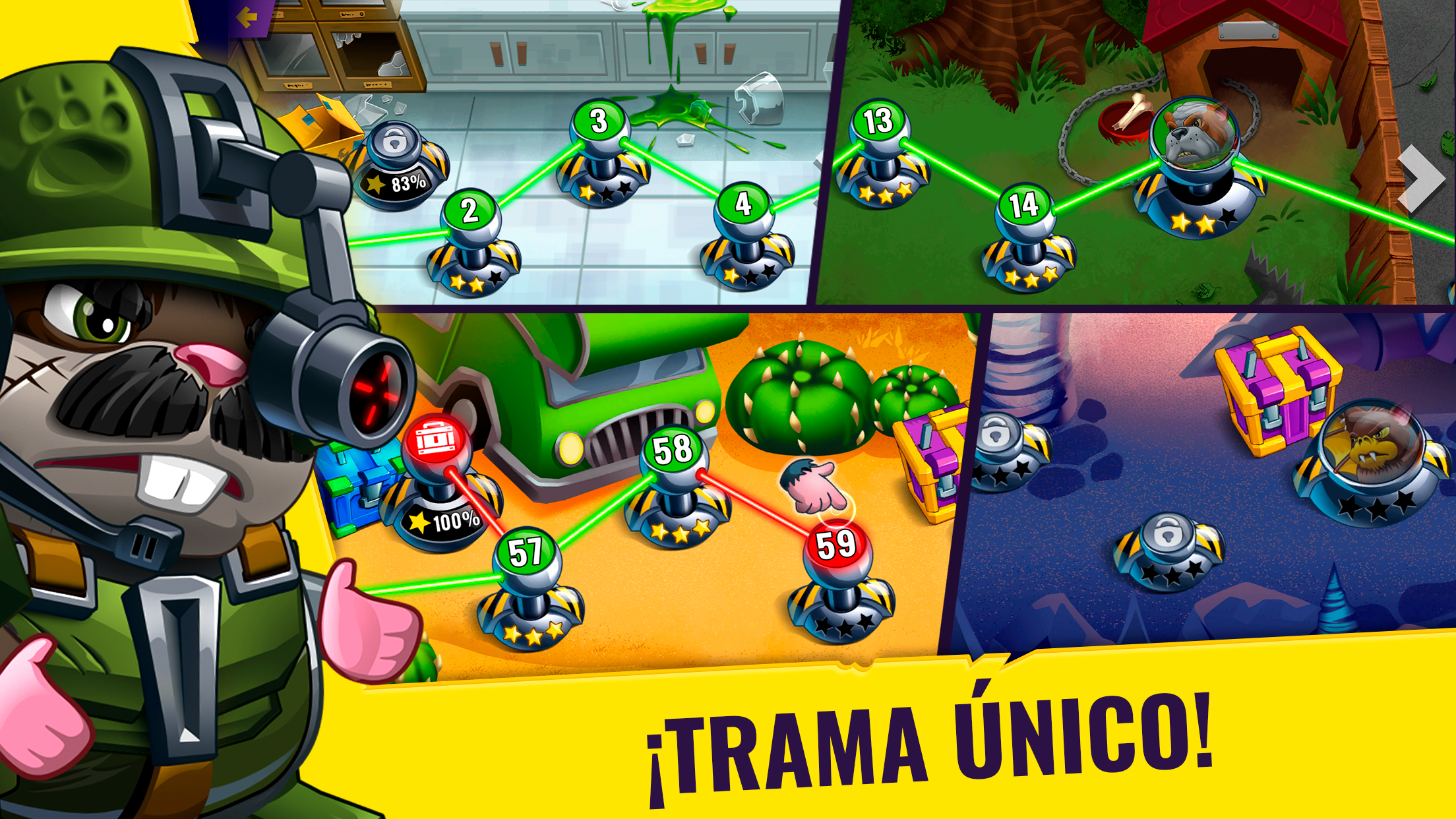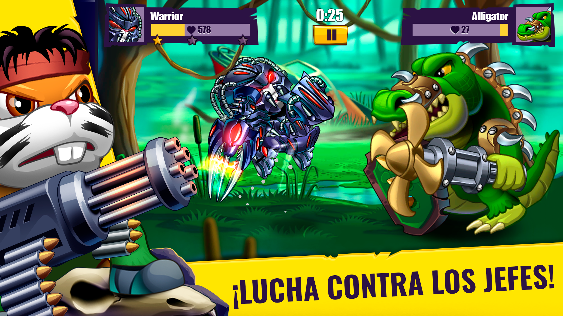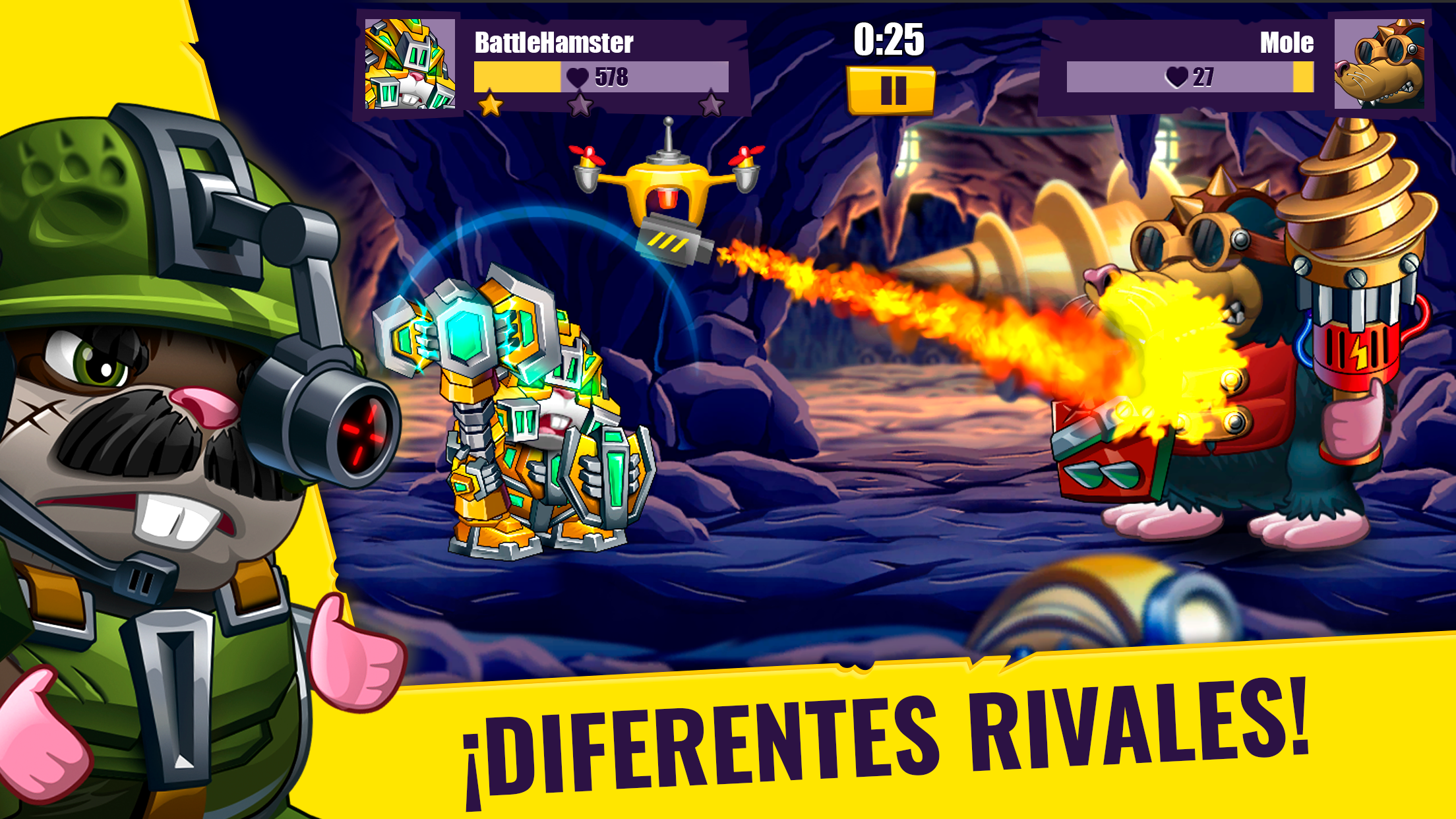 ¡Los Forasteres Malos conquistaron nuestro Planeta y convirtieron a toda la gente en animales! ¡Pero los hámsteres atrevidos no se han entregado! ¡Combata por los Hámsteres valientes, venza a los Jefes, recoja la Súper Arma y destruya la nave de los Forasteres! En este juego RPG le también esperan: - ¡Sensaciones de juego excelentes con el sistema único de combate automatizado! - ¡Compañía única con más de 100 rivales diferentes! - ¡Gameplay cautivante con perfecta música y gráfica! - ¡Actualizaciones constantes del personaje y mejor equipo! - ¡Arena PVP y Liga con un montón de premios chulos! - ¡Taller en el que se puede crear y mejorar los objetos extraterrestres! - ¡Diferentes Jefes! ¡Venzalos y reciba los premios perfectos!