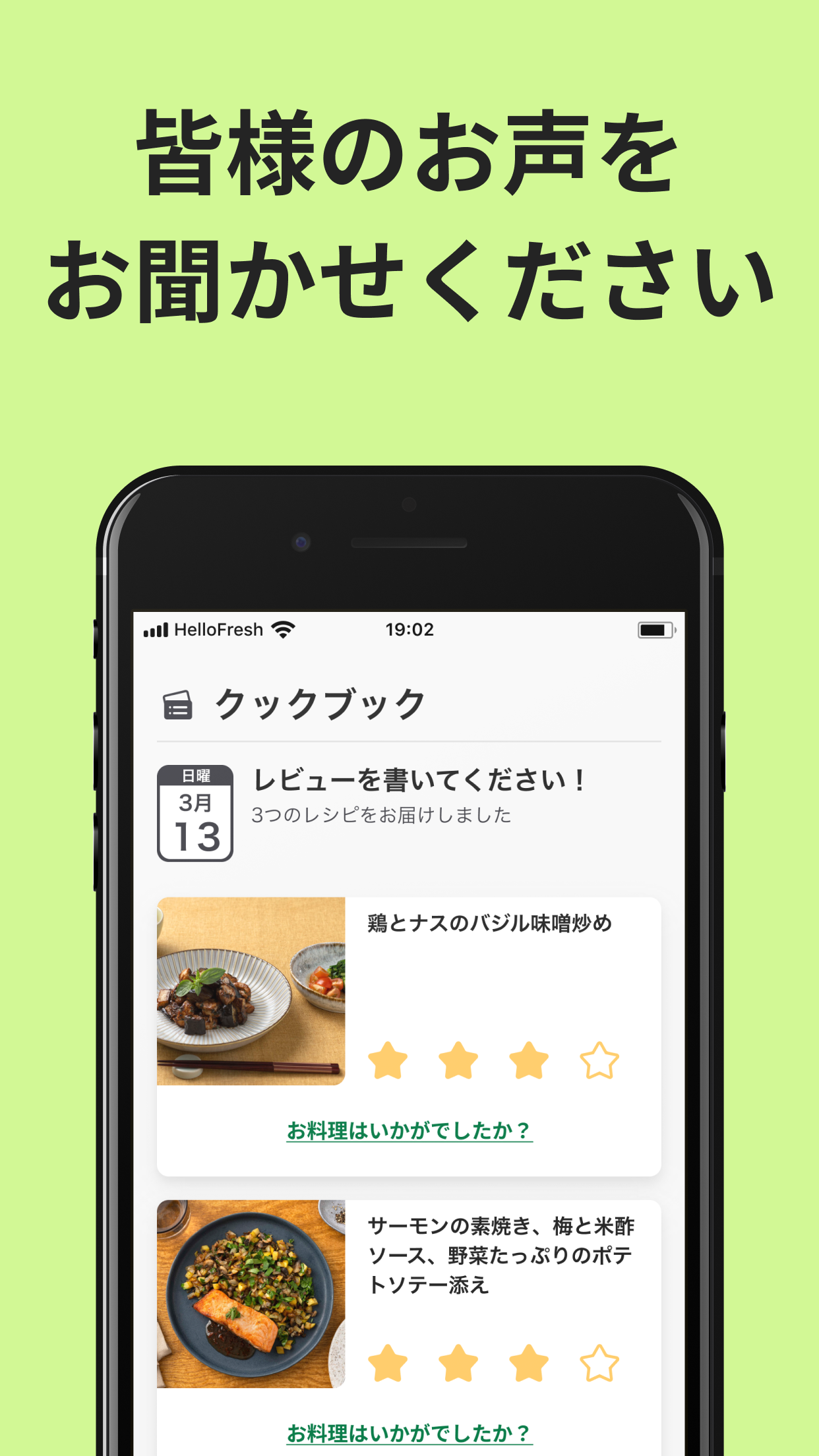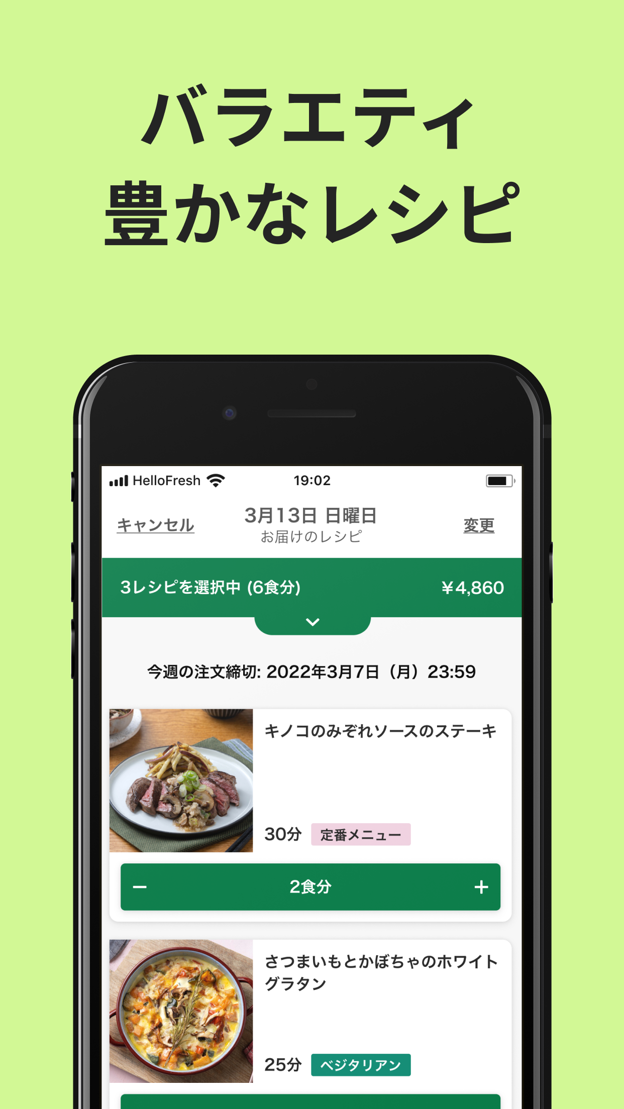 \ ¡Fácil en casa, arroz de todo el mundo! / Vuelos regulares con kit de comidas donde podrá disfrutar fácilmente de los sabores del mundo. Aplicación oficial del servicio de entrega de kits de comida alemana "HelloFresh" HelloFresh es un servicio de suscripción (renovación automática) que entrega kits de comida de forma regular cada semana. Te entregamos la receta perfecta cada semana de acuerdo a tu plan de alimentación favorito como clásico, familiar, bajo en calorías. Aunque no elijas una receta cada semana, recibirás en tu domicilio la comida que necesitas para el menú semanal. Por supuesto, también puedes elegir tu receta favorita. No importa qué plan de comidas elijas, puedes disfrutar de todas las recetas sin restricciones. HelloFresh-Tres planes de comidas --Estándar: Este plan se recomienda para aquellos que quieren disfrutar tanto de la carne como de las verduras de forma equilibrada. Si te pierdes, prueba esto primero. --Familia: Este plan es recomendado para quienes quieren divertirse en familia. Tenemos una gran selección de platos que incluso los niños pueden comer deliciosamente. --Bajas en calorías: Hemos preparado recetas con menos de 650 calorías por comida. Este plan es recomendado para aquellos que quieren tener una dieta saludable. ------------- Características del servicio HelloFresh ------------- ● Una amplia variedad de alineaciones -Hay disponible una amplia variedad de recetas, como japonesas, occidentales y étnicas. ――10 tipos de recetas aparecen cada semana. Puedes dejárselo a HelloFresh o elegirlo tú mismo. ――La línea de comida se renueva cada semana. Siempre puedes conocer nuevos gustos. ● Servicio de suscripción flexible --Los detalles del pedido, como el plan de comidas y la cantidad de recetas, se pueden cambiar en detalle --Sin periodo mínimo de contrato. No se requiere cuota de admisión o cuota de membresía anual ――Está bien si te tomas una semana libre o si estás fuera de casa. Puede cambiar de manera flexible la frecuencia de entrega, como omitir o suspender pedidos. ● Kit de comida fácil que no requiere preparación -Elija un plan de comidas y número de personas / menú semanal, luego simplemente recójalo en su casa ――Recibirás toda la comida que necesites para cocinar, así que no tienes que preocuparte por olvidarte de comprar o comprar en exceso. ――Apoyamos a los principiantes con recetas fáciles de entender que explican cada paso de cocción. ● Compromiso con la calidad --Use ingredientes domésticos de temporada tanto como sea posible. Apoyando a los productores nacionales mientras disfrutan de los alimentos de temporada --Todas las recetas son desarrolladas desde cero por el chef exclusivo de HelloFresh para clientes japoneses. --Proveedores domésticos confiables cuidadosamente seleccionados. Adquirir ingredientes de proveedores que cumplan con la certificación de la Iniciativa Global de Seguridad Alimentaria (GFSI) ● El primer kit de comidas sin emisiones de carbono* del mundo --Promover cero emisiones de dióxido de carbono en todos los procesos comerciales, como trabajo de oficina, viajes de negocios, transporte y entrega. --Construya una cadena de suministro eficiente y reduzca el consumo de energía para todo el servicio * La primera marca global de kit de comidas del mundo HelloFresh se recomienda para personas como esta: ・ No tengo tiempo para ir a comprar comida para el trabajo o las tareas del hogar ・ Es difícil pensar en el menú de una semana. ・ No soy bueno cocinando, pero quiero abstenerme de comer fuera tanto como sea posible. ・ Quiero aumentar el repertorio de cocina ・ Quiero disfrutar de varios platos de todo el mundo en casa ・ Quiero mejorar mis hábitos alimenticios normales de una manera saludable Cómo utilizar HelloFresh: 1. Elige un plan Elija su plan de comidas favorito, como estándar y familiar, de acuerdo con su estilo de vida. Seleccionaremos la receta recomendada de la alineación semanal de acuerdo con el plan que haya seleccionado. Por supuesto, también puedes elegir tu propio menú semanal. 2. Selecciona el número de personas y el menú para una semana Elija la cantidad de recetas que recibirá por semana y la cantidad de cada receta. 3. Recibe tu equipaje Entregaremos un kit de comida lleno de ingredientes frescos de temporada a su hogar en la fecha y hora especificadas. Una vez que reciba su equipaje, todo lo que tiene que hacer es cocinar. ¡Disfruta del arroz casero fácil! 4. Gratis para continuar o saltar Incluso si no hace un pedido todas las semanas, le enviaremos recetas recomendadas según el plan que haya elegido. No se preocupe si desea omitir un pedido o tomarse un descanso de la entrega regular. Puede pausar y reanudar en cualquier momento que desee. Características de la aplicación HelloFresh: ・ Verifique el procedimiento de cocción en su teléfono inteligente o tableta Puede navegar por el procedimiento de cocción de recetas a mano. Optimizado para teléfonos inteligentes y tabletas, lo que hace que los procedimientos de cocción sean aún más fáciles de entender. ・ Gestión de cuentas al alcance de tu mano Gestione de forma colectiva la información de la cuenta, como la selección de recetas, los cambios de plan, la información de pago y las direcciones de entrega. ・ Tu propio libro de cocina Puede navegar por el archivo de platos pedidos en el pasado. Puede agregar deliciosas recetas a sus favoritos y crear su propio libro de cocina. ・ Publicar una reseña de receta Puede publicar fácilmente una reseña de su receta desde su teléfono inteligente o tableta.