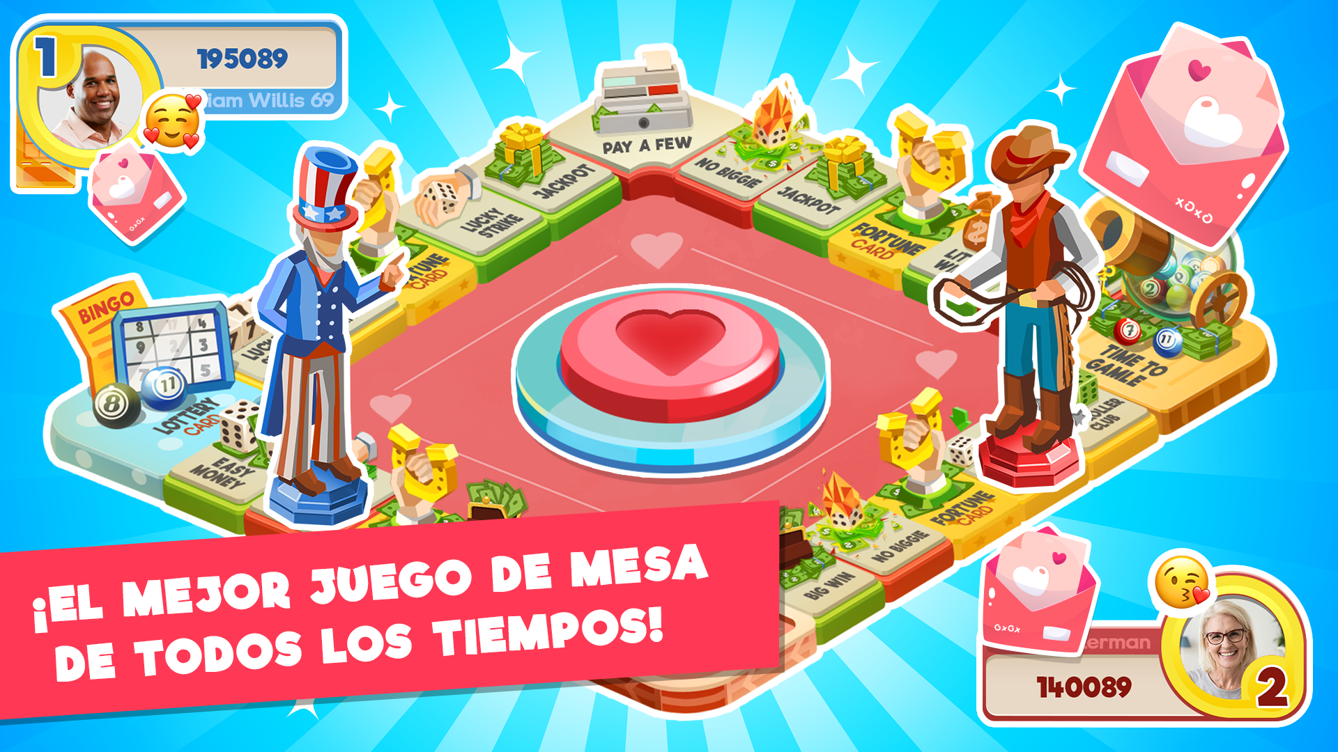 • ¡Podrás viajar por diversos 🗺️ TABLEROS TEMÁTICOS! ¡Para pasártelo mejor, intenta derrotar a tus amigos en cada uno de los TABLEROS!