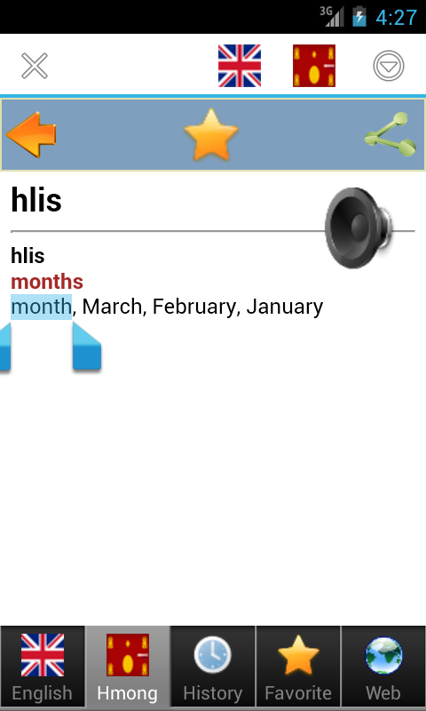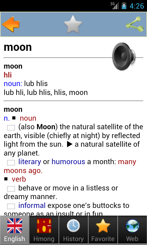El usuario quedará satisfecho con este diccionario Hmong - Inglés porque: - Tiene el vocabulario más extenso - Descripción detallada de cada palabra y muchas muestras. - La interfaz de usuario simple y el alto rendimiento te hacen sentir fácil al usar * La pronunciación de soporte completo para el inglés te ayudará mucho en el estudio de estos idiomas. (Esta aplicación se puede ejecutar en modo fuera de línea, pero necesita conexión a Internet para la pronunciación y las funciones del navegador web). Configure el teclado hmong antes de usar esta aplicación Este dictado gratuito funciona bien en todos los dispositivos Android, incluidos móviles y tabletas, es muy útil para todo tipo de personas, aunque en un entorno fuera de línea. - Para estudiante, alumno o investigador, esta aplicación es el diccionario de sinónimos más grande que les ayuda a hacer una investigación profunda en cada palabra y frase, incluyendo modismo, jerga, sustantivo, verbo, adjetivo, adverbio ... El vocabulario y el léxico más extenso ayudarán a las personas a encontrar todas las palabras especiales en todas las ramas; medicina, medicina, matemáticas, química, horóscopo, biología, etiología, física, fisiología ... - Para los estudiantes de inglés, esta es la herramienta perfecta para mejorar su léxico, idiolecto y habilidad gramatical con tantos ejemplos detallados y conjugación compatible. Este diccionario tiene todas las ventajas de otros dictados por lo que te ayudará a mejorar tus habilidades para hablar, escribir, leer, escuchar, conversar y prepararte bien para las pruebas como TOEFL, IELTS ... - Para el traductor o intérprete, esta herramienta le proporcionará rápidamente una buena traducción y también la pronunciación de ambos idiomas con un solo toque. - Esta es también la herramienta indispensable para los viajeros, con este dict en tu móvil podrás terminar el viaje en China, Vietnam, Laos y Tailandia sin ningún problema de comunicación con la gente Hmong. Buena suerte y feliz usando mi producto :) Tus neeg siv yuav txaus siab rau qhov no Hmong - lus Askiv phau ntawv txhais lus vim hais tias: - Nws muaj lub loj tshaj plaws cov lus - Nthuav dav piav qhia rau txhua lo lus thiab ib tug ntau ntawm cov qauv - Interfaz Tej yam yooj yim thiab muaj kev kawm siab ua rau koj xav tias yooj yim thaum uas siv * Tas nrho cov kev pab txhawb nqa hais rau lus Askiv thiab lus Askiv yuav pab koj npaum li ntawd nyob rau hauv txoj kev tshawb no cov lus. (Daim ntawv thov no yuav khiav nyob rau hauv offline hom tab sis yuav tsum tau qhov kev twb kev txuas hauv internet rau lub hais kom meej thiab navegador web zog.) Thov teeb Hmoob keyboard ua ntej yuav siv daim ntawv thov no Qhov no free phau ntawv txhais lus ua hauj lwm zoo nyob rau hauv tag nrho hauv xov tooj ntawd pab kiag li nrog rau mobile thiab cov ntsiav tshuaj, nws yog ib tug tseem ceeb heev rau tag nrhoxa tseem covm homosexual rau hauv fuera de línea ib puag ncig. - Rau cov tub ntxhais kawm ntawv, me nyuam kawm ntawv los yog soj ntsuam, qhov no app yog qhov loj tshaj plaws Tesauro pab lawv ua lub heev kev tshawb xyuas nyob rau hauv txhua lo lus thiabas lüg zawsj tej ua dog ua dig, sustantivo, verbo, adjetivo, adverbio ... Qhov loj tshaj plaws cov lus thiab cov léxico yuav pab cov neeg nrhiav tau tag nrho tshwj xeeb lus rau tag nrho cov ceg; - Rau cov kawm lus Askiv, qhov no yog lub zoo meej cuab tam los txhim kho koj léxico, idiolect thiab cov txheej txheem kev txawj los ntawm thiaj li muaj coob ncauj lus kom ntxaws piv txwv thiab tiab conjugación. - Rau lub tshuab txhais lus los yog txhais lus, qhov cuab tam yuav muab rau koj sai sai traducción del zoológico thiab kuj hais ntawm ob hom lus los ntawm tsuas yog ib kais. - Qhov no yog qhov indispensable lub cuab tam rau cov neeg ncig chaw, nrog rau qhov no dict nyob rau hauv koj txawb koj yuav tiav cov lus nyob rau hauv Tuam Tshoj, Vietnam, Laos, thiab Thaib teb tsis tsis muaxjuas kev s meem nrog haiv neeg Hmoob. Hmoov zoo thiab zoo siab siv kuv cov khoom :)