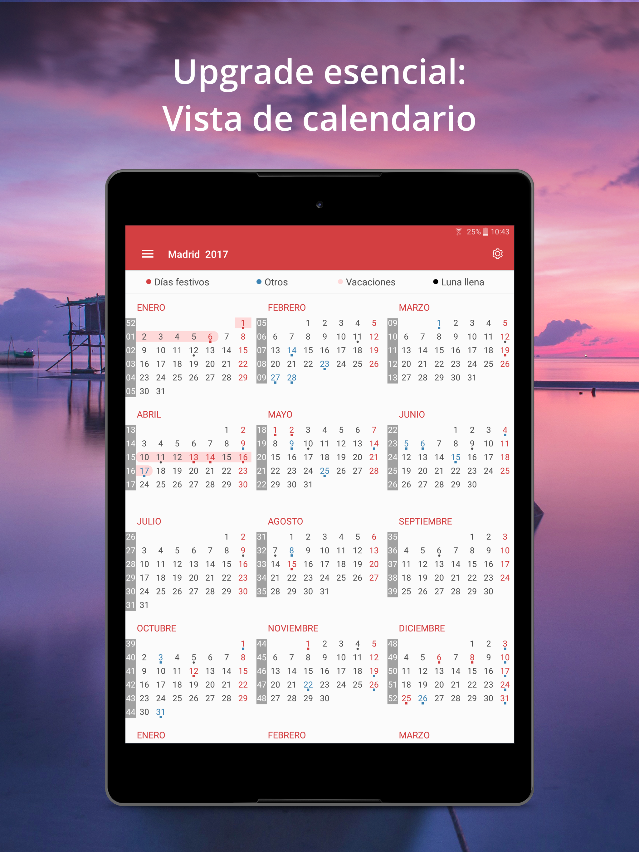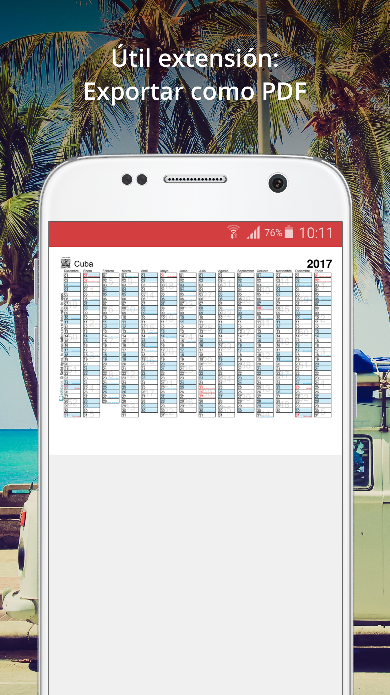 Puedes obtener más información y una vista web de la App de Días Festivos y Vacaciones en: www.holidaycalendar.com.