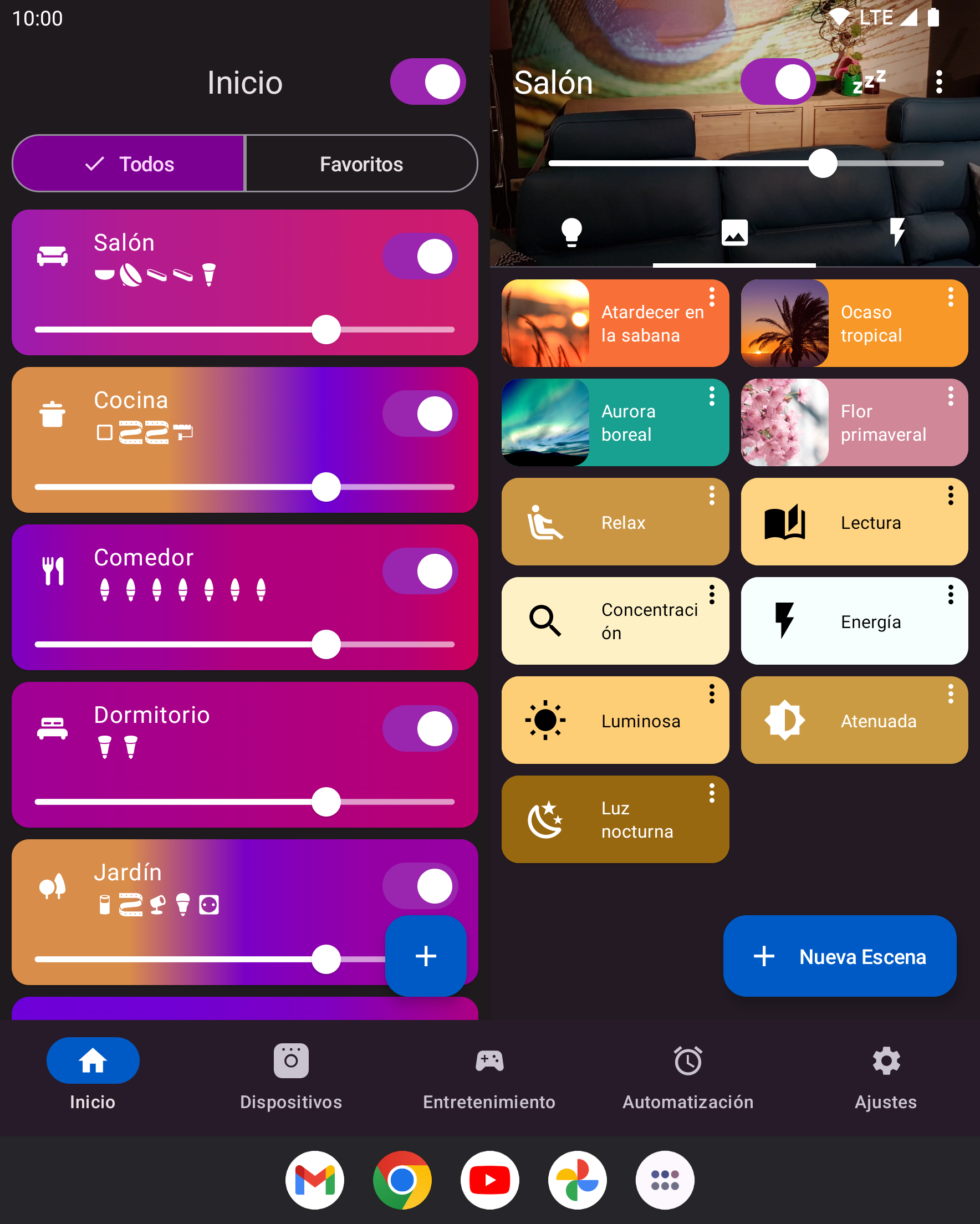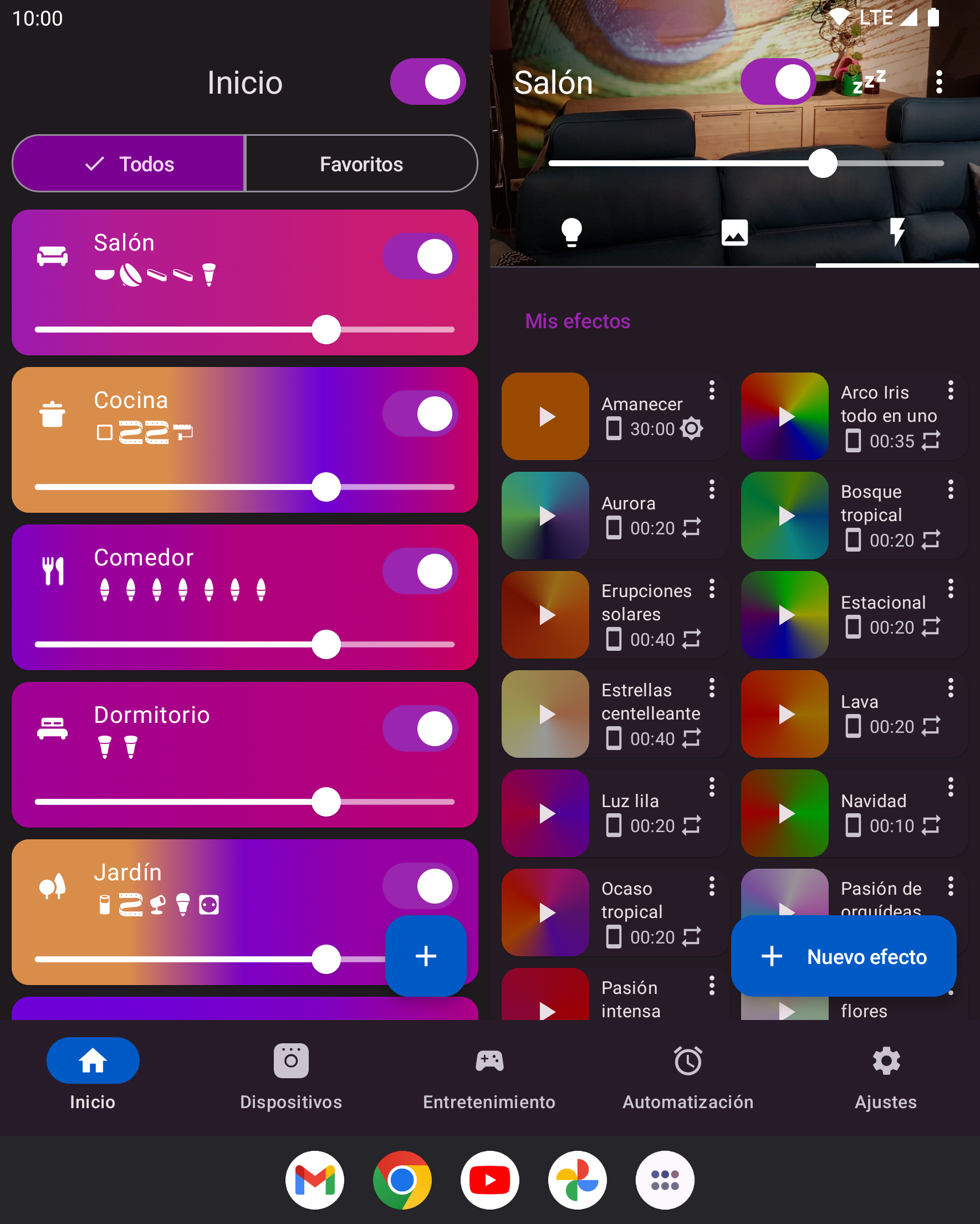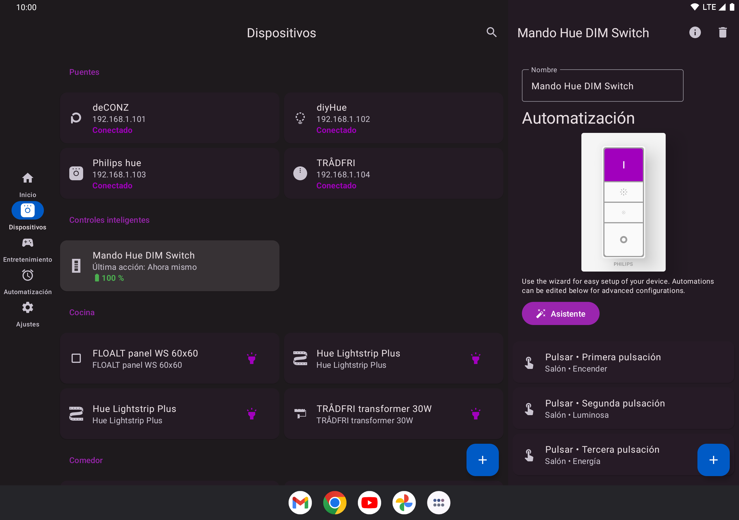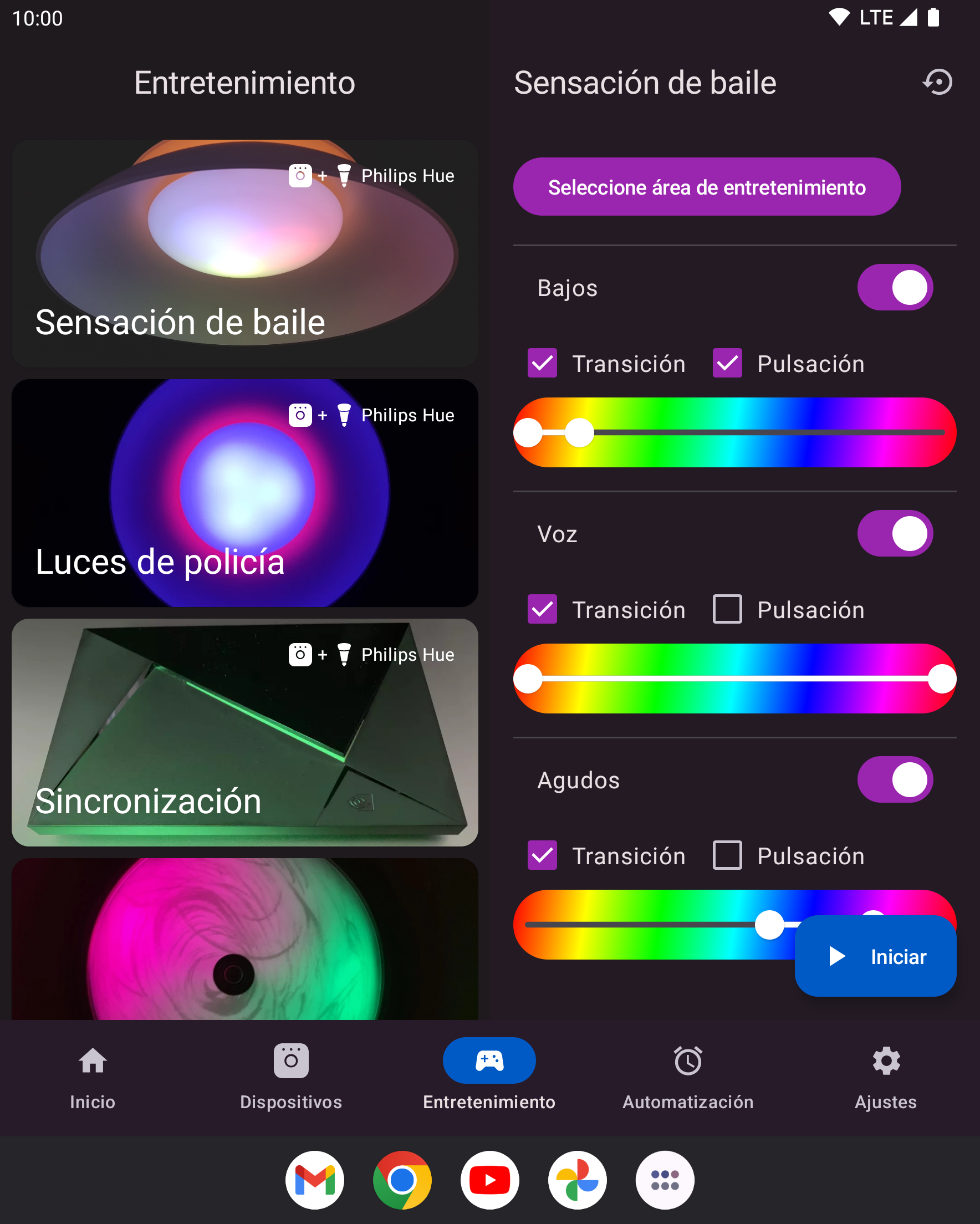 Imagínate una infinidad de posibilidades en tu casa inteligente. Pon escenas y efectos rápidos a tu estado de ánimo. Experimenta sensaciones de baile en tu zona de entretenimiento con Philips Hue Entertainment. Disfruta de un ambiente más colorido en tu dispositivo de conexión IKEA TRADFRI. Siéntete más seguro, controlando y automatizando las tareas de sol a sol. Widgets, atajos, paneles de ajustes rápidos y Wear OS te ayuda a gestionar la iluminación inteligente. Controla varios puentes simultáneamente sin tener que cambiar entre ellos. Dispositivos compatibles • Puente Philips Hue • Luces Philips Hue Bluetooth • Dispositivo de conexión IKEA TRÅDFRI • deCONZ (ConBee) • diyHue • LIFX Escenas y efectos Crea el ambiente perfecto para tus fotos o las incluidas en tu galería. Experimenta animaciones especiales como lava, chimenea, fuegos artificiales o rayos. Levántate al amanecer y acuéstate con luces tenues. Métete en la fiesta con el ritmo de la música. Sincroniza tus luces para una noche disco con luces estroboscópicas (25 pulsaciones por segundo). Acceso rápido Crea estancias y grupos para organizar tus luces. Puedes poner una luz en varios grupos. Coloca widgets para sensores de temperatura, controla las luces fácilmente, ajusta el color y el brillo sin abrir la aplicación. Añade atajos a tu pantalla de inicio para abrir tu estancia rápidamente. Controla tus luces a través de una notificación opcional del panel de notificaciones. Control your lights from your smartwatch. Switch on your lights right from your watch face. Create complications & shortcuts for quick access. Control de luces inteligentes La búsqueda de "Touchlink" muestra nuevas luces (terceros, Zigbee). Se incluye un asistente de configuración para instalarlo fácilmente. Puedes poner escenas, acciones o hacer varias escenas con un botón, aprovechando Hue Essentials al máximo. Experimenta el ambiente adecuado en distintos momentos del día con tu sensor de movimiento. Todas tus creaciones se almacenan el puente. Fácil para ti y tu familia. Avanzado La automatización te permite tener un mayor control de tu hogar inteligente. Enciende las luces cuando al abrir la puerta. Ajusta tu ventilación cuando la humedad sea demasiado alta. Abre o cierra persianas y cortinas según la temperatura o la luz solar. Configura un sinfín de posibilidades automáticas desde la extensión Tasker. Haz parecer que hay alguien en casa usando "Fuera de casa" (control desde fuera de casa). Comunícate directamente con tu puente Hue usando el depurador del API. Mira los detalles técnicos de tu puente Hue y actualiza sus recursos, como luces o sensores. ¿Lo quieres todo? Optimiza el rendimiento eliminando la publicidad. Compra la versión premium para desbloquear el contenido completo. Comparte tus experiencias Comunidad: https://community.hueessentials.com