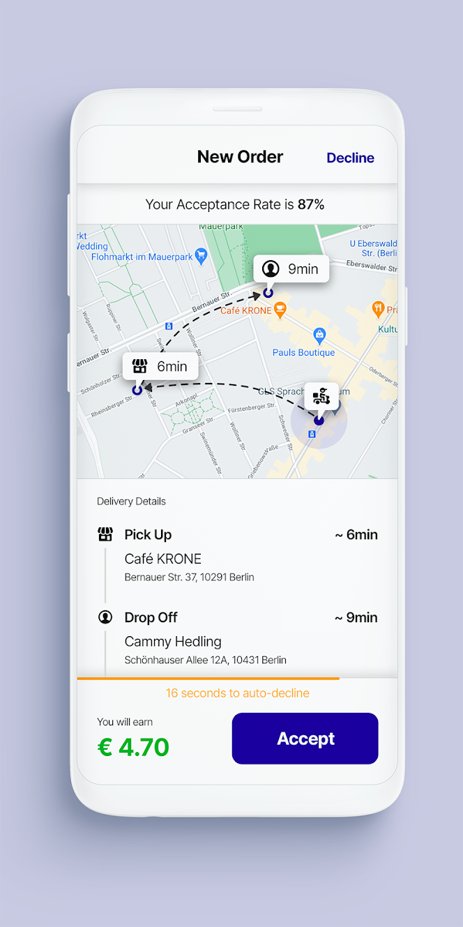 We are always making improvements to the app, so you can focus on the important stuff - delivering orders and earning money! With this update we: - Improved the performance of the app and fixed more bugs. - Optimized font sizes and colors for improved readability in the home screen. Stay safe and ride on!