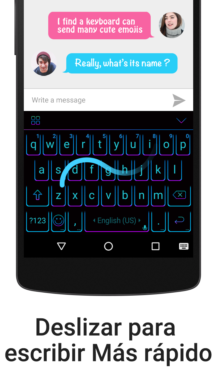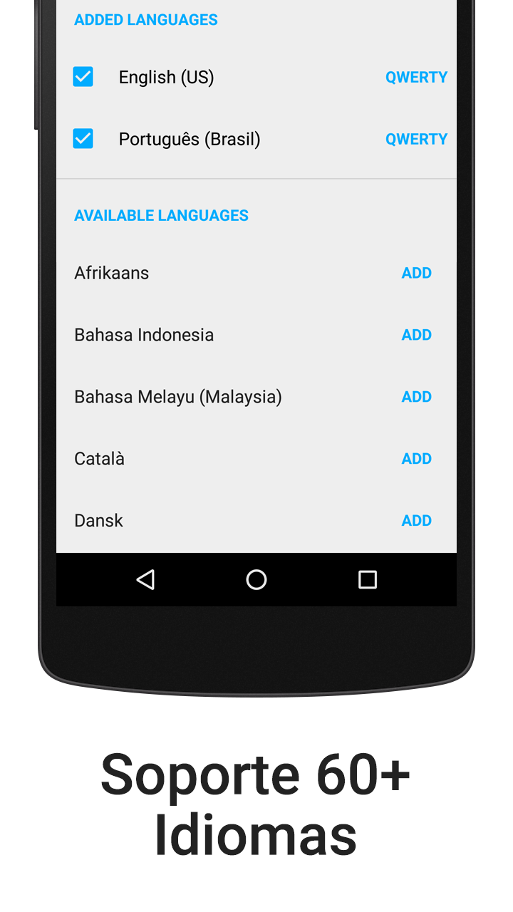 - Más de 150 diseños de teclado y diccionario, incluyendo teclado QWERTY, teclado AZERTY, inglés (EE. UU.) (RU), portugués (Brasil) (Portugal), teclado español, teclado alemán, teclado ucraniano, teclado tailandés, teclado turco, etc.