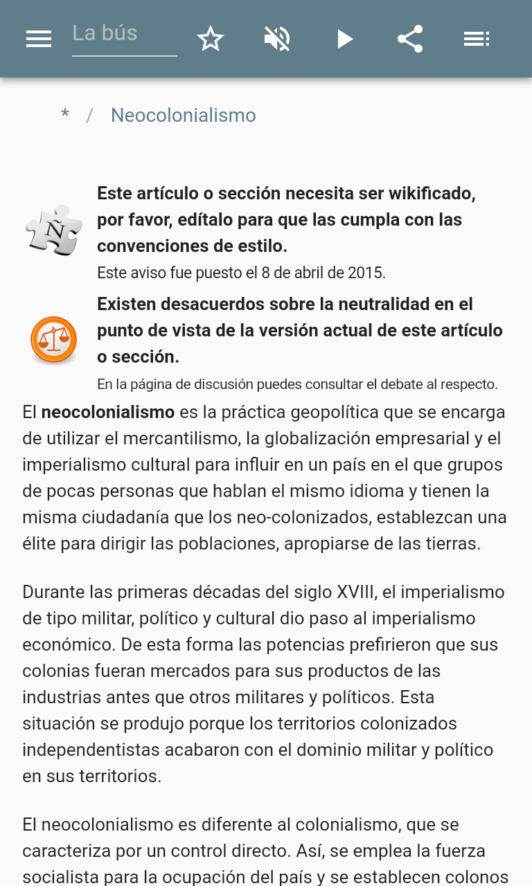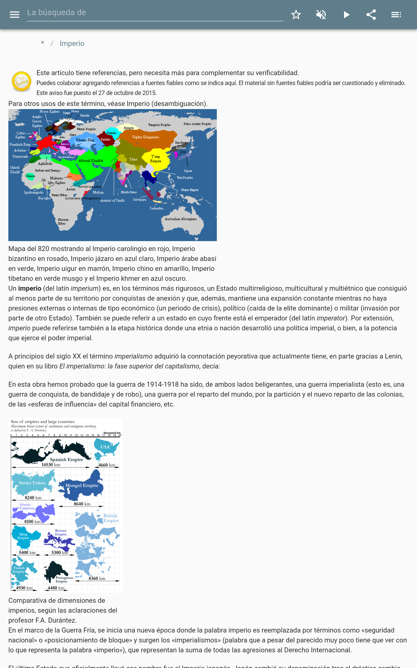 La aplicación contiene la descripción del imperialismo .