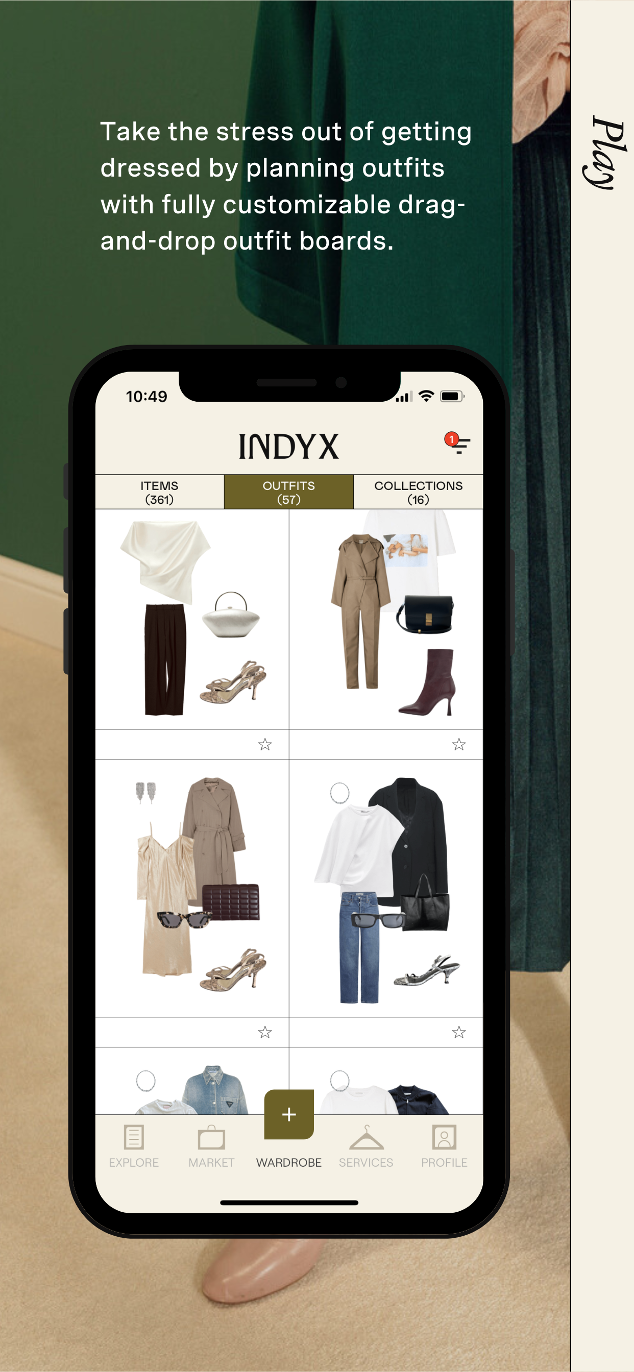 Indyx es la aplicación de guardarropa digital definitiva para catalogar, diseñar y revender sin problemas su guardarropa en un solo lugar. La aplicación de vestuario digital Indyx es de uso gratuito. ¡Nuestros estilistas personales le brindan sugerencias de atuendos semanales, y vender en nuestro mercado de reventa es 100% libre de comisiones! ¿Necesitas ayuda profesional? Indyx también ofrece catalogación de vestuario accesible y servicios de estilo personal bajo demanda.