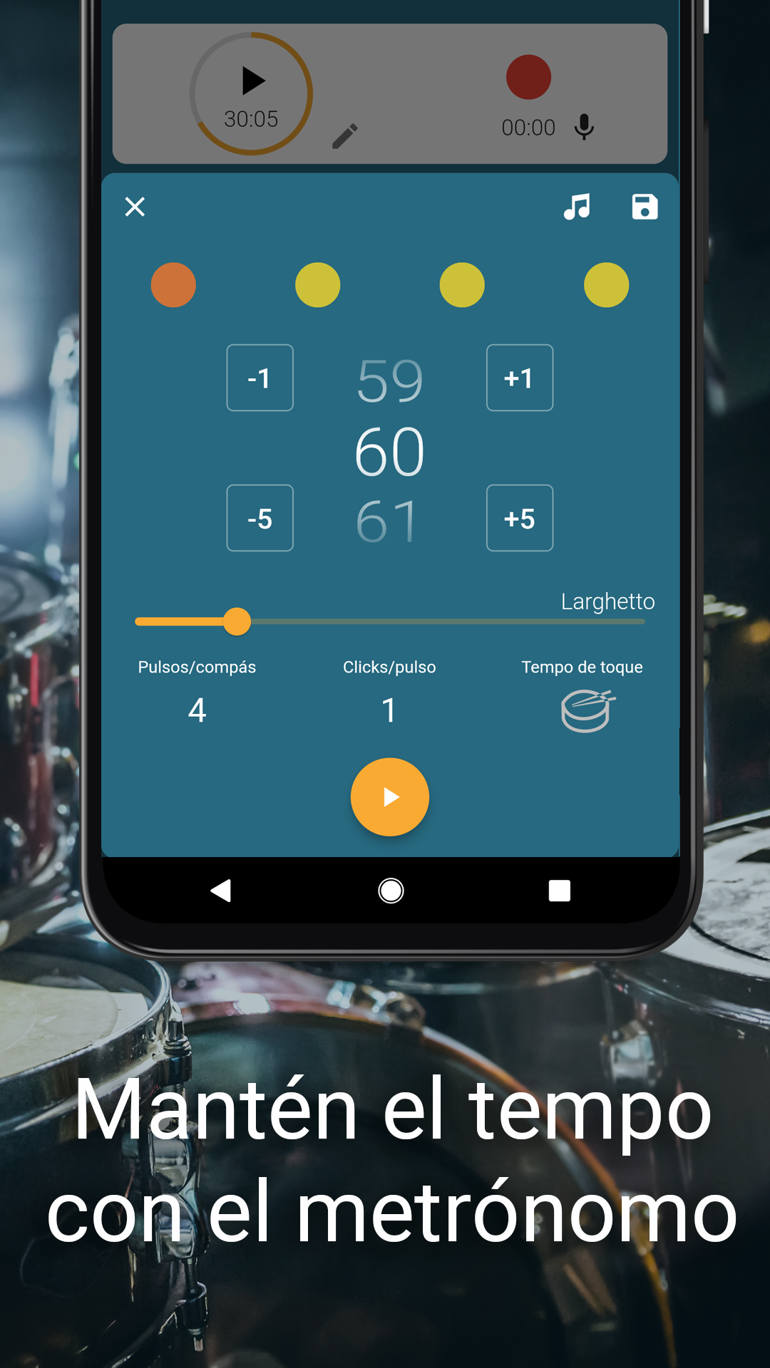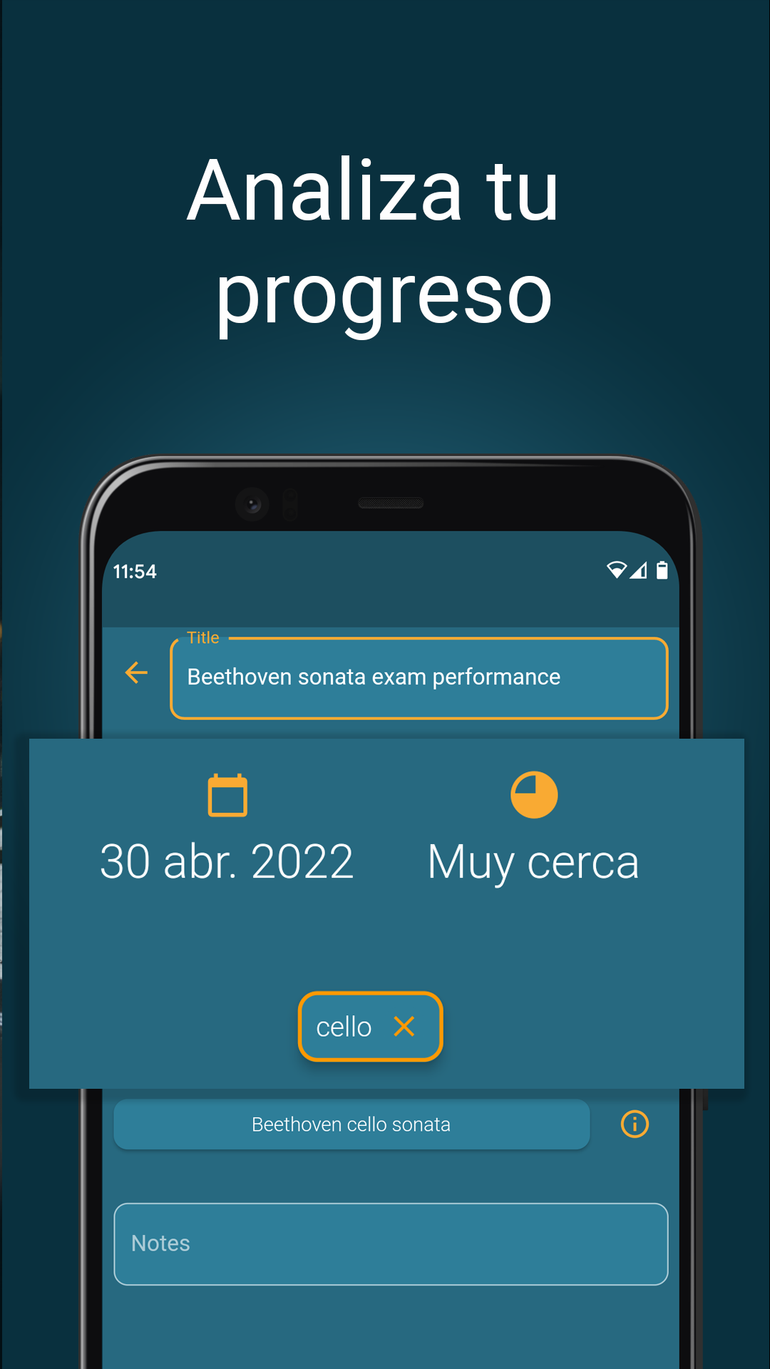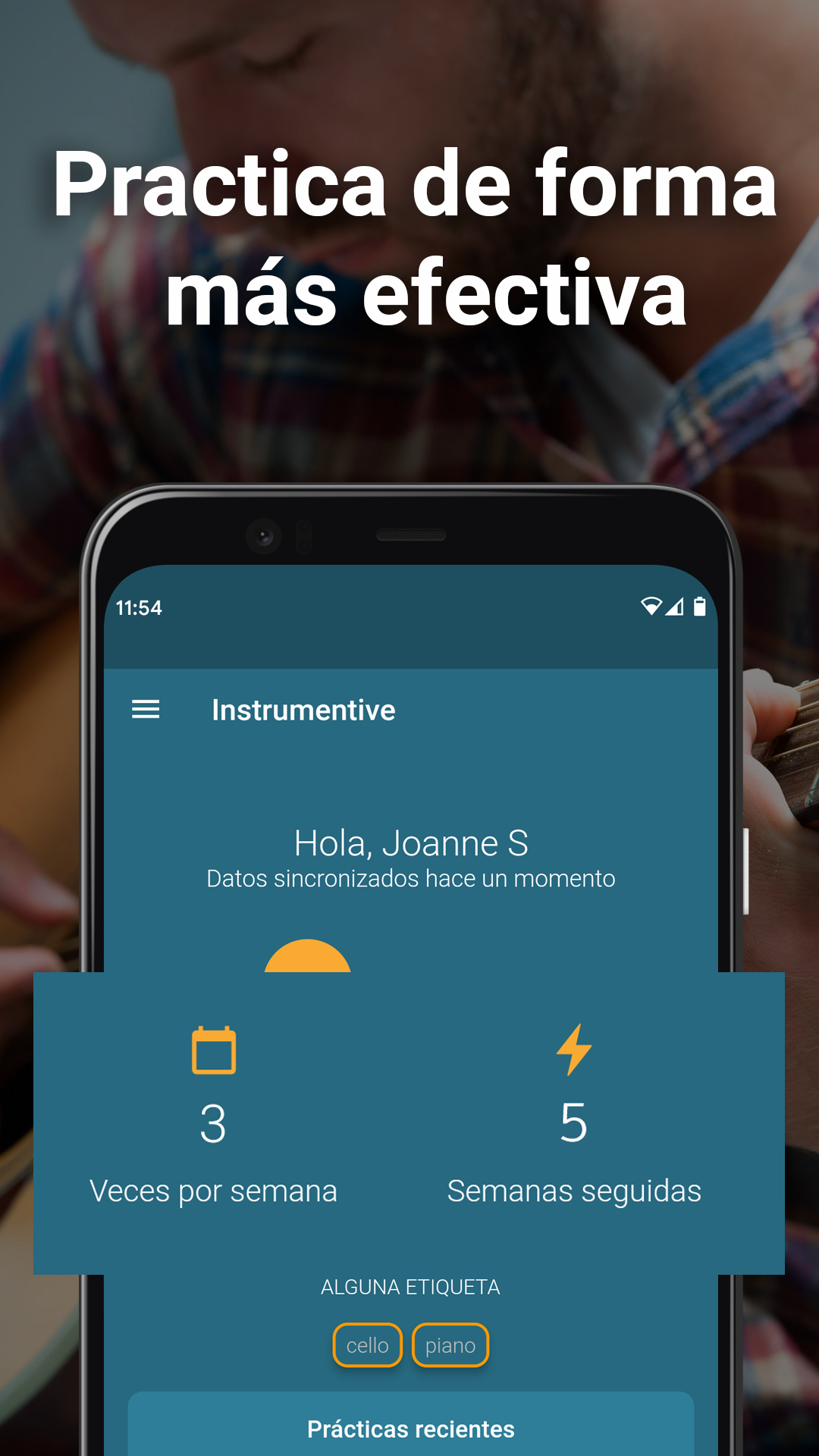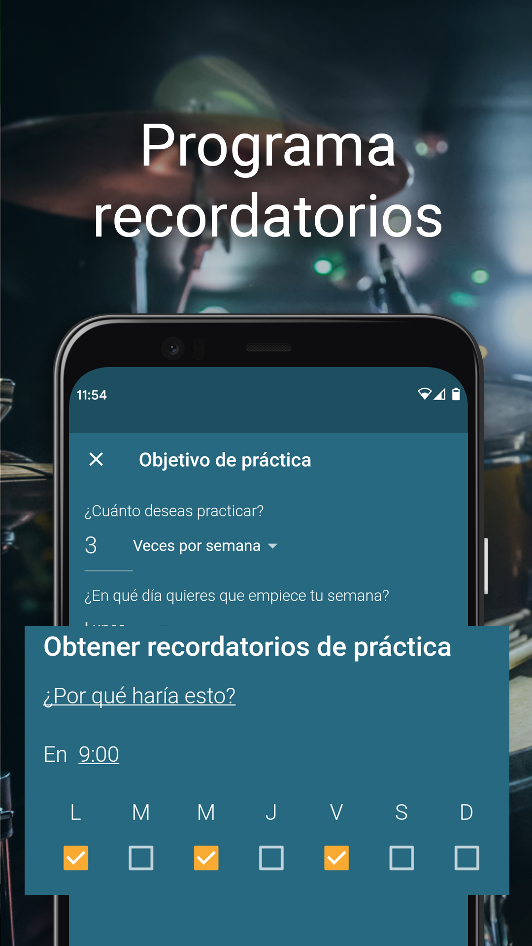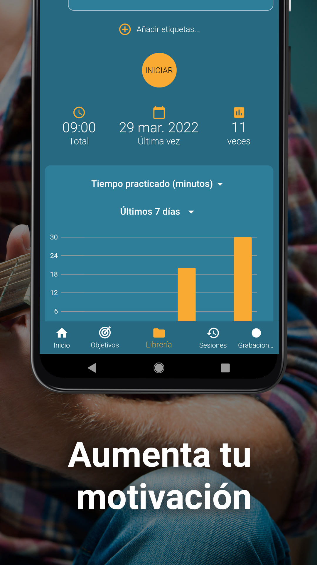ORGANIZA TU RUTINA COMO MÚSICO Y REGISTRA TU PROGRESO ¿Eres músico y quieres organizar de forma más eficiente tus clases para aprender a tocar la guitarra, el violín, el piano u otros instrumentos musicales? ¿Quieres afinar tu tempo y mejorar como músico? Con Instrumentive: Practica música, podrás practicar de una forma más eficiente, programando objetivos a alcanzar, grabando tus sesiones y tomando notas durante tus clases de guitarra, de piano o de canto. Tendrás una lista de estadísticas acerca de tu avance como músico para que puedas comprobar cómo vas mejorando tu música con el instrumento que más te guste. Instrumentive es una app ideal para practicar música y monitorizar cómo vas avanzando con las clases de guitarra o las clases de piano. Además, gracias al metrónomo y al grabador de música, podrás notar una gran mejoría si practicas con instrumentos como la guitarra, el piano o el violín. Y lo mejor es que puedes, gracias a este grabador de música, guardar tu sesiones para escucharte a ti mismo tocar el piano, toca la guitarra o tocar el violín en cualquier momento. UNA APP PARA QUE LOS MÚSICOS PRACTIQUEN DE FORMA MÁS EFICIENTE ¡El diario de música viene con un metrónomo para que controles el tempo o el beat y así puedas afinar tu guitarra, afinar tu violín o incluso afinar tu voz! Este metrónomo controla las pulsaciones y cuenta el tempo para que siempre mantengas el ritmo de la música mientras tomas notas o usas el grabador de voz para controlar tus clases de piano o de guitarra. ¡Instrumentive ha llegado para ser tu aliado en tu proceso para convertirte en músico! ¡Descarga Instrumentiva: Practica Música con el metrónomo incluido y prueba nuestro servicio durante 30 días totalmente gratis! ¡Estamos seguros de que esta herramienta musical te va a ayudar a afinar la guitarra, el violín o tu voz y todo eso mientras llevas un control sobre tus clases musicales! Instrumentive ofrece: — Clasifica tus clases de música según el nivel de dificultad, el instrumento musical y mucho más mediante el uso de etiquetas — Utiliza el grabador de música, registra el tiempo que dedicas a aprender cualquier canción (número de sesiones, tiempo por semana, mes..) incluyendo un metrónomo gratuito, un contador de tempo, un contador de beats y el registro de pulsaciones — Crea objetivos y fechas deseadas para dominar cada canción, exporta tu progresos y mira las estadísticas para ver cómo vas avanzando como músico — Algunas características de Instrumentive: Práctica Música son: — La mejor solución para ti y todos tus amigos músicos - Registra hasta 4 perfiles por cuenta Toma notas y sincroniza tus clases de música en múltiples dispositivos — Consulta tu historial de práctica o clases musicales para canciones específicas —Programa y monitorea tus objetivos como músico —Comparte las grabaciones con tu tutor de música, utilizando el metrónomo o para ser mejor con la guitarra o el violín Programa recordatorios para las clases de guitarra o violín cada semaan — Usa el metrónomo integrado y el contador de tempo para que nunca más pierdas el beat de la canción que te gustaría tocar — Crea playlists con tus clases y escucha cómo vas progresando en la música — Navega fácilmente entre tus notas de cada clase de guitarra o de cada grabación para recordar dónde tienes que ir mejorando — Exporta los datos sobre tu progreso como músico en pdf EMPIEZA A MEJORAR TUS CLASES DE MÚSICA HOY MISMO Si eres un estudiante de música que quiere aprender a tocar la guitarra, el piano o el violín, lo normal es que mejores con cada clase de piano o del instrumento que sea. Con Instrumentive, puedes llevar un control muy preciso sobre tus avances como músico gracias a su metrónomo, controlador de tempo y grabador de música! Instumentive requiere una suscripción mensual pero puedes probar la app totalmente gratis durante 30 días y decidir si te interesa durante esta prueba