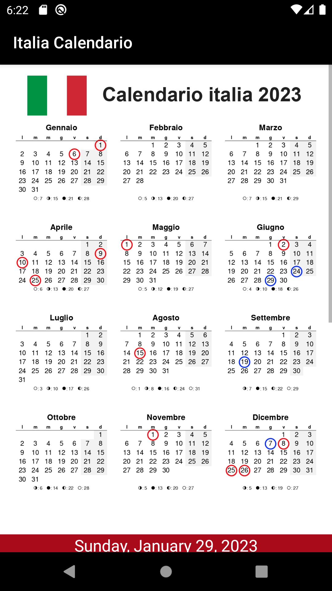 Calendario italiano, la mejor aplicación de calendario disponible para el año 2023 con días festivos