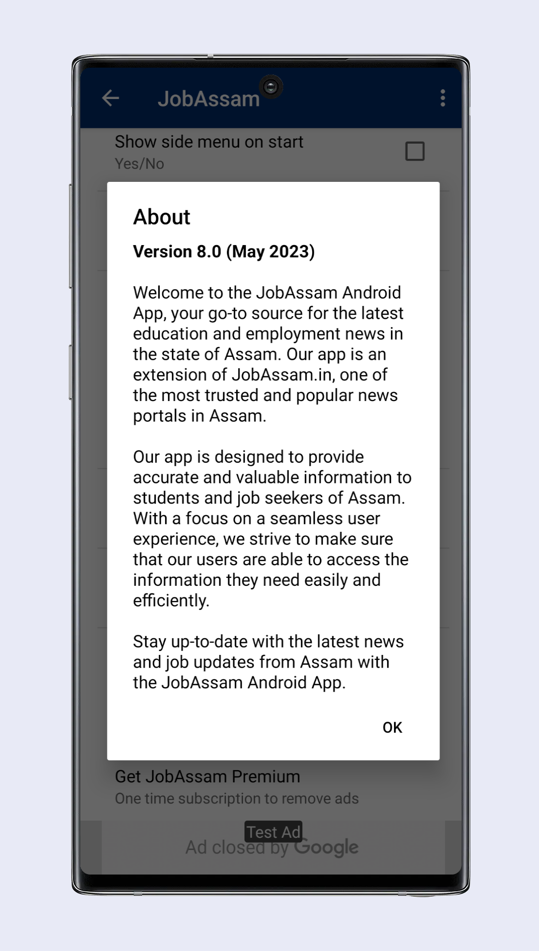 JobAssam.in es uno de los sitios web más populares de Assam. JobAssam.in el sitio web está desarrollado para proporcionar la información laboral más reciente a todos los buscadores de empleo del estado de una manera muy fácil. JobAssam.in fue establecido el 13 de enero de 2016 por Phayel Web Solutions Enterprise. Desde el día de nuestro inicio, nuestro equipo se esfuerza por brindar la mejor experiencia de usuario posible a nuestros usuarios y, al extender esa idea, lanzamos nuestro Android oficial el 22 de mayo de 2018. En esta aplicación, los usuarios podrán realizar un seguimiento de todas las actualizaciones sin visitar ningún sitio web. La interfaz de la aplicación es muy fácil de entender y se ve limpia. Como equipo de JobAssam.in, siempre nos esforzamos por brindar una mejor experiencia de usuario, por lo que usamos menos anuncios en nuestros productos en comparación con otros competidores en el mercado. ¿Por qué usar JobAssam.in? Como sabe, somos uno de los portales web de noticias laborales más antiguos de Assam y, gracias a esta vasta experiencia, comprendemos mejor este campo. La experiencia en este campo nos ayuda a determinar las necesidades de nuestros usuarios, por lo que las actualizaciones de nuestro portal son muy beneficiosas para nuestros usuarios. Además, mantenemos nuestro portal limpio y usamos menos publicidad, lo que ayuda a los usuarios a obtener el contenido que desean rápidamente. ¿Qué información estará disponible en JobAssam.in? JobAssam.in cubre principalmente el sector educativo con muchas actualizaciones importantes del estado. Además, como dice nuestra marca, el portal incluirá toda la información de empleos gubernamentales. En nuestro portal, proporcionamos actualizaciones relacionadas con los siguientes temas: ★Actualización de empleos gubernamentales ★ Admitir Tarjetas ★Resultados del examen ★ Becas del gobierno ★Esquemas gubernamentales ★ Documentos de preguntas ★Programas de examen ★ Varios ¿Cuáles son nuestras fuentes de información? Nuestra principal fuente de información son los sitios web oficiales de gobiernos y organizaciones gubernamentales. También publicamos información basada en algunos medios de comunicación de renombre. Algunas de las URL web de nuestras fuentes se revelan a continuación. Además, se adjuntarán fuentes autorizadas específicas a cada uno de nuestros artículos y, al verificar esas fuentes, los usuarios podrán verificar la autenticidad de nuestra información. → https://assam.gov.in, → https://india.gov.in, → http://www.assamtribune.com/, → https://ssc.nic.in, → https://gauhati.ac.in/, → https://dibru.ac.in/, → https://slprbassam.in/, → https://sebaonline.org/, → http://ahsec.assam.gov.in/ Descargo de responsabilidad: nosotros (JobAssam.in) no estamos asociados con ninguna organización gubernamental o servicios gubernamentales. Esta aplicación está desarrollada para proporcionar información disponible públicamente y no asumimos ninguna responsabilidad legal por ello. Se recomienda a todos los usuarios que tomen toda la información provista dentro de esta aplicación solo con fines educativos y de referencia. Phayel Web Solutions Enterprise y JobAssam.in no son responsables de ningún asunto legal.