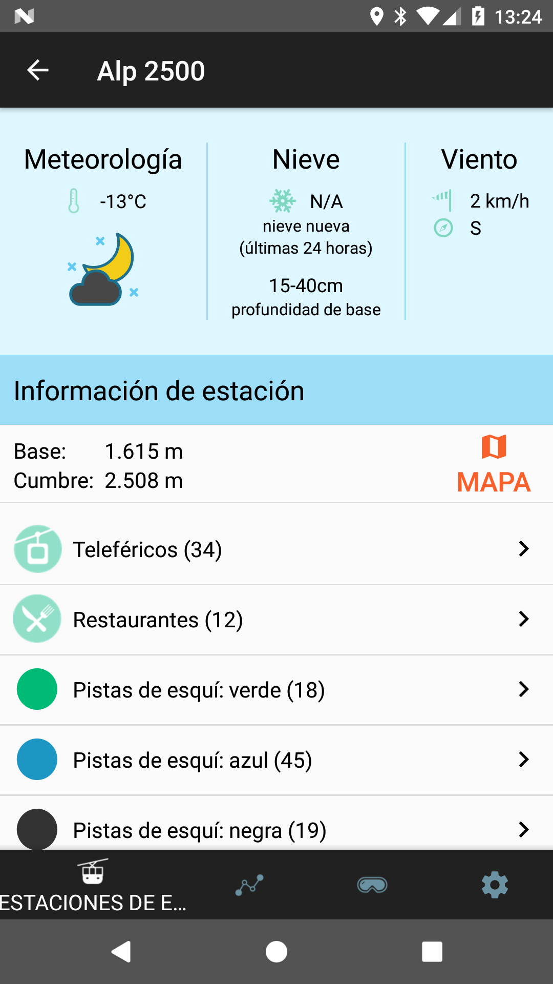 Jollyturns ofrece la información más exhaustiva sobre estaciones de esquí. Lleva el control de tus estadísticas sobre esquís o sobre tablas. Encuentra a tus amigos con facilidad en el mapa de la estación de esquí y reúnete con ellos. Recibe información detallada y actualizada sobre la estación de esquí. • Información detallada de casi 2760 estaciones de esquí en Estados Unidos, Canadá, Austria, Francia, Alemania, Italia, Suiza, Japón, Chile, Argentina, Nueva Zelanda, Australia, Bulgaria, República Checa, Finlandia, Grecia, Hungría, Letonia, Noruega, Polonia, Rumanía, Rusia, Serbia, Eslovaquia, Eslovenia, España, Suecia, Ucrania, Reino Unido, China, Corea del Sur y muchos países más. La información sobre la estación de esquí incluye teleféricos, pistas de esquí, alojamientos, restaurantes, información meteorológica e información sobre la nieve. Trabajamos constantemente para añadir nuevas estaciones de esquí por todo el mundo. Ponte en contacto con nosotros si no ves tu estación favorita en la lista y haremos lo posible por añadirla. • Mapas interactivos: Toca en cualquier parte del mapa de una estación de esquí para obtener más información sobre ella. ¡Funciona en todas las estaciones del mundo! • Graba tu día en la montaña. Puedes ver tus estadísticas, por día o por temporada, y también las de tus amigos. • Lleva el control de tu ubicación y de la de tus amigos en la montaña. Consulta tu posición y la de tus amigos en el mapa de la estación de esquí y no sobre un mapa topográfico desconocido. Se incluye un crédito para la estación de esquí que elijas para que así puedas probar la aplicación. Se pueden comprar créditos para más estaciones de esquí desde la aplicación. La aplicación usa el sensor GPS de tu teléfono para obtener la información de ubicación. Ten en cuenta que el uso continuado del GPS en segundo plano puede provocar un consumo considerable de la batería.