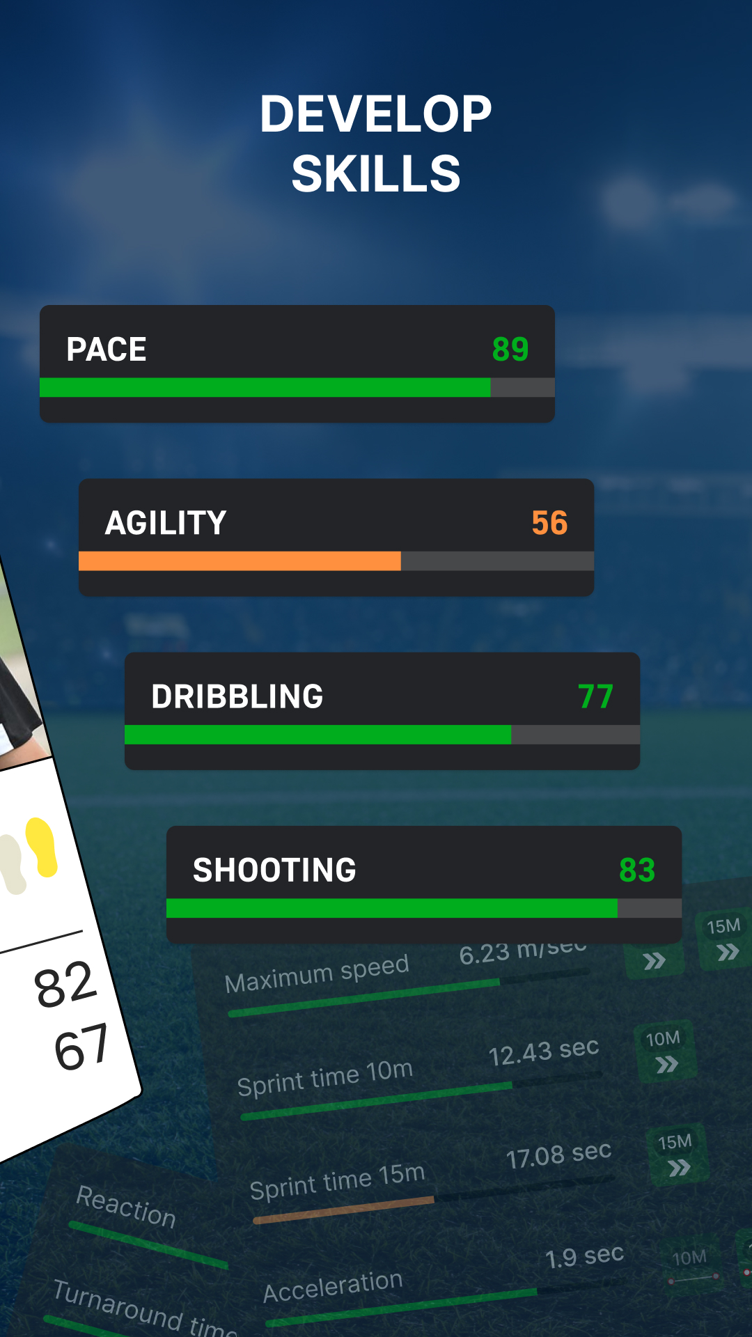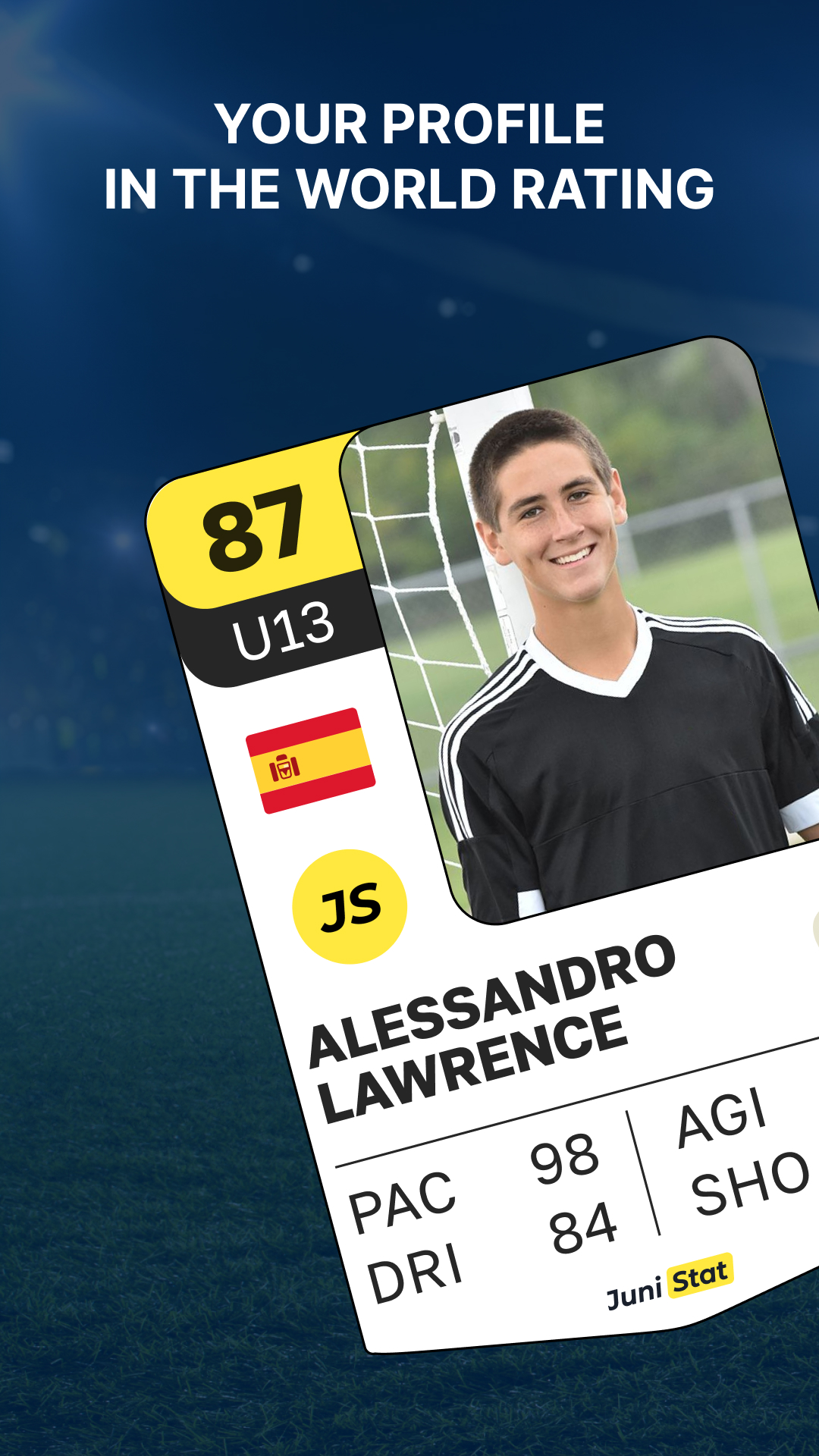 Registrese en JuniStat, compite, entrena, mejora el ranking, comparte sus logros en redes sociales, desarrolla sus habilidades y recibe las invitaciones de clubes y ojeadores.