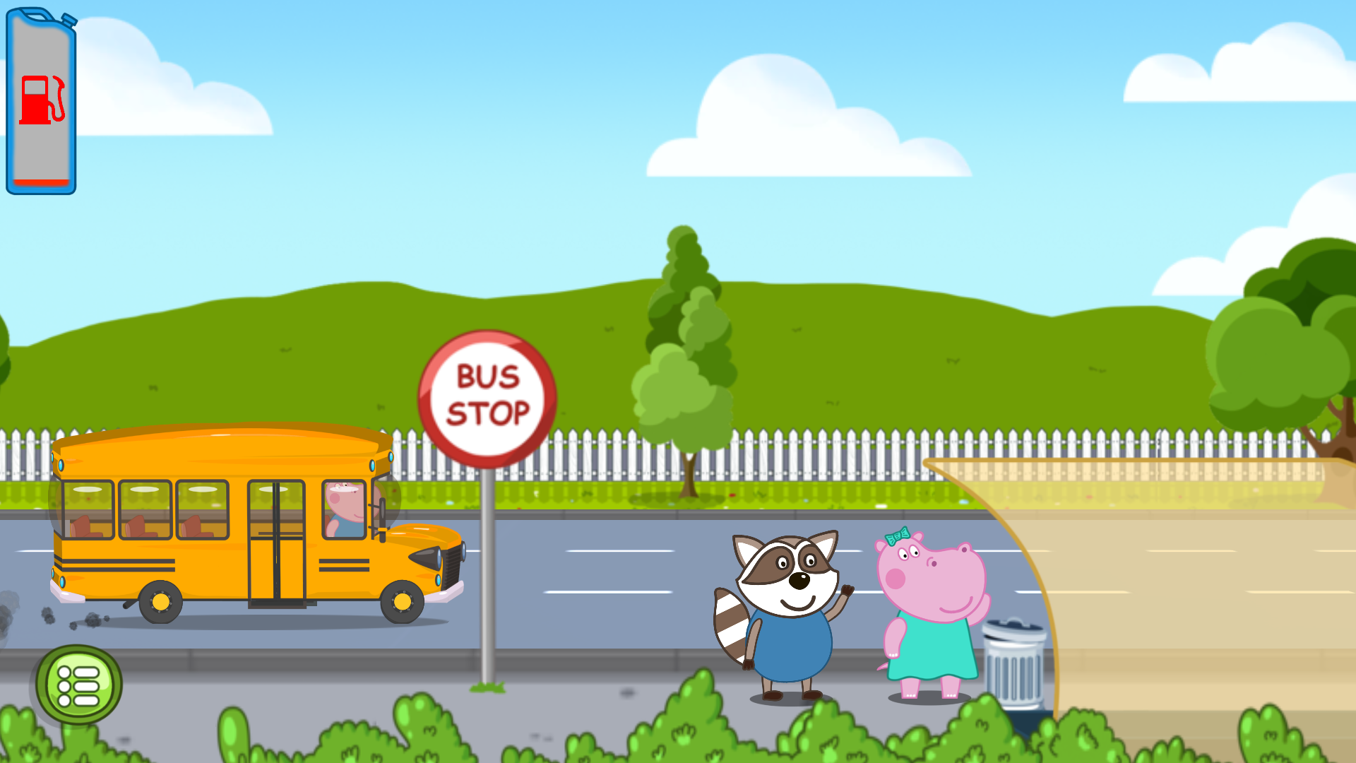 Juegos educativos con Hippo se renuevan con un nuevo juego - simulador de coche para niños. Te gustará este juego si estás aburrido con carreras de cabrito bastante normal. Las carreras de niños normales son monótonas. No es interesante sólo para conducir un autobús, los niños como aventuras. Y les daremos estas aventuras a sus hijos. Hippo autobús escolar no es sólo simulador para niños. Usted, como un conductor de autobús real, va a atrapar a los niños en las paradas de autobús y la lucha contra el tráfico de coches áspero. No estés triste, si el accidente sucede. No es difícil reparar un coche, tenemos todas las herramientas y piezas para un trabajo de reparación rápido y bien calificado. Rueda rota? ¡No hay problema! Tenemos el gato del neumático y el repuesto. ¿El motor está fuera de control? No es un problema también! Abra el capó del motor y cambie los detalles rotos. Es tan interesante y emocionante reparar un coche. Si de repente tienes falta de combustible, la estación de patrulla te ayudará. Le ayudaremos a rellenar un tanque de gasolina de autobús escolar y pagar por ello. Cuando terminamos con la estación de patrulla, tendremos una tarea muy responsable. Y recuerde, hay alumnos dentro. Los maestros los están esperando. La escuela abre sus puertas a todos los alumnos felices hasta el momento en que comienzan las vacaciones. Por eso tendremos muchas tareas y aventuras en el camino.