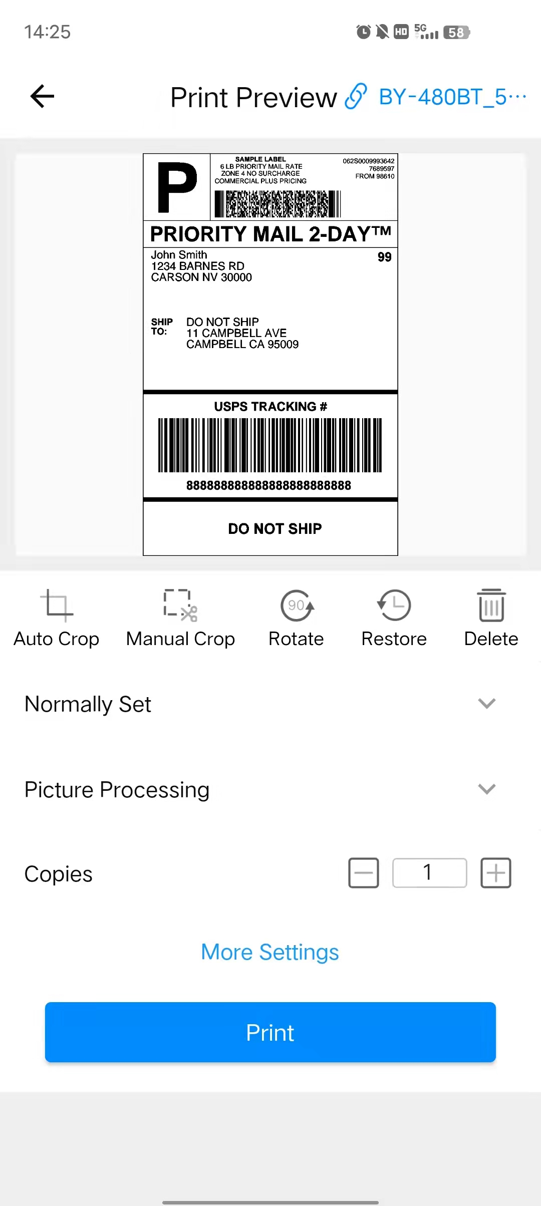 Soporte de impresión de mensajería. Impresora térmica.