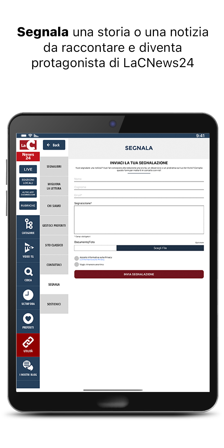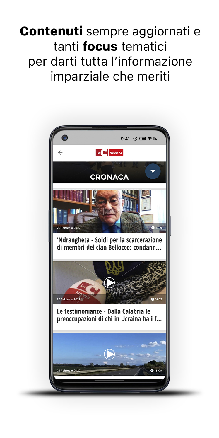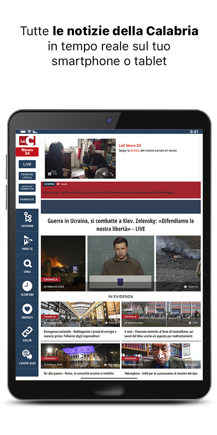 Descargue la nueva aplicación gratuita LaC News24 para mantenerse al día sobre las noticias de Calabria, con una mirada a Italia y el resto del mundo. El diseño gráfico simple e intuitivo hace que su experiencia de navegación sea inmediata y agradable. Encontrarás contenido constantemente actualizado y muchos enfoques temáticos para brindarte toda la información imparcial que te mereces. La página de inicio se actualiza constantemente con el reproductor de transmisión en vivo, noticias, videos, fotos, blogs y mucho más. El nuevo menú lateral, completo y fácil de usar, le permite acceder directamente a todas las noticias actuales, noticias, política, negocios y trabajo, deportes, cultura, salud y entretenimiento para una experiencia de navegación memorable. Elija entre las 6 ediciones locales que le informan de forma capilar y en tiempo real sobre los hechos que están sucediendo en toda Calabria. En la nueva sección ÚLTIMO AHORA encontrarás todas las novedades realizadas en los minutos anteriores. Vea todas las ediciones del programa de noticias de LaC News24 en la sección Video, totalmente dedicada a la información en profundidad. Lea las opiniones y los conocimientos de nuestros expertos en la sección Blog y columnas. Siga la transmisión en vivo de los canales de LaC Tv, LaC News24 y Web Radio directamente a su teléfono inteligente, donde y cuando quiera. Las nuevas funciones Administrar favoritos y marcadores lo ayudan a informarse y agregar a su archivo personalizado solo lo que le interesa. Toque Informar y conviértase en el protagonista de LaCNews24 al informar una historia, un flaco favor, un evento o un problema que cree que es importante contar. Las noticias de LaC News24 están todas verificadas, los hechos son sondeados por el personal editorial que le actualiza escrupulosamente sobre lo que está sucediendo en el panorama calabrés: desde las noticias a la política, desde la economía a la cultura, desde el deporte a la salud a través de consultas, columnas, opiniones. , sátira, especiales y reportajes de noticias.