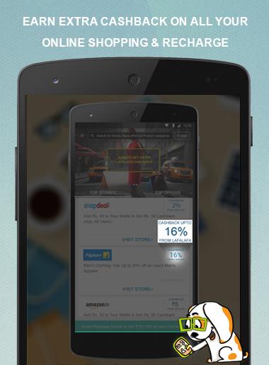 LafaLafa - Cashback and Coupons App. LafaLafa.com - India’s leading cashback and coupons website introduces LafaLafa app making shopping easier and profitable for everyone. LafaLafa is India’s first exclusive cashback app where you will find the best cashback offers, best recharge deals and many other offers on a single go. Earn exclusive cashback while shopping for your favorite products through all major online stores. Shopping made more fun with extra cashback on all transaction. With LafaLafa, you can get discount coupons, promo codes, offers and deals for all products bought through LafaLafa on online shopping stores like Flipkart, Snapdeal, Amazon, Ebay, Shopclues, Shoppers Stop, Nature’s Basket, India Times, Groupon, Myntra, Jabong, Lenskart, Paytm and many more. LafaLafa provides the easiest way of saving money on your everyday shopping by letting you choose from the best deals available on hotel and flight booking, earn mobile and DTH recharge and online shopping stores and provides cashback upto 60% to add to make your shopping sweet. How does it work? ★ Tap: Tap & visit store's mobile website or app(only Flipkart) through LafaLafa ★ Shop: Shop as normal ★ Earn: Stores give us a commission and we share this with you as extra cashback which will track within 72 hours and will be Payable within 60-90 days How to redeem your LafaLafa Cashback? Start redeeming your Payable Cashback even for as low as Rs. 100 for ★ Bank Transfer to get money straight to your bank account as cash ★ Free INSTANT Mobile Recharge/ Free Talk-time for any network - a feature which is exclusively available only via LafaLafa Major Features: Hot offers Grab the best everyday deal and offers on featured products from 500+ online stores at a single place. Earn exclusive cashback on trendy deals everyday. Get one click access to best offers available and save cash every time you shop. Exciting cashback on Indian and International brands for you to choose among the best. Order your favorite food and snacks online from FAASOS, Grofers, Pepperfry, Big Basket and eat fresh and save money . Categories to choose Narrow down your shopping results with wide and easy to choose categories. View specific electronic deals, Mobile recharge offers, DTH recharge offers, clothing and fashion deals, Bill payment offers, offers on gifts and accessories and many more. Now travel to your favorite destination and book and earn hotel and flight cashback from Yatra, MakeMyTrip, OYO Rooms and GoIbibo. Earn 10% cashback for lifetime Invite your friends and family members to install and register on LafaLafa App and get Rs 5 directly to your account. You will also get 10% off on cashback every time your referral shops online through LafaLafa App. Sit back and earn a hefty cashback just by referring the LafaLafa app to your friends and family and start making money every time they shop. Get the Best Customer Support Get all your confusions cleared regarding best offers and cashback deals by our 24*7 customer support system. Get to know the hot offers of the day and much more just by dropping us a message or subscribing to us. Do give us a call to clear all your doubts and get in touch with us through our social channels. Connect with us on: Facebook: https://www.facebook.com/lafalafacom Twitter: https://twitter.com/lafalafacom Google+: https://plus.google.com/115592527714300522293/about WeChat ID: LafaLafacom