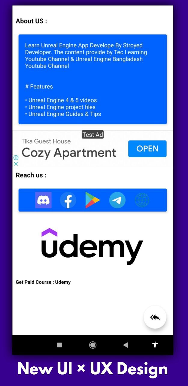 Si desea aprender UE4, esta aplicación lo ayudará a tener muchos videos y Guide Video también tiene Free Project For UE4. Además, al usar esta aplicación, puede ver nuestro video de YouTube, etc. Esperamos que te guste esto, hacemos todo lo posible para mejorar esto más. Solo apóyanos. Agregamos UI + UX Level Design. Entonces te sientes bien cuando usas nuestra aplicación. Hacemos todo lo posible para mejorar y agregar más contenido. Esperamos que nos apoye