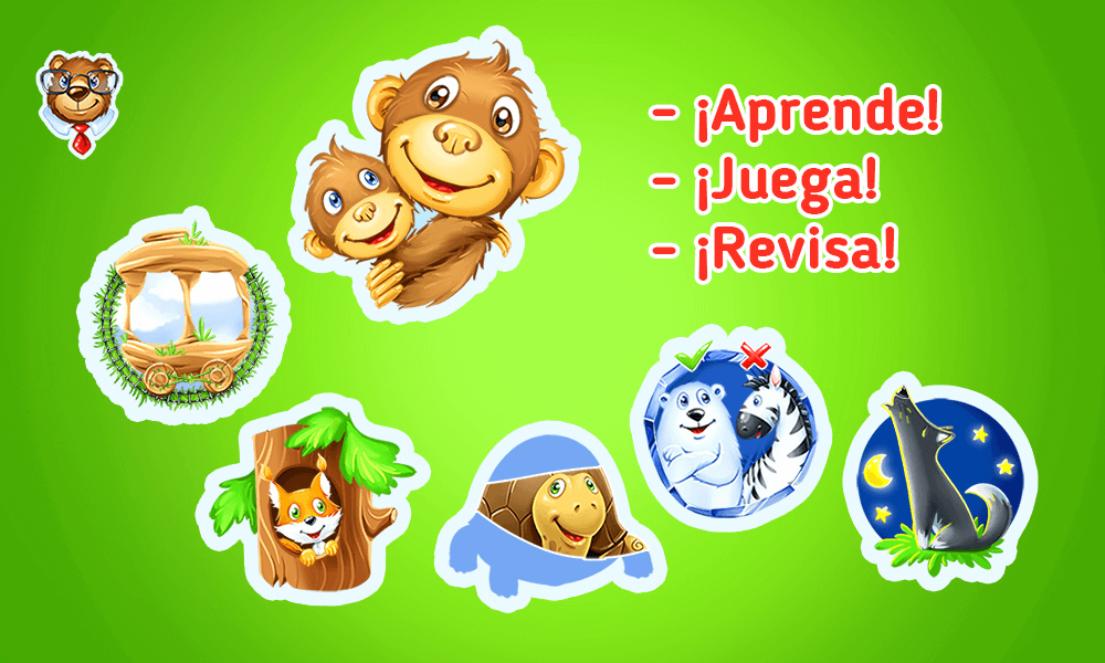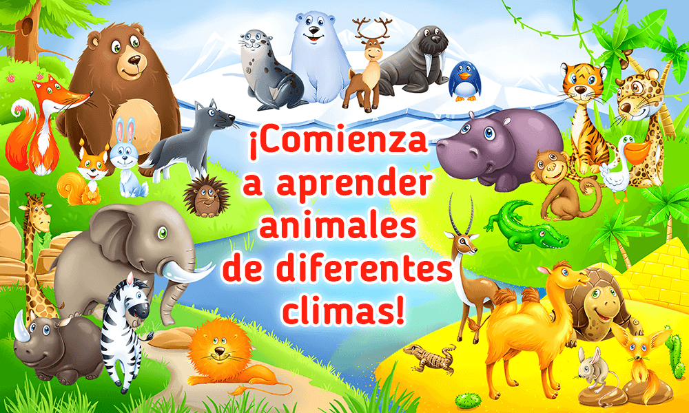 El juego de animales para niños es uno de nuestros juegos educativos infantiles gratis para niños de 3 a 5 años en el cual los niños pueden aprender los animales en español y los sonidos animales para niños que estos hacen. Algunas de las principales ventajas de estos juegos para niños pequeños son: 1) Nuestros juegos para aprender animales contienen, entre otros, 29 animales localizados en 5 regiones diferentes: -Animales para niños y bebes en juegos de animales bebes en la región Polar de la tundra Árctica, un pingüino, una foca, una morsa, un reno y un oso polar; -Juegos infantiles gratis localizados en bosques de árboles caducos, coníferos y mixtos, un erizo, una ardilla, un conejito, un zorro, un lobo y un oso; -Tren de animales en la selva, un pelicano, un mono, un hipopótamo, un tigre y un guepardo; -Juegos divertidos para niños en el desierto, una tortuga, un lagarto, un camello, una antílope y un gerbo; -Animales para niños español en la Sabana con juegos de animales salvajes, un avestruz, una jirafa, un rinoceronte, un león y un elefante. 2) Nuestros juegos para bebes de 2 años educativo no solo introducirán al niño a animales adultos pero también bebe animales. Por supuesto que a los niños pequeños les encantan los juegos de aprendisaje que incluyen animales infantiles. En nuestros juegos de aprendizaje para niños su hijo aprenderá los nombres de animales tanto domésticos como salvajes con sonidos de animales para bebes en varios idiomas diferentes. 3) Jugando en el tren con animales el niño podrá escuchar los diferentes sonidos que hacen varios animales, la claridad y naturalidad de los mismos es tan ideal que el niño podrá verse inmerso en escenarios peculiares en diferentes paisajes del mundo con varios animales presentes. 4) Explorando los diferentes juegos de rompecabezas de animales para niños, su hijo llegara a encontrarse con los diferentes paisajes mundiales en los que los animales viven y sus vastas características. 5) Los niños aprenden sobre los animales con rompecabezas de animales para niños que ofrecen al niño en particular diferentes combinaciones de puzles, cada uno separado en piezas ordenadas por cabeza, torso, patas, cola, etc. 6) Para asegurarse y revisar que el niño se haya quedado con la información ofrecida, se añaden 5 juegos diferentes con animales interactivos: -El primer juego en las aplicaciones gratis educativas para niños de infantil consiste en escuchar los diferentes sonidos o voces que hacen los animales y adivinar a que animal pertenecen. A los niños les intriga y entretiene, a la vez que hace reír, escuchar los diferentes sonidos. -El segundo de los juegos didacticos para niños gratis de 2 a 3 años contiene puzzles animales para niños. El niño es ofrecido con la imagen completa de un animal en particular, al tocarla, esta se divide en varios fragmentos que se mezclan ligeramente entre ellos. El ejercicio pide volver a juntar la imagen del animal de la forma en la que esta estaba en un principio. Para simplificar la dificultad se añade una difusa silueta del animal en cuestión de fondo para facilitar la tarea. -El tercer juego, del apartado de juegos didacticos para niños gratis de preescolar en español se posiciona en un tren en movimiento con varios animales adultos sentados en diferentes asientos y animales infantiles en espera de ser colocados con sus padres. -El cuarto juego ayuda a aprender animales en inglés. Al niño se le ofrecen diferentes animales con imágenes de 3 posibles paisajes en los que este podría vivir, el niño debe elegir entre los 3 el correcto para cada animal. -El quinto y último de los juegos es similar al anterior pero inverso, en esta ocasión se ofrece un paisaje y varios animales que podrían vivir en él. Para simplificar la tarea solo se pide elegir uno de los animales que difiere de los otros y no encaja en dicho paisaje. Esta aplicación contiene juegos de animales para niños infantiles de 1 a 3 años gratis y juegos educativos niños infantil de 4 años.