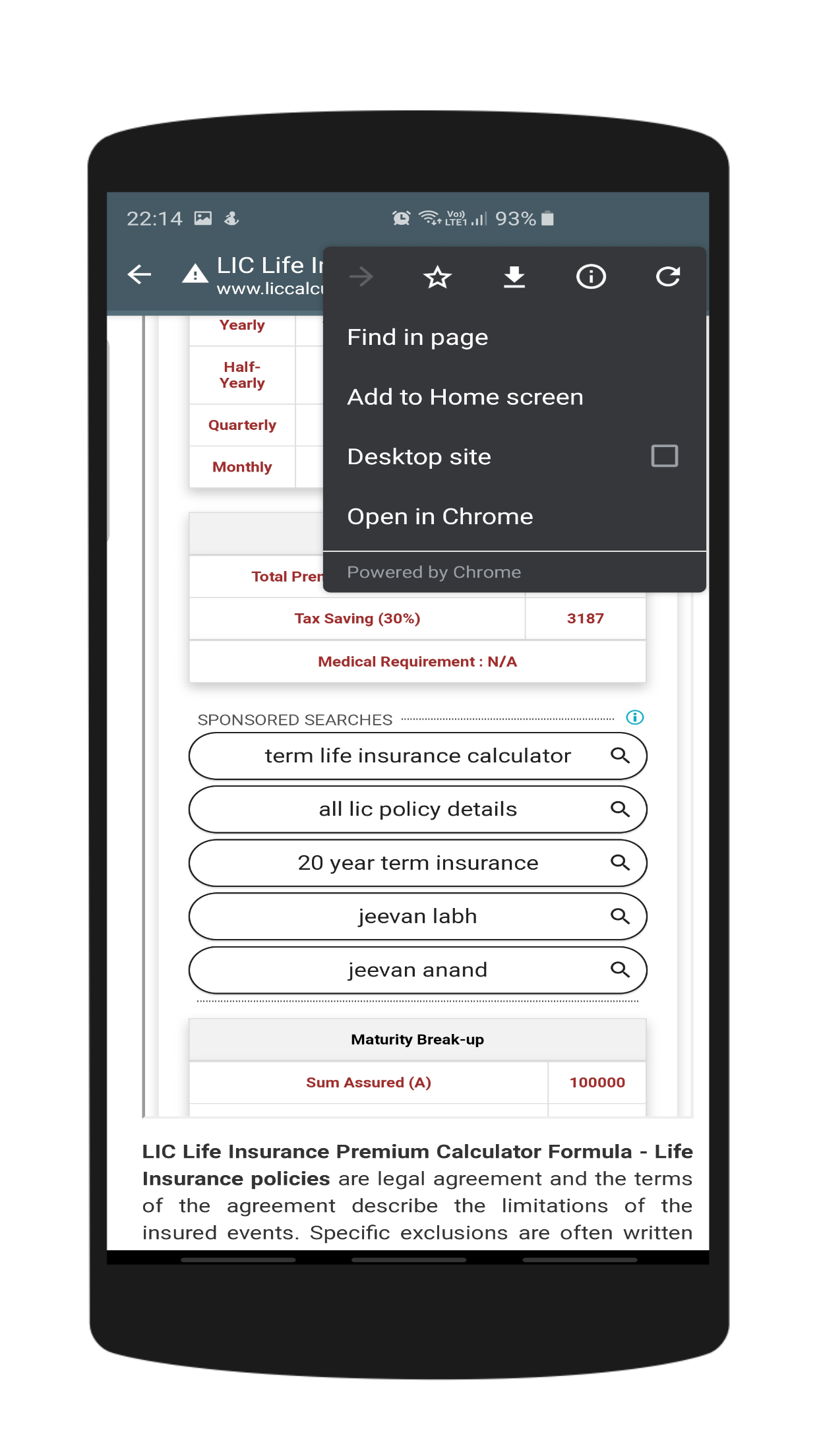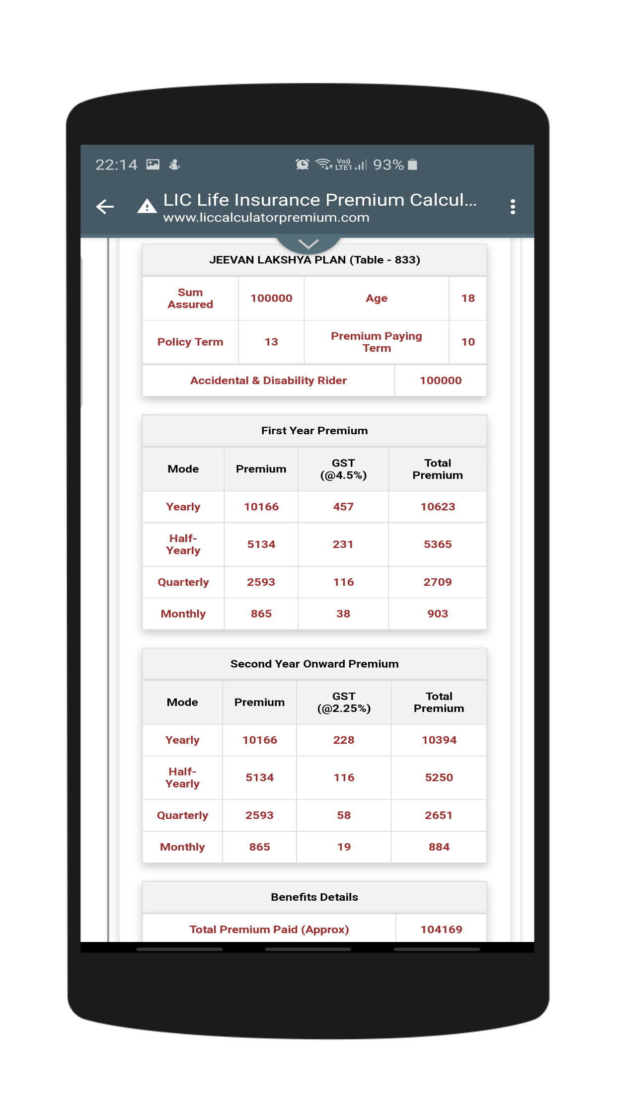 L.I.C Premium and Maturity Calculator is a free tool to calculate your monthly premiums. Not just L.I.C, we have covered all popular Insurance provided by Policy Companies approved by IRDA. In this App, user can check Policy Information, Death Benefits, Tax Savings, Maturity Benefits and more from SBI, HDFC Insurance, Aviva Life Insurance, TATA AIG, AEGON, Bharti AXA, Birla SunLife, Canara HSBC OBC, Future Generali, Pridential, IDBI Federal, Max NewYork, PNB MetLife, Reliance Nippon, Sahara India and more! Latest L.I.C Plans are: Endowment Plan L.I.C Aadhaar Shila Premium Calculator L.I.C Aadhaar Stambh Premium Calculator Pension Plan L.I.C Jeevan Akshay VI (6) Premium Calculator Pradhan Mantri Vaya Vandana Yojana Money Back L.I.C Jeevan Shiromani L.I.C Bima Shree L.I.C Insurance Branches and Offices This help also help you to find L.I.C Branches, SBI Branches, HDFC Insurance Branches, Birla SunLife, ICICI Prudential, Bajaj Allianz, Aviva Life Insurance, max NewYork, IDBI Federal, Future Generali, Shriram Life Insurance, Reliance Insurance, Sahara India and all. Health Insurance Plans and Branches in India Now Check All Health Insurance Quotes, Products, Premium Calculators, Policy Information and more! Download Financial Forms One Stop to download all financial forms from L.I.C SBI, Tax, GST and more. Mutual Funds , SIP and Calculators Find list of Mutual Funds that performing well according to industry, NAV Price, Rate of Interest. Also Calculate Monthly and One Time SIP Investment, Best SIP Plans, Performance and more! Income Tax Calculators TDS Calculators Advance Tax Calculator Deduction Under Section 80D Financial and Insurance Latest News at one click. Easily Change Settings and Themes.