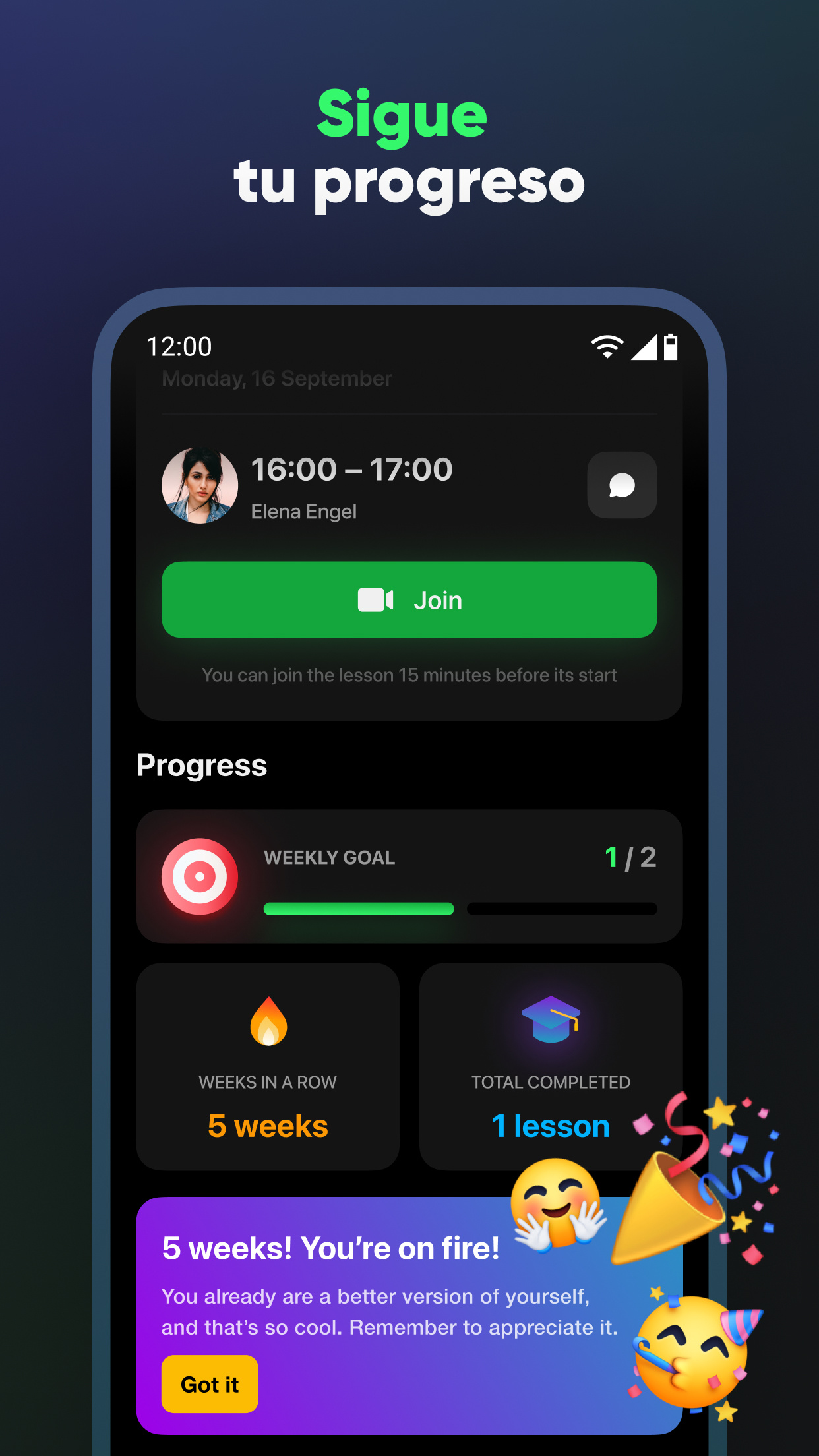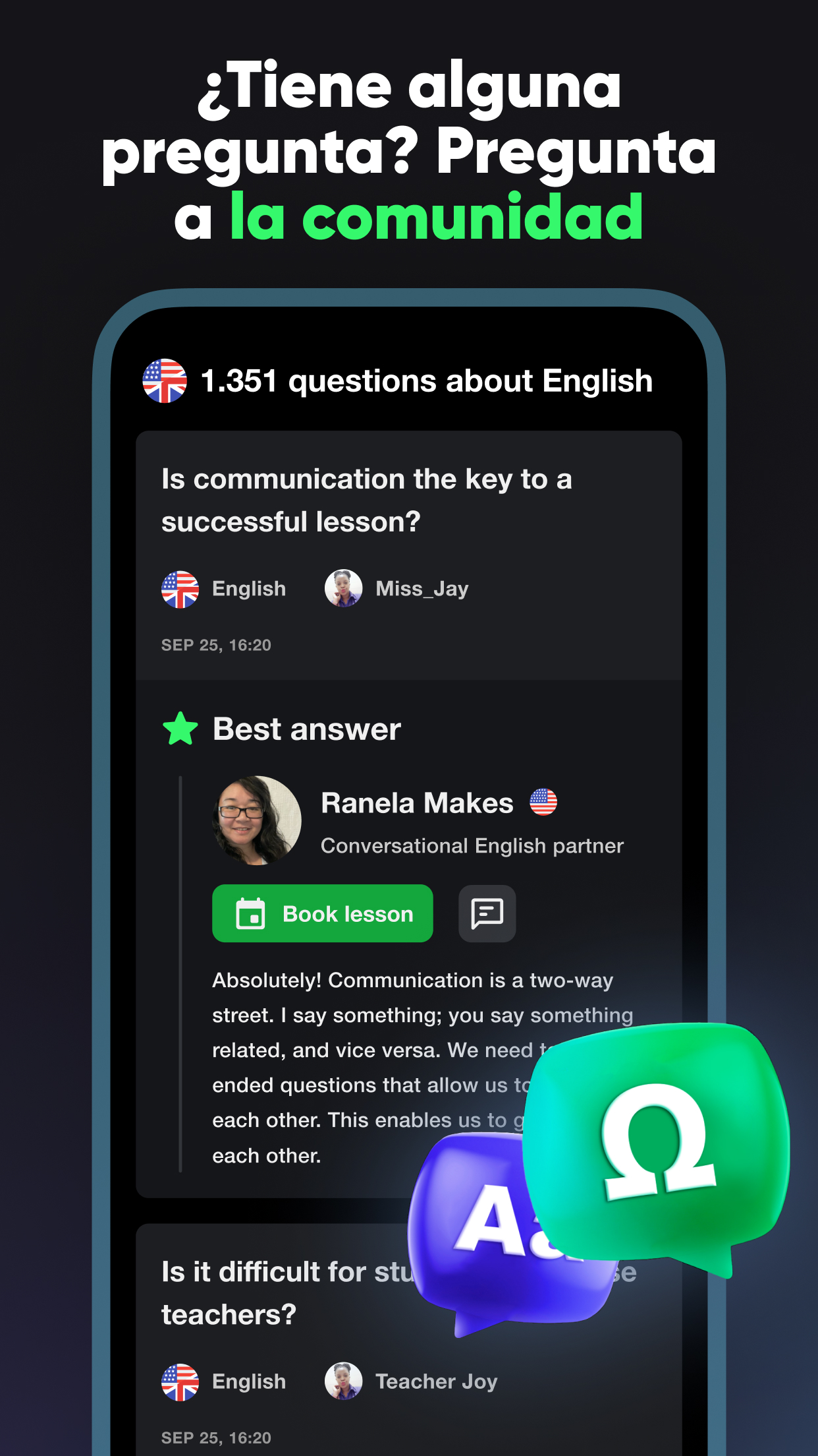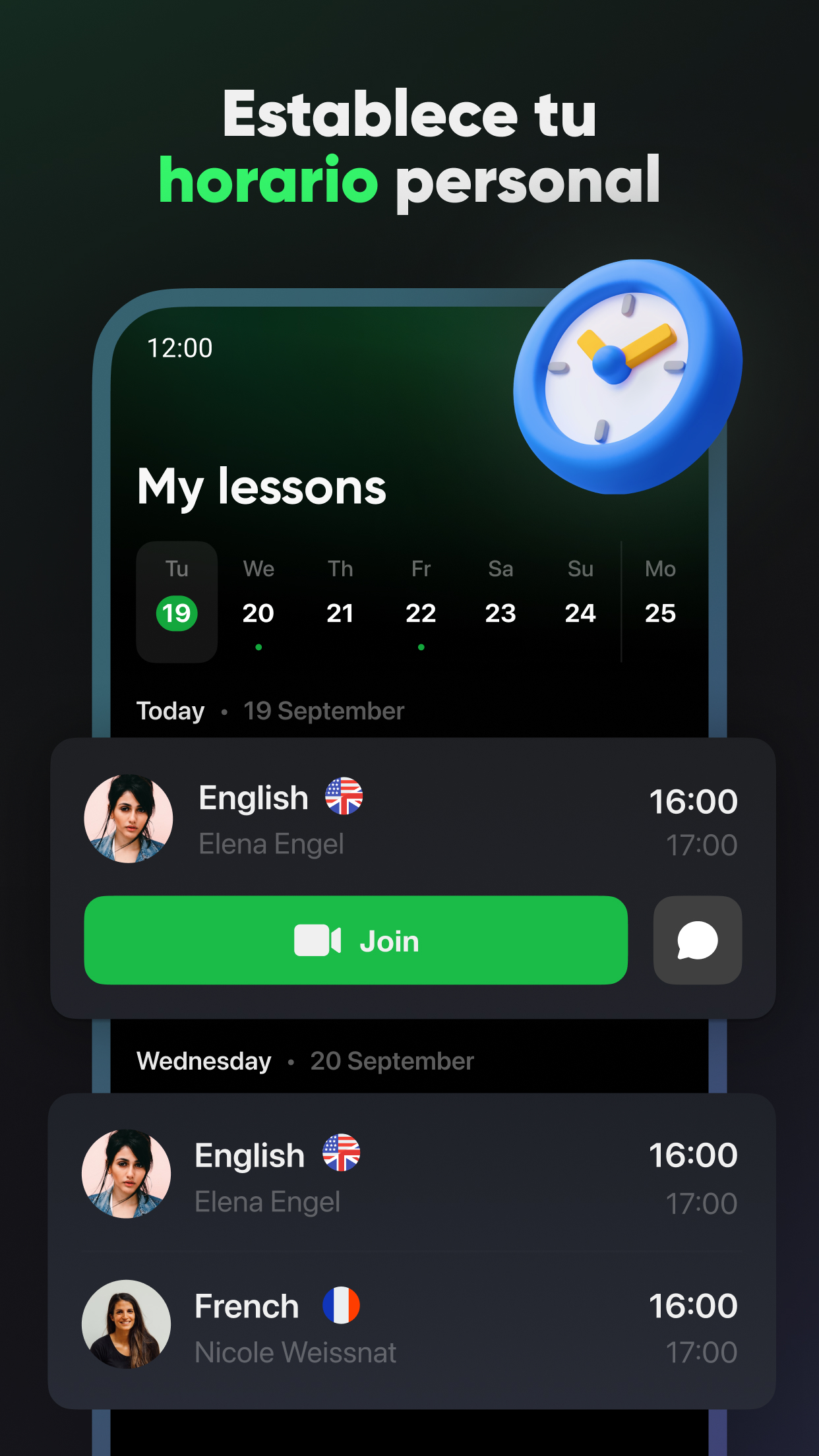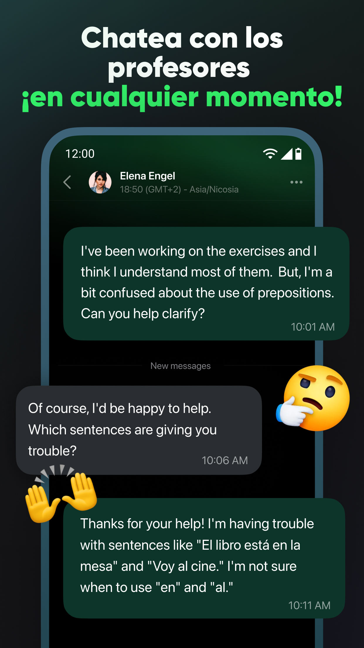 ¡Aprender idiomas es ahora más fácil con LiveXP! En nuestra aplicación encontrarás los mejores profesores para clases particulares, incluidos hablantes nativos. Elige inglés, español, francés, alemán, italiano y muchos otros idiomas para sesiones online 1 a 1. LiveXP es una aplicación que te ofrece todo lo que necesitas para aprender. Si quieres hablar un idioma, has venido al lugar adecuado. APRENDE 1 A 1 CON UN PROFESOR LiveXP está lleno de profesores profesionales. Con los filtros de búsqueda (tu objetivo lingüístico, por ejemplo), encontrarás más rápidamente a tu profesor perfecto. Solo tienes que adquirir la suscripción que más te convenga y empezar a programar clases. El precio de las clases para todos los profesores de LiveXP es el mismo, así que no dudes en tener clases con varios profesores si te apetece. Verás tu horario en la aplicación, que también tiene un mensajero integrado para que puedas ponerte en contacto cuando sea necesario. VE A TU PROPIO RITMO Elige entre sesiones de 30, 45 y 60 minutos y la fecha y hora que más te convengan. Puedes recibir tus clases desde cualquier lugar del mundo, siempre que haya conexión a internet. AMPLÍA TU VOCABULARIO CON EL ENTRENADOR DE PALABRAS Utiliza nuestro Entrenador de palabras integrado para aprender palabras de forma eficaz gracias a un algoritmo de repetición espaciada respaldado por la ciencia. Añade palabras durante tus clases o fuera de ellas, o utiliza nuestros conjuntos de palabras que cubren los temas cotidianos más populares para empezar. Nuestro equipo de soporte está siempre a tu disposición, listo para ayudarte y responder a cualquiera de tus preguntas. ¡Nos vemos!