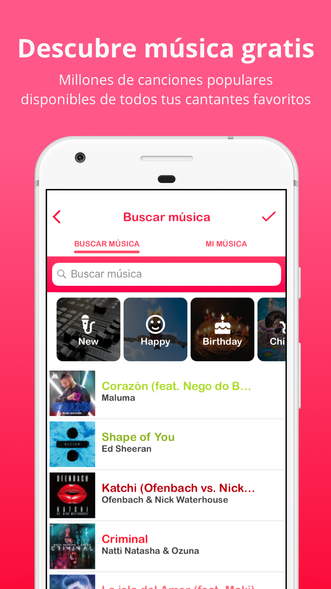 2. Añade una pista de música de fondo: elige entre millones de canciones populares y úsalas totalmente gratis.