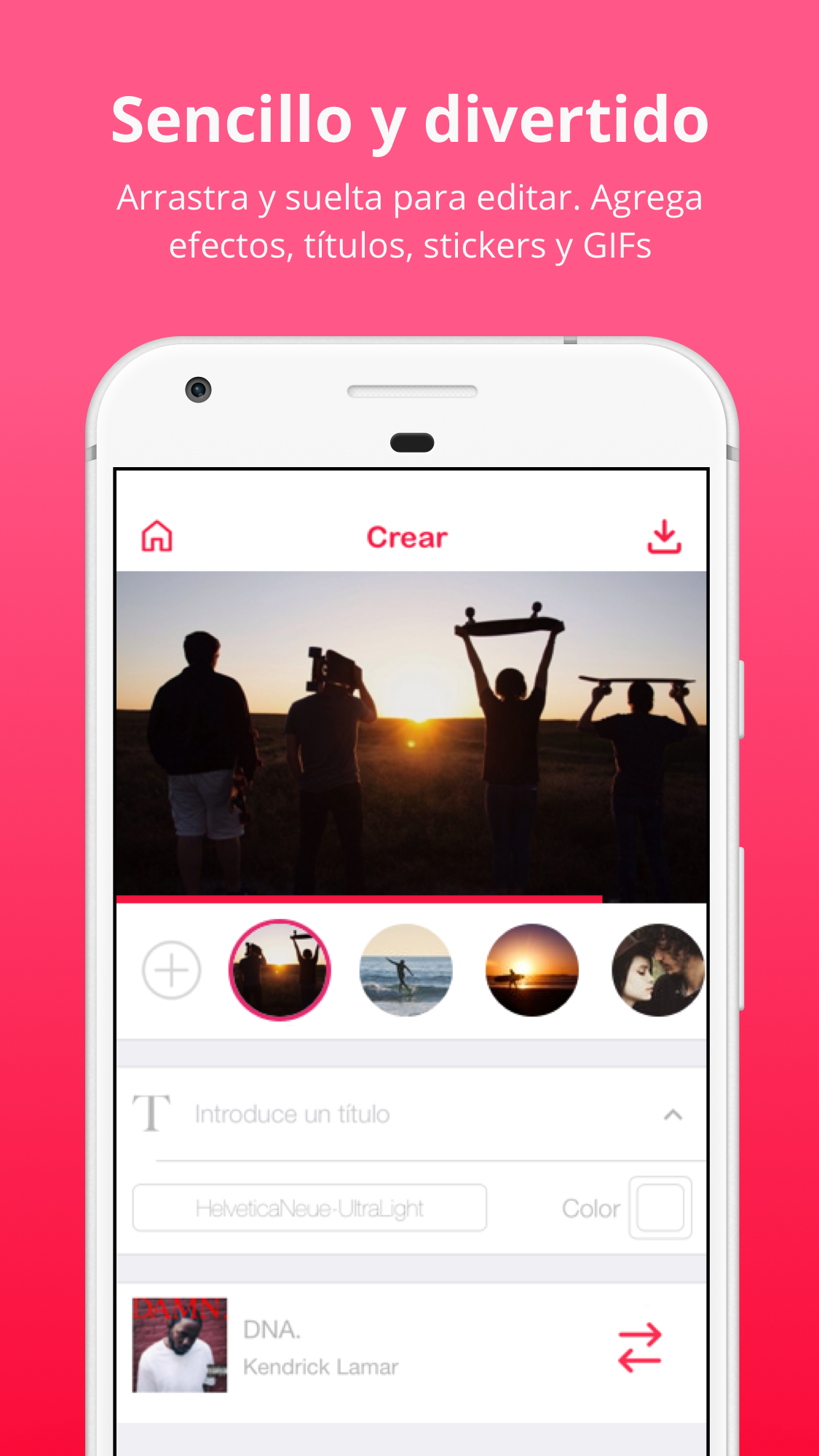 Es la app nº1 para 1. Añadir música a tus videoclips 2. Añadir tus videoclips (y fotos) a un montaje de vídeo musical.