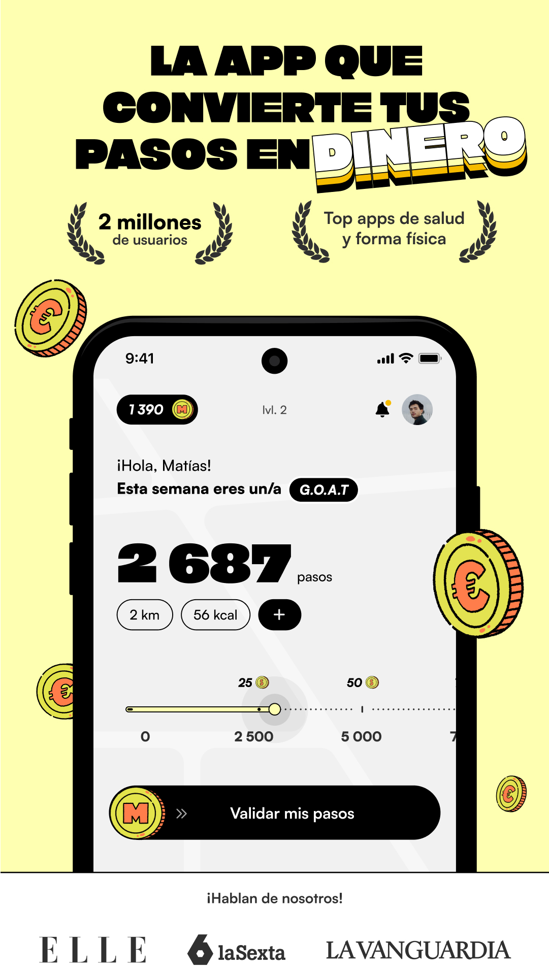 2. Macadam no solo te incentiva a mantenerte en forma, sino que también recompensa cada paso que das con "coins", monedas virtuales intercambiables por dinero real, que puedes incluso transferir a tu cuenta bancaria.
