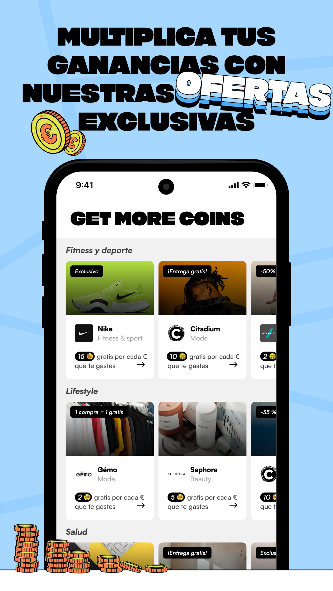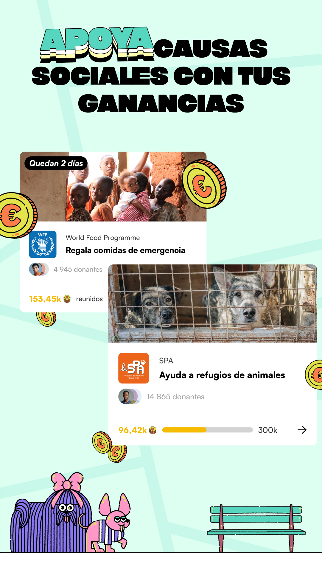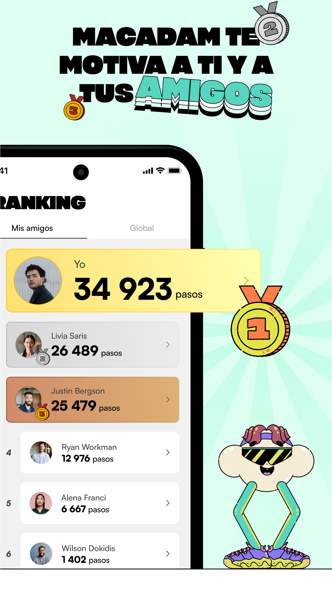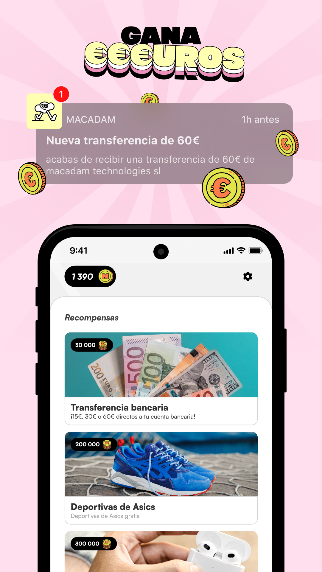 Macadam no es solo una aplicación para mantenerse en forma, también es una forma sencilla de obtener recompensas. Por cada paso que das, ganas "coins", una moneda virtual que se puede cambiar por dinero real y canjear por productos de nuestros asociados, o, transferir a tu cuenta bancaria. Con Macadam, cada pequeño paso cuenta y cada uno contribuye a tus ganancias.