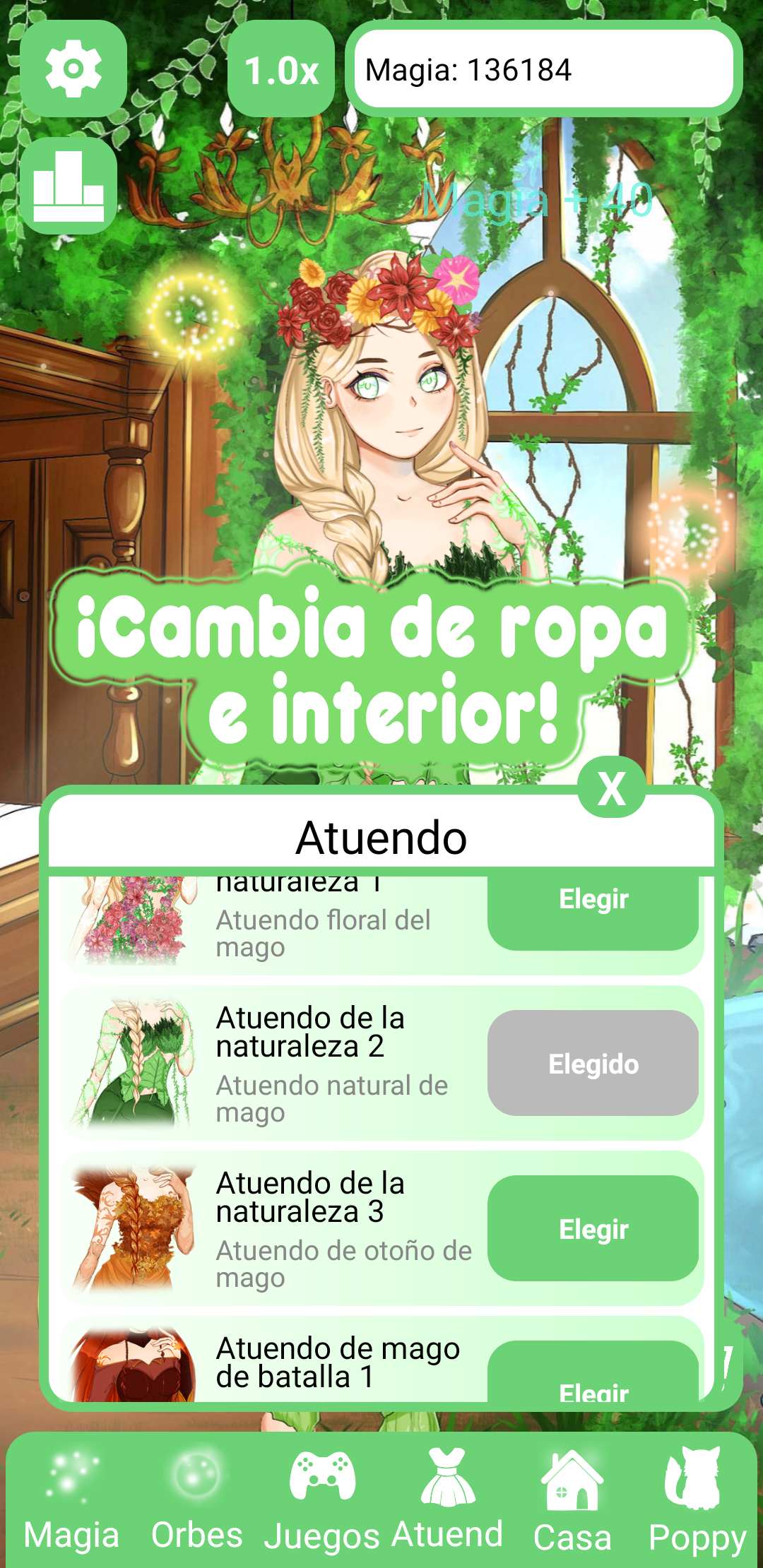 Ayuda a la niña con el desarrollo. Acumulen magia juntos, aprenden y mejoren hechizos, usen artefactos mágicos (varitas mágicas, colgantes, lámparas) y también sacan magia de los orbes (esferas mágicas).
