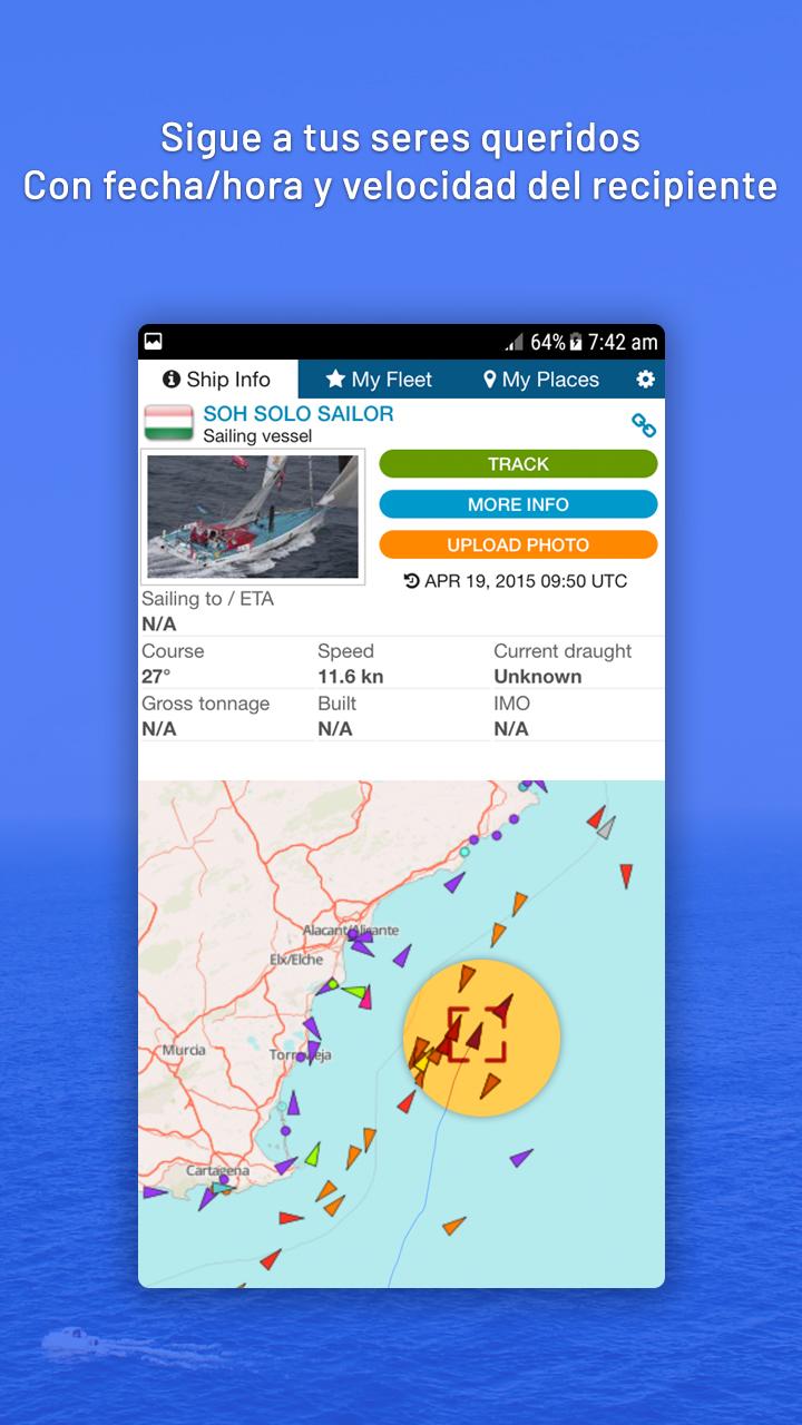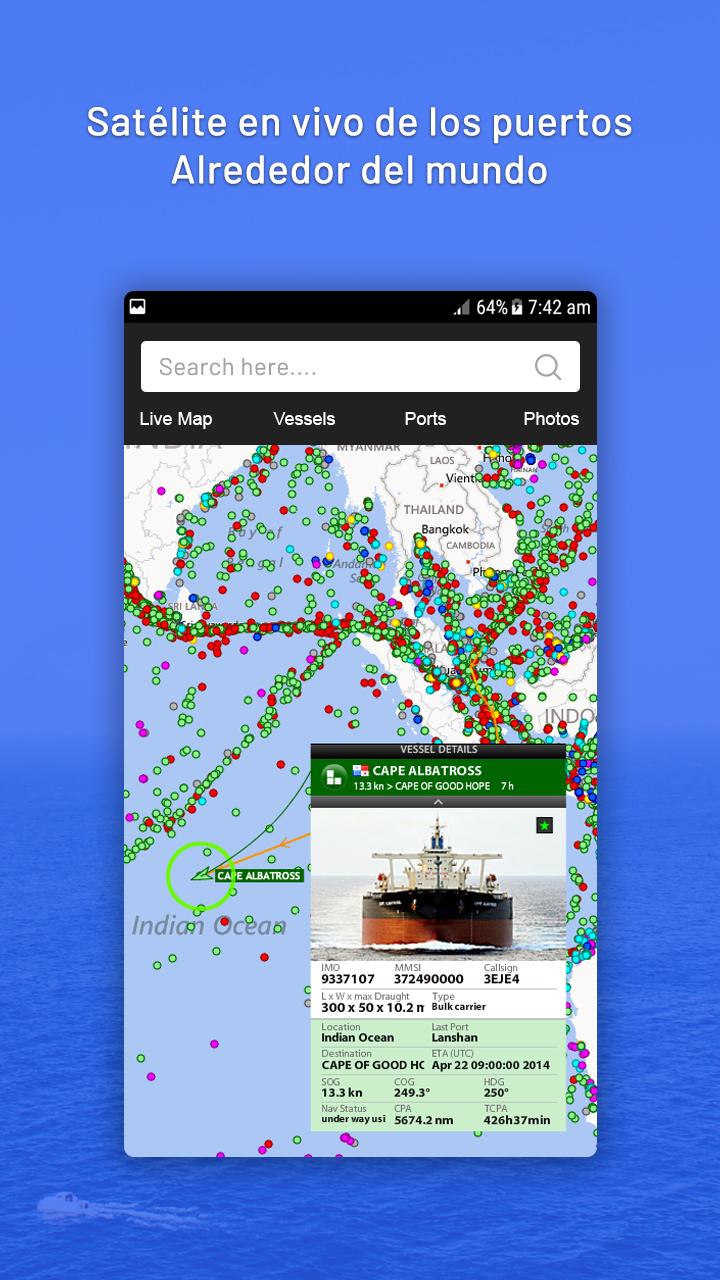 "Navegación marítima: buscador de cruceros y tráfico de embarcaciones" es una de las aplicaciones más consistentes para la navegación marítima y el rastreador de embarcaciones. El usuario puede acceder a esta aplicación como buscador de cruceros y buscador de embarcaciones. Es un increíble buscador de cruceros y barcos para ayudar a los viajeros. Es una forma impresionante de la placa para el mapa satelital y el mapa de calles abierto. "Navegación marina: buscador de cruceros y tráfico de barcos" se puede usar como crucero Buscador de embarcaciones. Es una plataforma realista y diversificada para rastrear envíos, rastreadores marinos y buscadores de posición. Los usuarios pueden buscar el mejor barco de acuerdo con sus viajes planificados y pueden acceder al agente de la embarcación. La gente puede disfrutar de un paseo en bote y reservar un itinerario de crucero. Los usuarios pueden ver todos los barcos en el mapa satelital y usar la aplicación como navegador del barco. Otras características de esta aplicación son el barco con coordenadas GPS completas y el seguimiento de los petroleros de petróleo crudo. Los usuarios pueden buscar barcos de pasajeros , Servicio de embarcaciones y yates. Buscador de embarcaciones. Puede explorar la cantidad suficiente de diferentes tipos de embarcaciones, como transportistas de peces, petroleros de crudo, buques de pesca, otros remolcadores / embarcaciones especiales, buques, buques de pasajeros, buques de entrenamiento, graneleros, buques de bomberos, Servicio, yates y mucho más. Aplicación de navegación GPS marina proporciona información puerto llegadas y salidas también. El usuario puede monitorear fácilmente la ubicación del GPS marino de cualquier barco y el clima marino fácil de usar. 1) Buscador de buques Los usuarios pueden buscar el barco requerido por nombre de barco, MMSI e IMO. El Rastreador de posición de la embarcación también proporciona seguimiento del tráfico marítimo también en el mapa. Pueden buscar barcos con barcos de radar marinos y puertos marítimos a través del buscador de barcos de Marinetime. 2) Vista del mapa del buque Los usuarios pueden ver todo el GPS de navegación gps y el radar de tráfico marino en vivo. Los usuarios pueden ver los buques en el mapa en vivo y el rastreador marino. Los usuarios pueden ver la navegación marina por GPS, seguimiento de barcos en vivo con seguimiento de buques en vivo también. 3) Radar de crucero Cruise tracker proporciona mapas de cruceros y también obtiene información sobre barcos, puertos, líneas de cruceros, planos de cubierta, accidentes, velocidad, rumbo y Cruise Finer también. 4) Historial de seguimiento Los usuarios pueden ver y solicitar datos de tráfico marítimo AIS en relación con los límites de los puertos y han extraído el tiempo de llegada, las salidas de los buques en todos los puertos y también el nombre, tipo, dimensiones y bandera del buque, como también. 5) Clino Meter El clinómetro es una de las características más impresionantes de la aplicación de tráfico marino e instrumento utilizado para medir ángulos de pendiente, depresión de un objeto con respecto a la dirección de la gravedad. También se denomina como, medidor de gradiente, gradiómetro, indicador de inclinación, sensor de inclinación, medidor de inclinación , alerta de pendiente, medidor de nivel, declinómetro, indicador de inclinación y balanceo e indicador de inclinación y nivel. 6) Medidor de presión El medidor de presión también es una parte excelente que se utiliza para determinar la presión relativa de la presión absoluta (exceso y negativa) para gases, líquidos y aire. 7) Medidor de nivel El medidor de nivel también es una parte esencial utilizada para mediciones acústicas (sonido que viaja a través del aire). 8) Brújula Brújula simple Brújula militar Compás de ar 9) Puertos de crucero Los usuarios pueden consultar los horarios de los puertos de cruceros en todo el mundo. El usuario puede buscar por nombre de puerto según el país requerido.