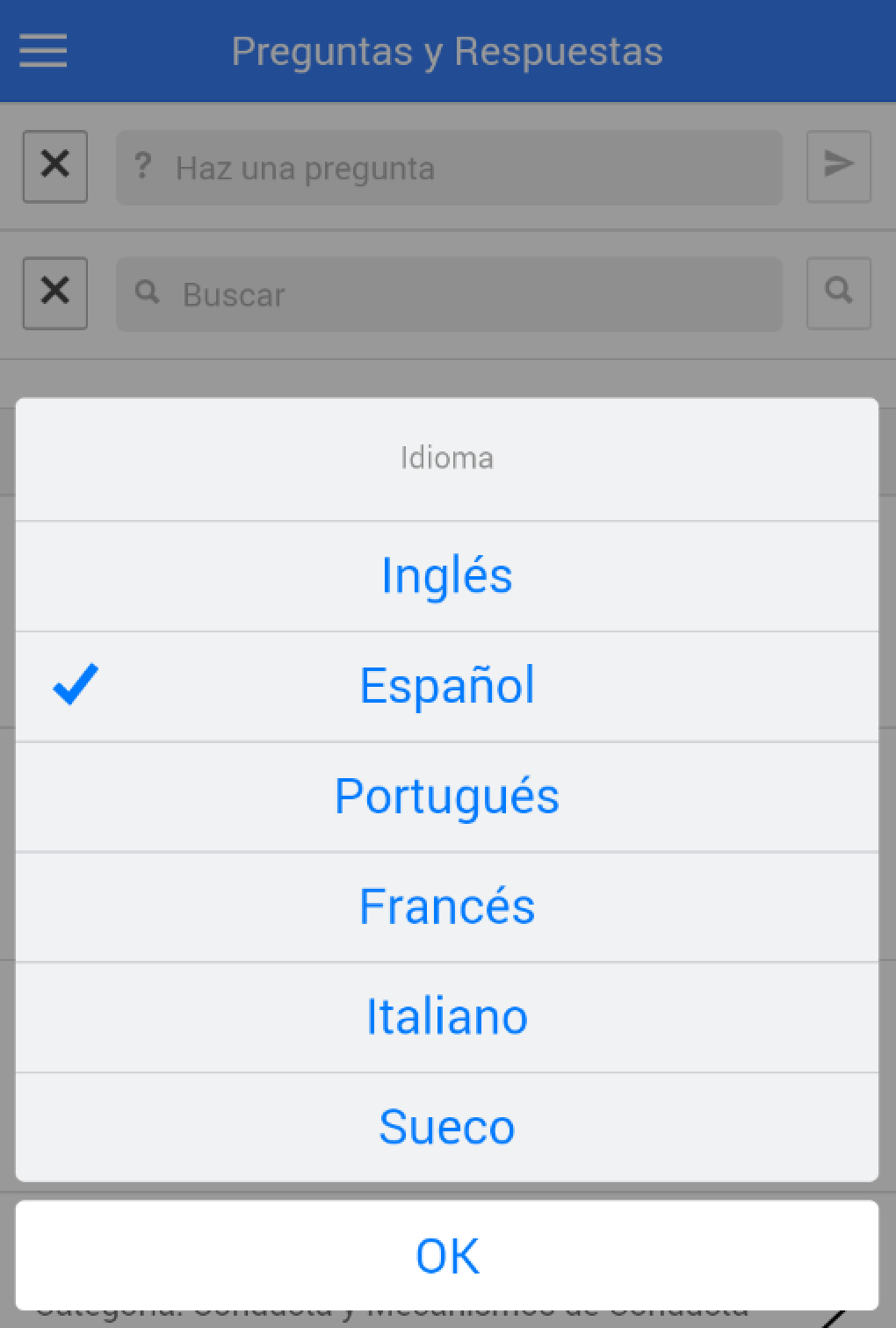 Las preguntas y las respuestas se encuentran clasificadas en las siguientes categorías: