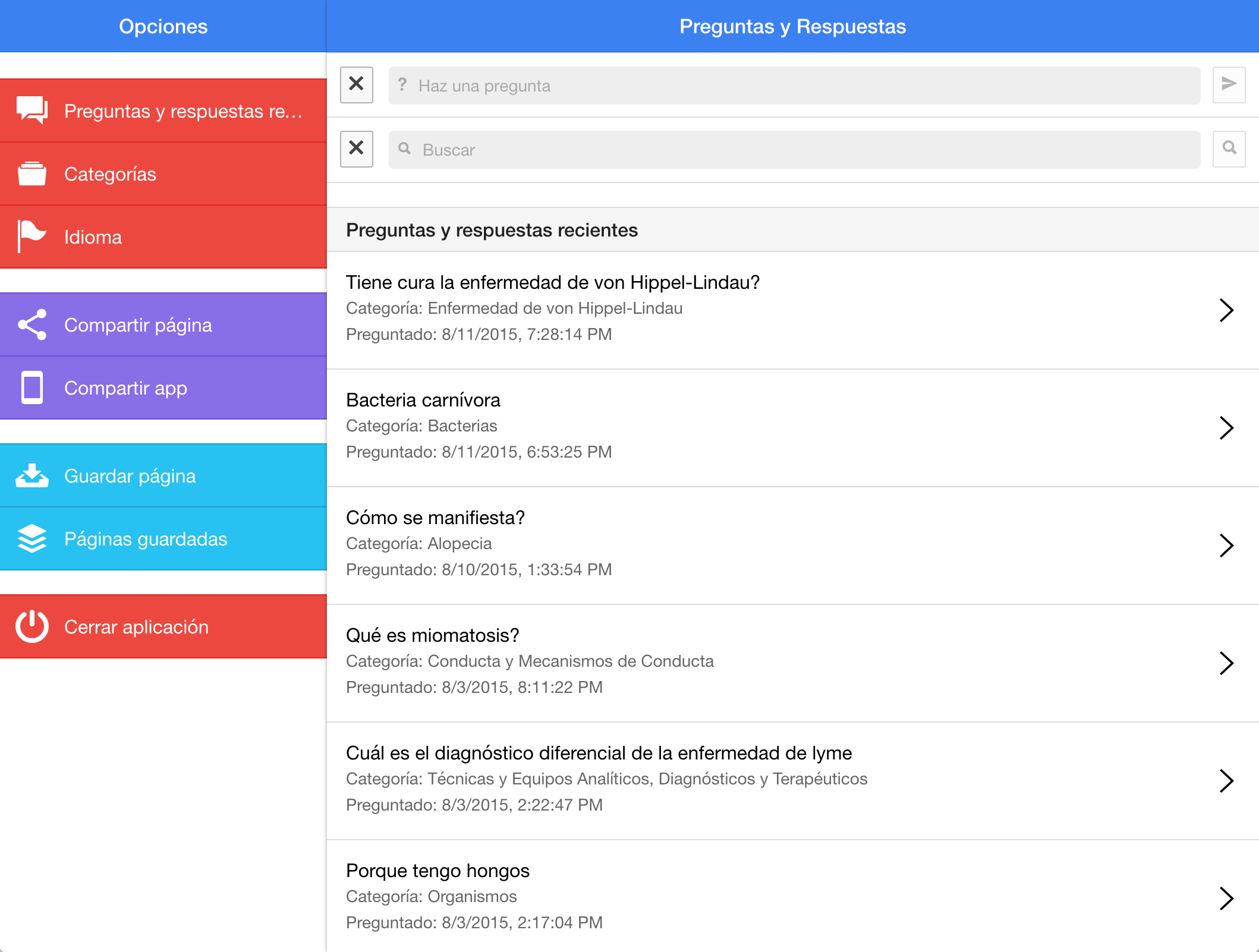 Una aplicación muy sencilla donde puedes enviar fácilmente preguntas sobre medicina y recibir respuestas de otros miembros de la comunidad.