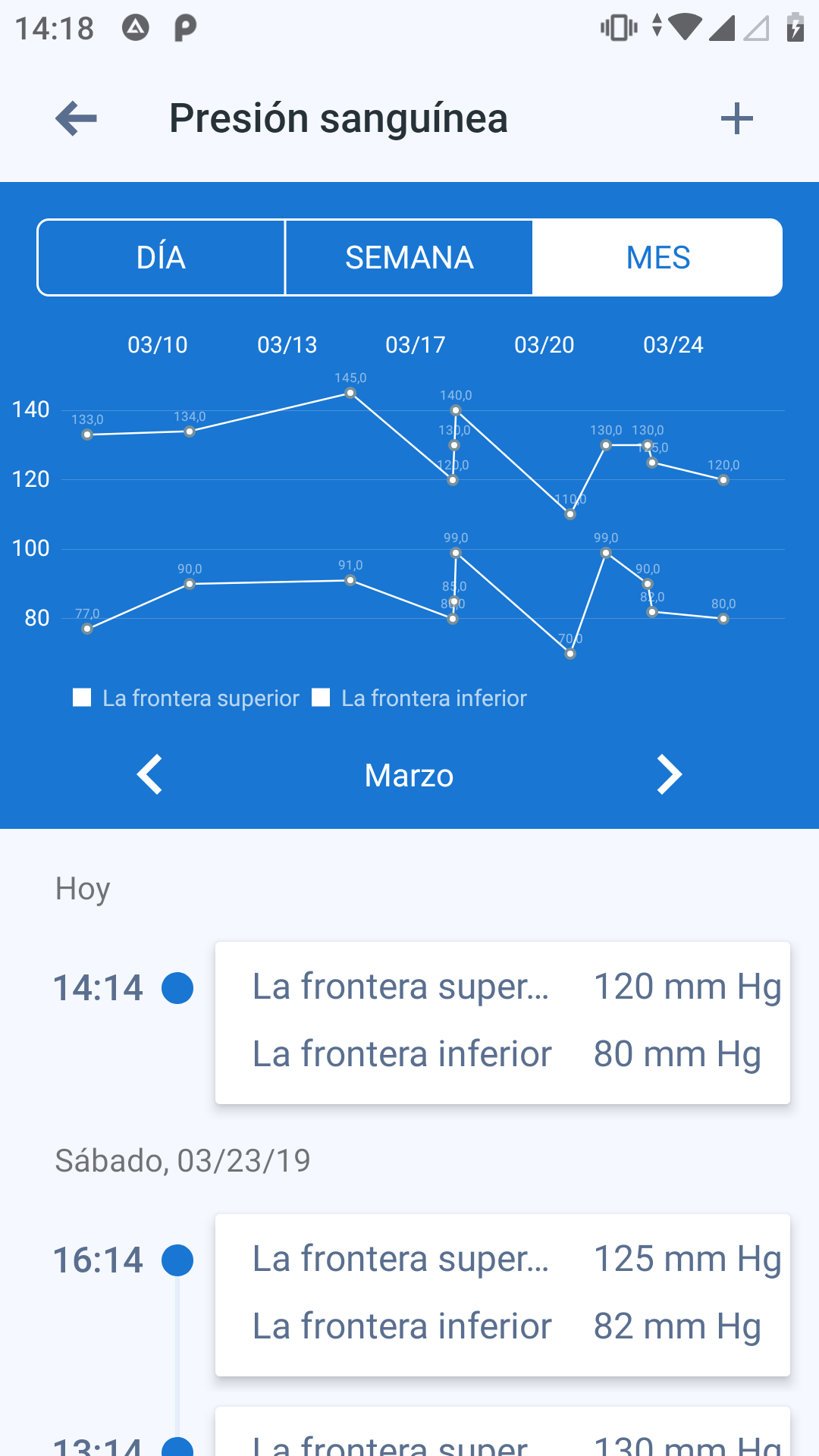 - registro de mediciones de indicadores de salud (nivel de azúcar, presión, etc.).
