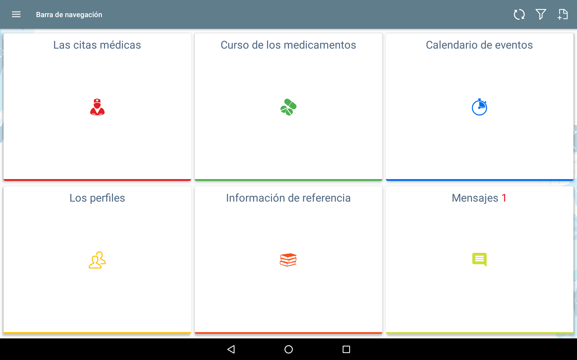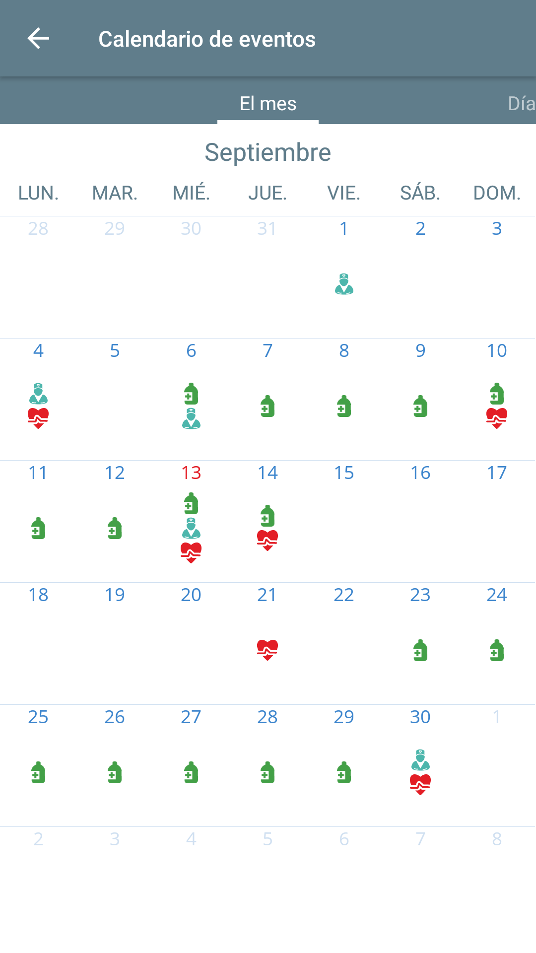 - calendario de eventos (tomar los medicamentos, citas con el médico, los analisises)