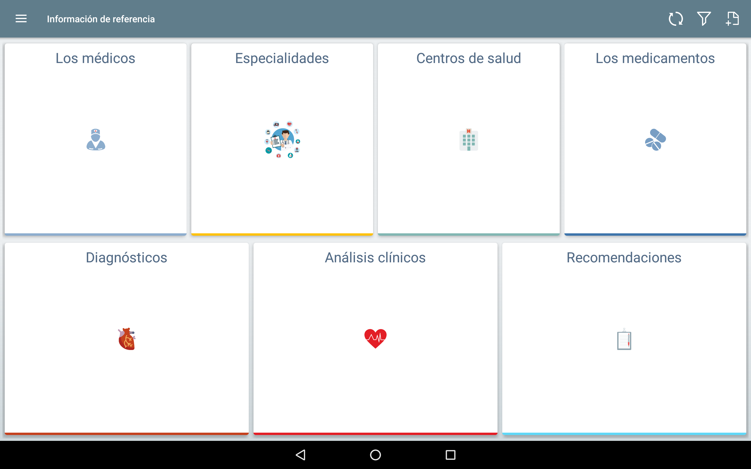 - disponibilidad de manuales para la emtrada preliminar de la información médica (centros de salud, información de contacto de los médicos, los denominaciones de medicamentos, diagnósticos, tipos de los análisis, recomendaciones médicas). Esto permitirá incluir rápidamente en la aplicación la historia médica preexistente.
