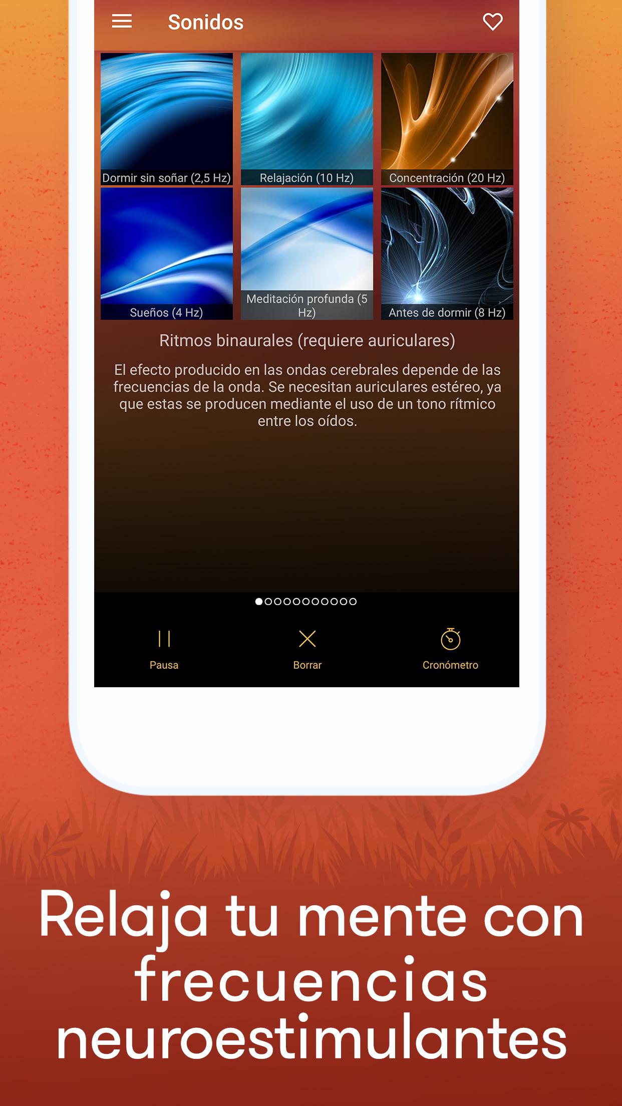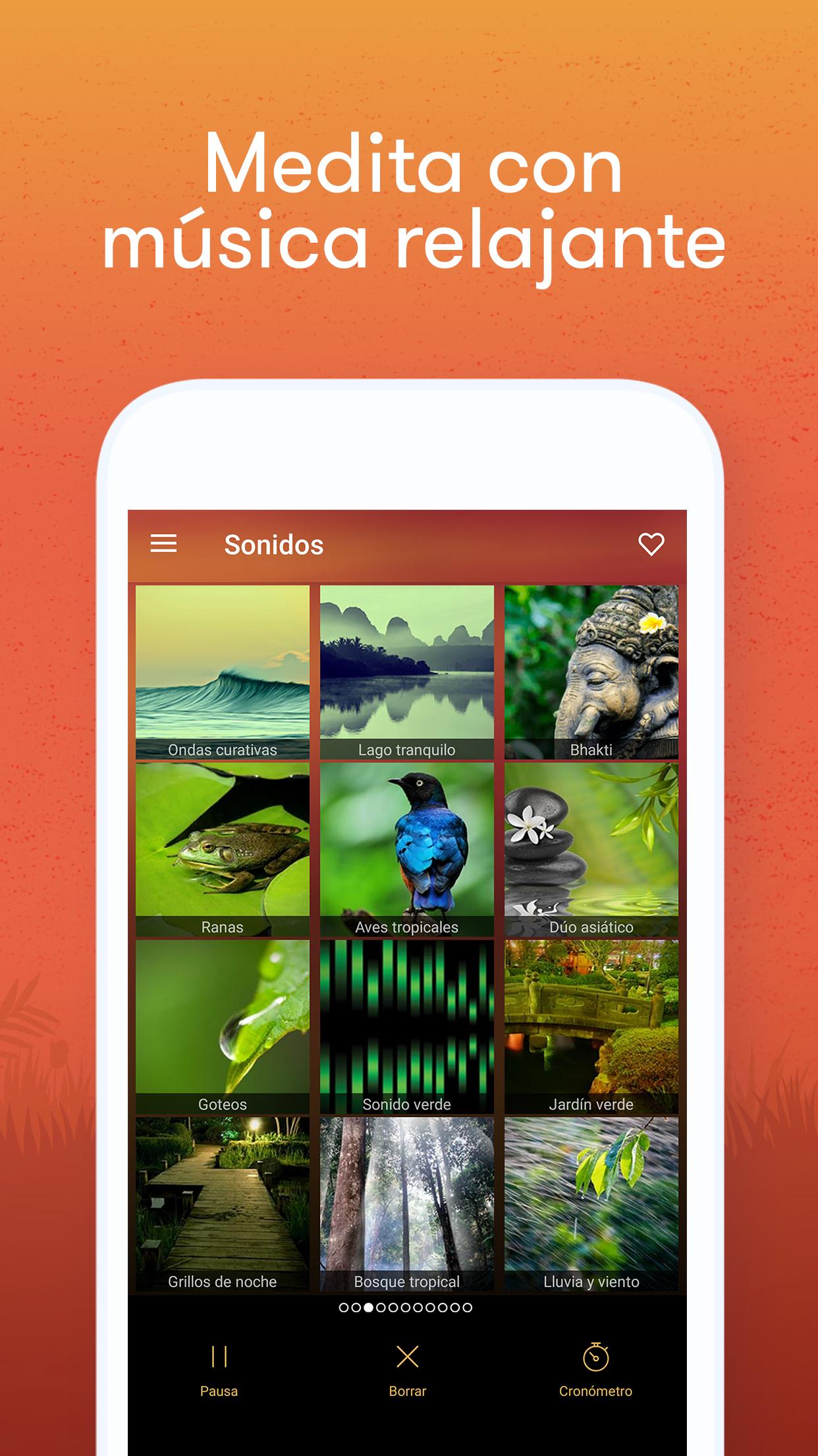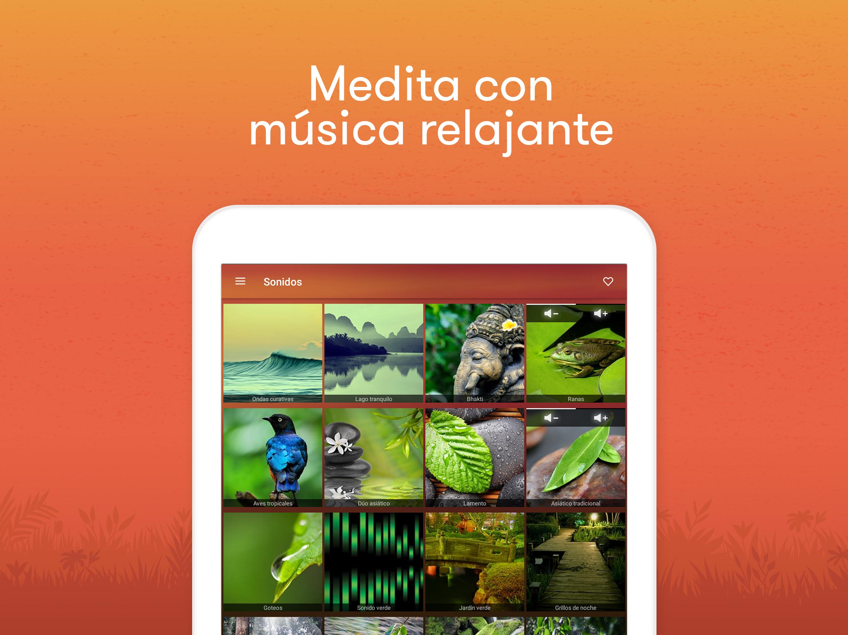 Relax Meditación: Sonidos Relajantes Para Meditar es el asistente ideal para ayudarle a crear un ambiente de relajación y de meditación no importa el lugar o el momento. liberate de la ansiedad e insomnio. Con la ayuda de sonidos zen como agua corriente, pájaros en el bosque o una tormenta lejana acompañada de lluvia, logre a alcanzar un estado de paz para aumentar su meditación. Perfecto para liberar las tensiones físicas durante una sesión de masaje o de Yoga. ★ Parte de las MAS EFECTIVAS aplicaciones para ayudarle a dormir y meditar ★ HASTA 102 SONIDOS incluyendo ruidos blancos y música ★ PERFECTO para el Yoga o cuando se entrena ★ RELAJASE & DUERMA como lo ha hecho hace mucho tiempo Además, la meditación diaria es importante para ayudarle a dormir. Los sonidos blancos están diseñados para superar el insomnio y ansiedad. Ellos le ayudan a alcanzar un estado profundo de relajación. Permiten también lo mejor de cada uno de sus ciclos de sueño cuando esta durmiendo. ☆ COMO FUNCIONA ☆ 1. Crea su ambiente al seleccionar sonidos relajantes y melodías musicales que le gustan 2. Dejase caer naturalmente en un estado de meditación y luego un sueño profundo 3. Despertase lleno de energía 4. Repita los pasos de nuevo si lo necesita ☆ CARACTERISTICAS ☆ ✓ 36 sonidos ambientes de alta cualidad con 3 sonidos binaurales para la sincronización de ondas cerebrales. ✓ La opción de aumentar el nombre de sonidos hasta 102 con 3 sonidos binaurales de más. ✓ Crea su proprio ambiente combinando sonidos con música relajante y ajuste el volumen de cada sonido ✓ Incluye 4 mixes de base para ayudarle a comenzar ✓ Crea, Guarde, Nombre, Clasifique y Escuche de nuevo sus mixes favoritos ✓ Sistema de minutero le permite de establecer una duración maximal a sus mixes favoritos. ¡Perfecto cuando se va a acostar! ✓ Hermosa interfaz con imágenes de alta cualidad ☆ INCLUYE LOS SONIDOS MAS POPULARES ☆ Sonido blanco ♬ Lluvia y viento ♬ Olas de tormenta ♬ Bosque tropical ♬ Aves de verano ♬ Agua ♬Tormenta eléctrica♬ Río bravo ♬ Viento invernal ♬ Bosque tropical ♬ y mucho más! ☆ PRUEBALO AHORA ☆ Aunque es muy popular entre los adeptos de Yoga, Relax Meditación: Sonidos Relajantes se puede utilizar en cualquier contexto para ayudarle a relajar y dormir. Además, meditar adecuadamente no solamente tiene un impacto positivo sobre la salud mental y física. ¡Descargue ahora y comparta con nosotros su experiencia!