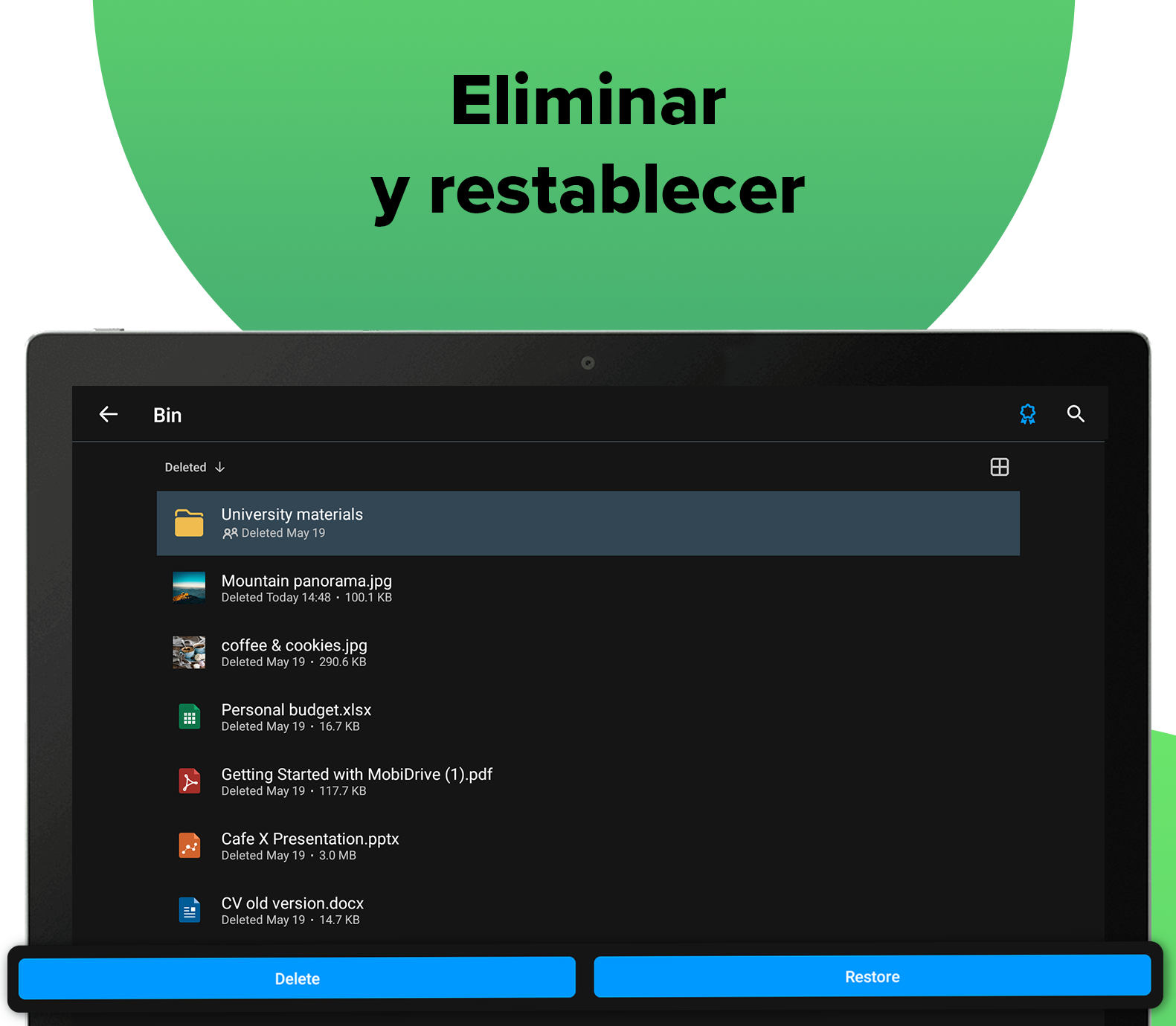 MobiDrive es un sistema de almacenamiento en la nube ágil, seguro y sin publicidad con prácticas funciones para proteger, sincronizar y acceder a todos sus archivos. Gracias a su almacenamiento gratuito de 20 GB disponible mediante inicio de sesión y a sus amplias capacidades multiplataforma, MobiDrive garantiza la transferencia segura de contenidos con independencia del formato de archivo, el dispositivo, la plataforma o la ubicación. UNIDAD SEGURA CON MUCHO ESPACIO DE ALMACENAMIENTO - ¿Quiere 20 GB de almacenamiento gratuito en la nube, sin publicidad y sin ataduras? Cree una cuenta, reclame su almacenamiento gratuito y sincronice o haga una copia de seguridad de cualquier archivo. - ¿Necesita un almacén práctico para vídeos y archivos, pero las 20 GB gratuitas no son suficientes? ACCESO INSTANTÁNEO A SUS ARCHIVOS - La transferencia de contenidos de MobiDrive es sencilla y rápida. Proteja y sincronice en segundos archivos y carpetas en su unidad. - Asegúrese de que su almacenamiento de fotos y vídeos esté siempre actualizado con la copia de seguridad automática de fotos y vídeos. - Gracias a las funciones multiplataforma de MobiDrive, puede sincronizar su unidad y crear una copia de seguridad en cualquier dispositivo móvil, PC con Windows o navegador. POTENTE GESTIÓN DE ARCHIVOS PARA MANTENER ORDENADA SU UNIDAD - MobiDrive admite los principales formatos de archivo de imagen, vídeo y ofimáticos, lo que lo convierte en una solución ideal para almacenar fotos y vídeos o un espacio seguro para sus archivos de trabajo. - Convierta archivos a más de 1200 formatos de archivo y garantice la compatibilidad de los archivos de su unidad. - Organizar su unidad después de cada copia de seguridad o transferencia de contenido es un fastidio. Utilice las colecciones para organizar sus archivos por tipo. - Acceda rápidamente a los archivos utilizados anteriormente en la sección de archivos recientes. ASEGÚRESE DE QUE SUS ARCHIVOS ESTÉN SIEMPRE SEGUROS - ¿Ha borrado un archivo por error? Restablézcalo desde la papelera. - Acceda a las versiones anteriores de cualquier archivo almacenado en su unidad en la nube. - Cualquier archivo de su unidad está protegido durante 30 días, por lo que si se ha borrado o modificado siempre podrá recuperarlo. COMPARTA Y TRANSFIERA CONTENIDOS SIN ESFUERZO - ¿Necesita compartir urgentemente un archivo pero su dispositivo no está cerca? Solo tiene que sincronizar los archivos de su unidad en cualquier dispositivo móvil, PC con Windows o navegador para transferir contenidos de forma rápida y segura. - Transferir contenidos nunca ha sido tan fácil. Comparta en segundos con amigos y familiares sus preciados recuerdos desde su almacenamiento de fotos o vídeos. - Disfrute de las secciones "Compartido conmigo" y "Compartido por mí" para vigilar cualquier transferencia de contenido que implique archivos en su unidad. - Marque un archivo de su unidad como disponible "sin conexión" para usarlo sin necesidad de sincronizar o tener conexión a internet. - Comparta archivos desde su unidad como un adjunto. HAGA MÁS CON PRÉMIUM - Hasta 2 TB de almacenamiento en la nube: Asegúrese de que dispone de almacenamiento en la nube incluso para grandes transferencias de contenidos actualizando su unidad hasta 2 TB. - 180 días de protección de archivos: Restablezca los archivos eliminados desde la papelera y acceda al historial de versiones por un periodo más amplio de hasta 180 días. - Convierta archivos en más de 1200 formatos: Si un archivo de su unidad no es compatible, conviértalo a los principales formatos de archivo de imagen, vídeo y ofimático. - Paquete ofimático OfficeSuite Premium: Cámbiese a la licencia de 2 TB de MobiDrive y consiga un producto innovador para sus archivos de oficina. OfficeSuite comparte una integración multiplataforma con MobiDrive que le permite sincronizar y hacer copias de seguridad de sus archivos ofimáticos en cualquier lugar.