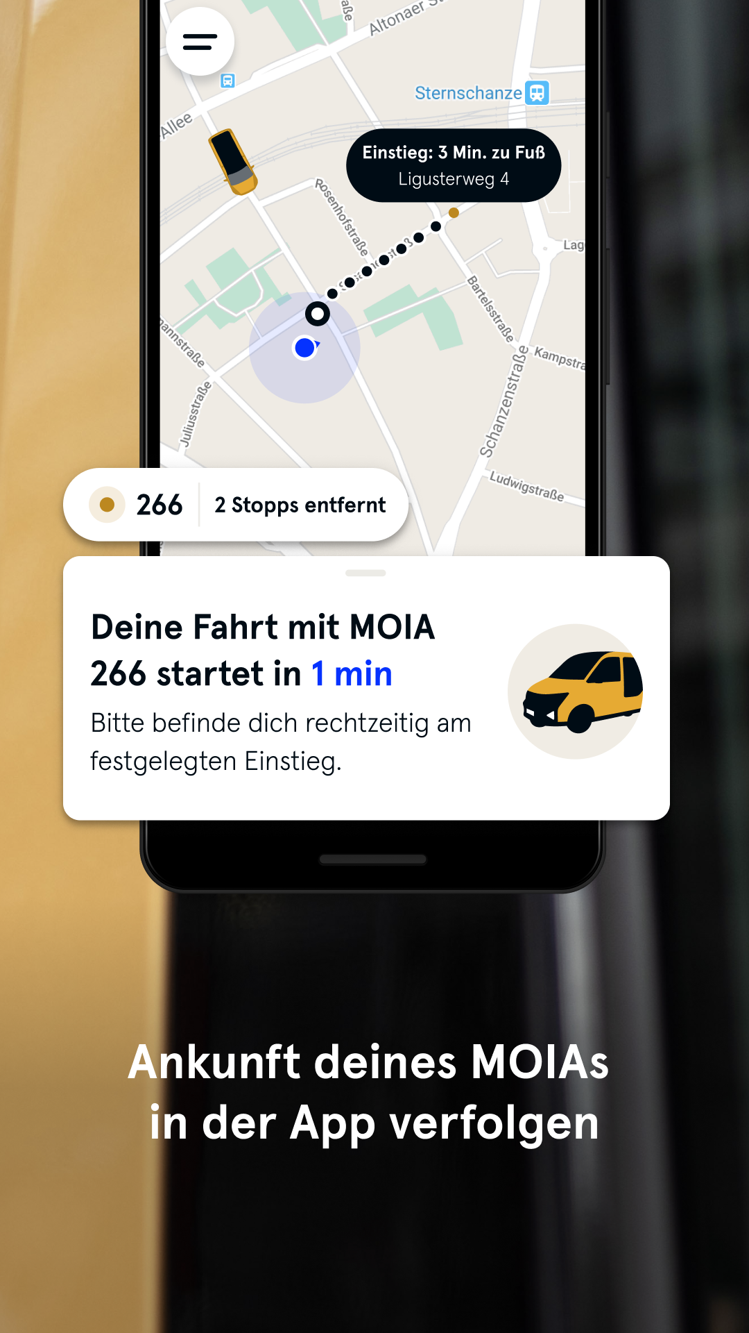 En Hamburgo y Hannover, tu MOIA te lleva a tu destino de forma relajada: a la estación principal, al tren oa los puntos más importantes de la ciudad. Deje su automóvil, reserve su viaje cómodamente a través de la aplicación y pague con tarjeta de crédito, PayPal o Google Pay. Cualquiera que viaje habitualmente en bicicleta o scooter encontrará la alternativa perfecta libre de emisiones en el MOIA Shuttle totalmente eléctrico. Sin cambiar de transporte público, molesta búsqueda de plaza de aparcamiento o vías innecesarias. Pero con cómodos asientos privados, WiFi y puertos USB para cargar tus dispositivos. Comparte su viaje con hasta cinco pasajeros y, por lo tanto, es particularmente barato en la carretera. Por supuesto, la aplicación le dirá cuánto costará, dónde lo recogerán y cuándo espera llegar. Esto le ahorra estrés y las calles concurridas de todos los demás.