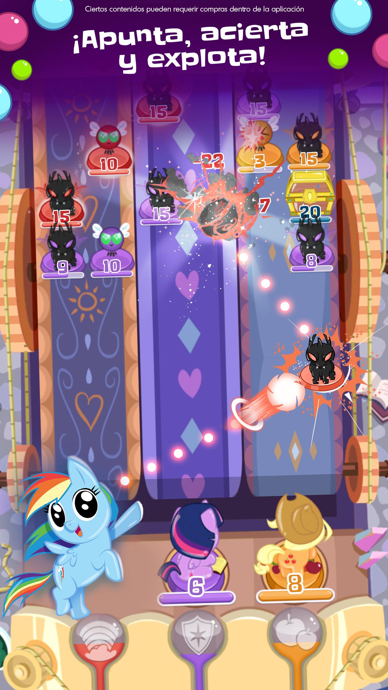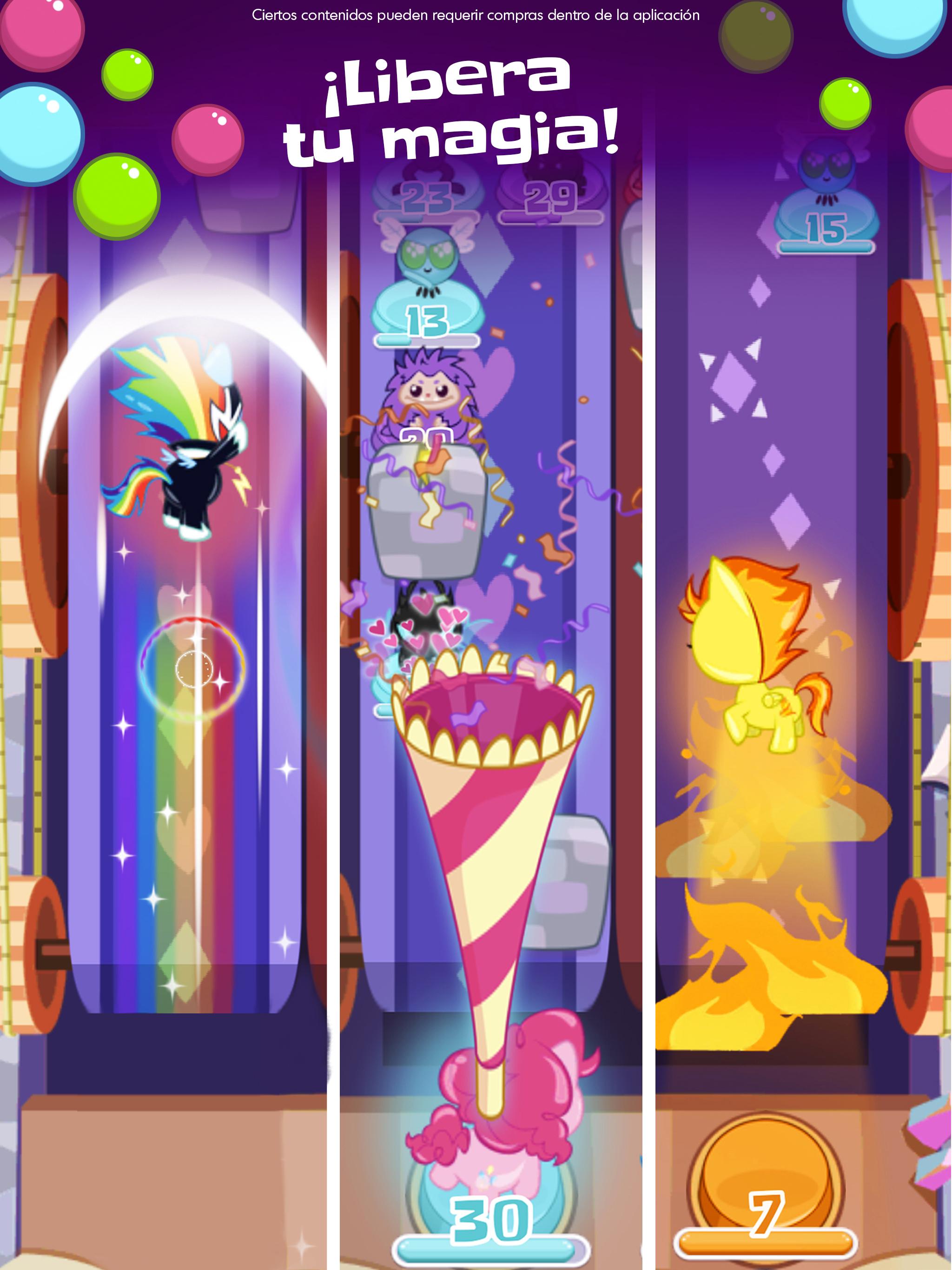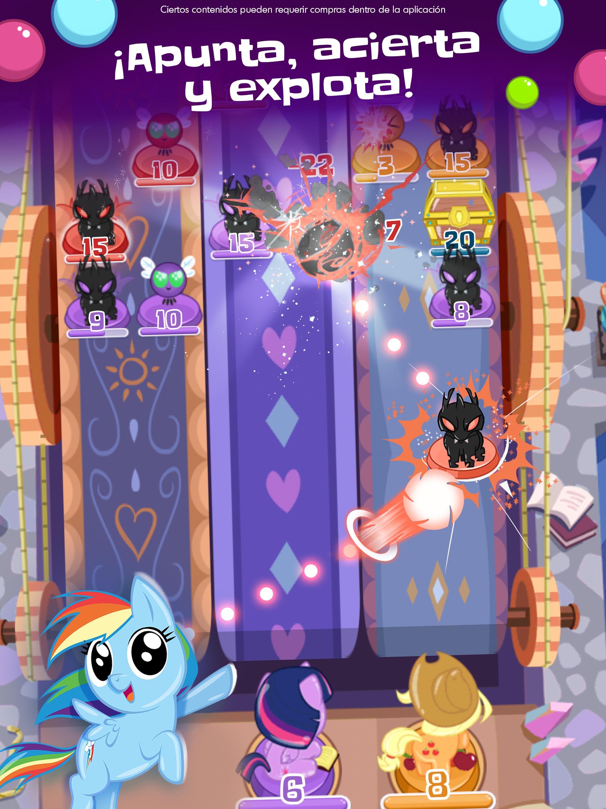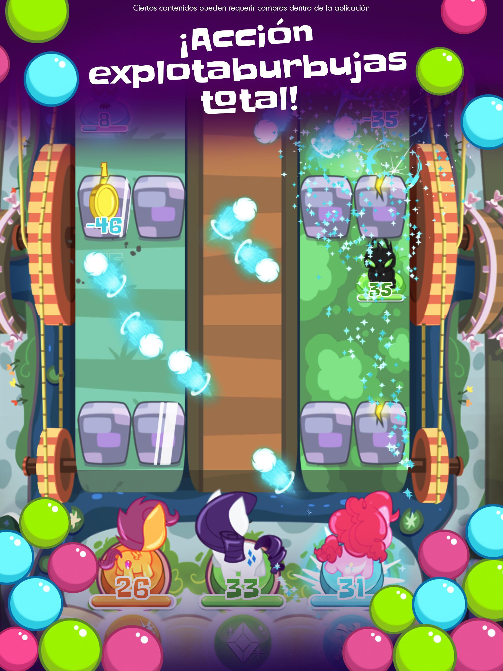 ¡Apúntate a la Escuela de la Amistad con TWILIGHT SPARKLE y tus personajes favoritos de MY LITTLE PONY™ en este increíblemente divertido juego arcade de explotar burbujas! ¡Acabas de llegar a la escuela y enseguida tendrás que participar en el primer y maravilloso Campeonato de Ponis de Bolsillo! ¡Enfréntate a campeones, estudiantes y maestros en apasionantes desafíos arcade utilizando las exclusivas figuritas de Ponis de Bolsillo! ¡Colecciónalos todos para crear tu equipo perfecto!