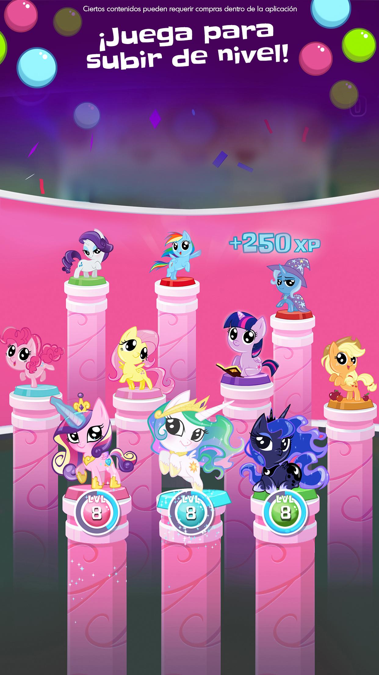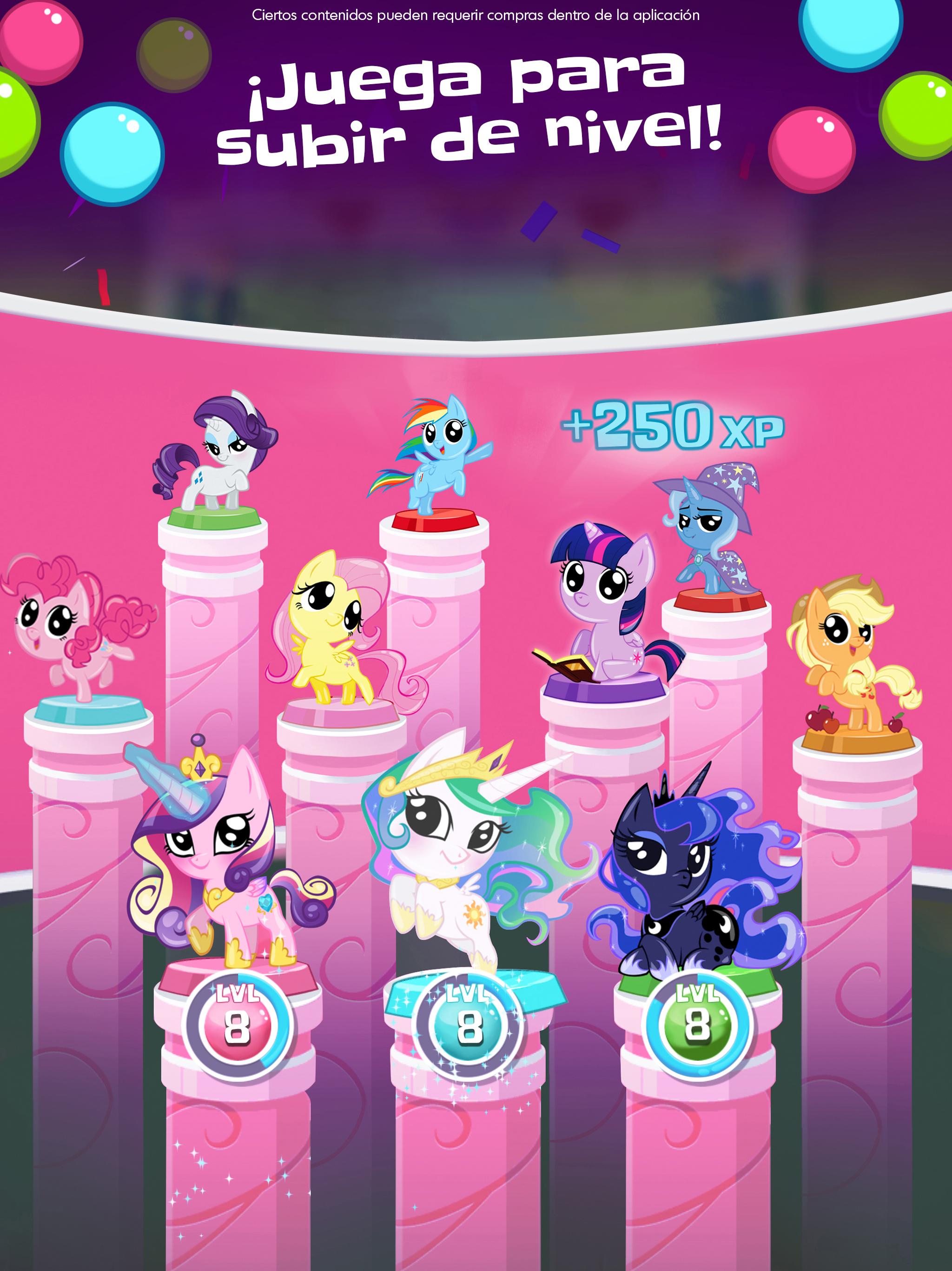 • ESCALA PUESTOS para enfrentarte a nuestros legendarios Ponis de Bolsillo Campeones: ¡RAINBOW DASH, APPLEJACK o PINKIE PIE!