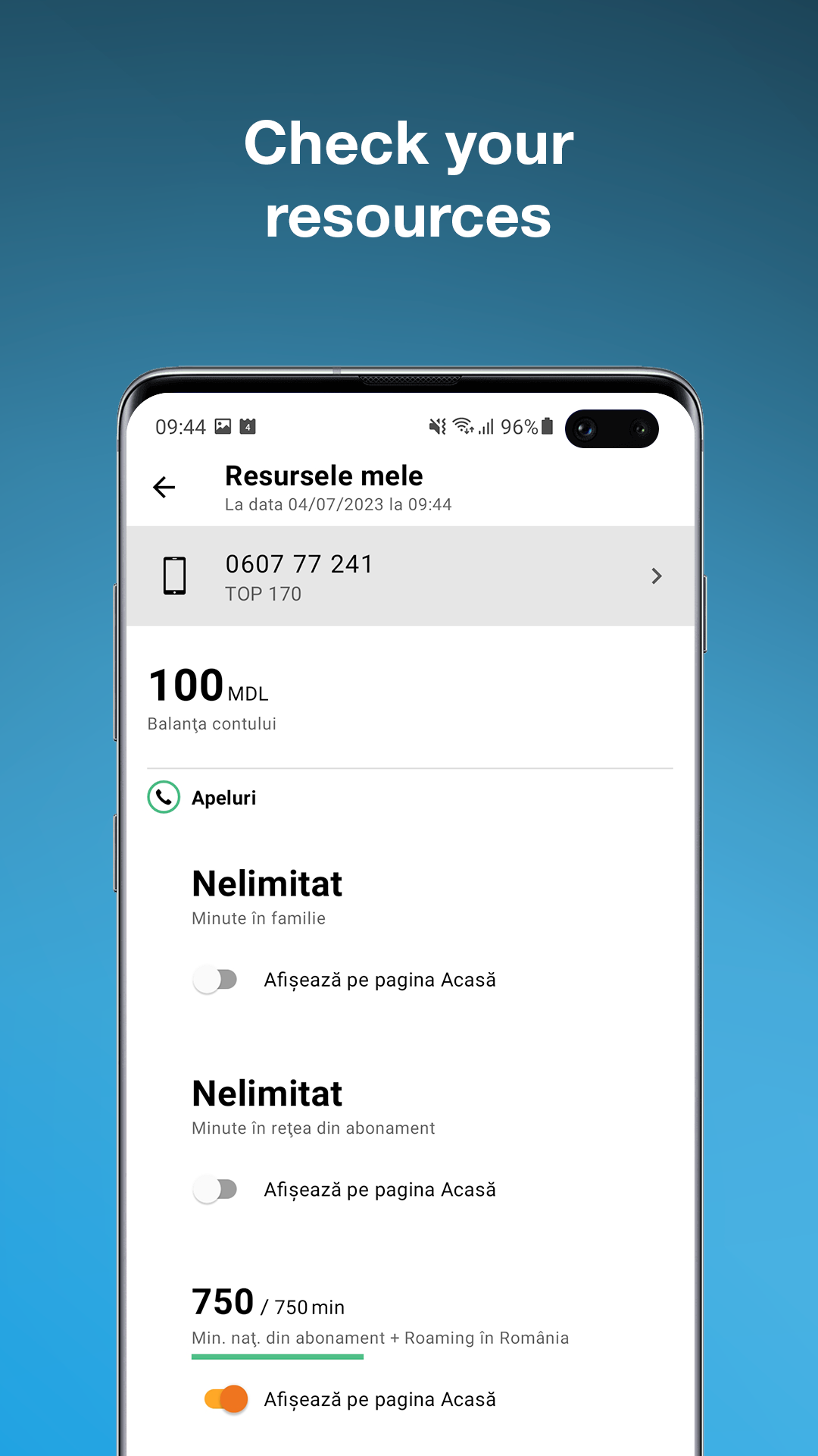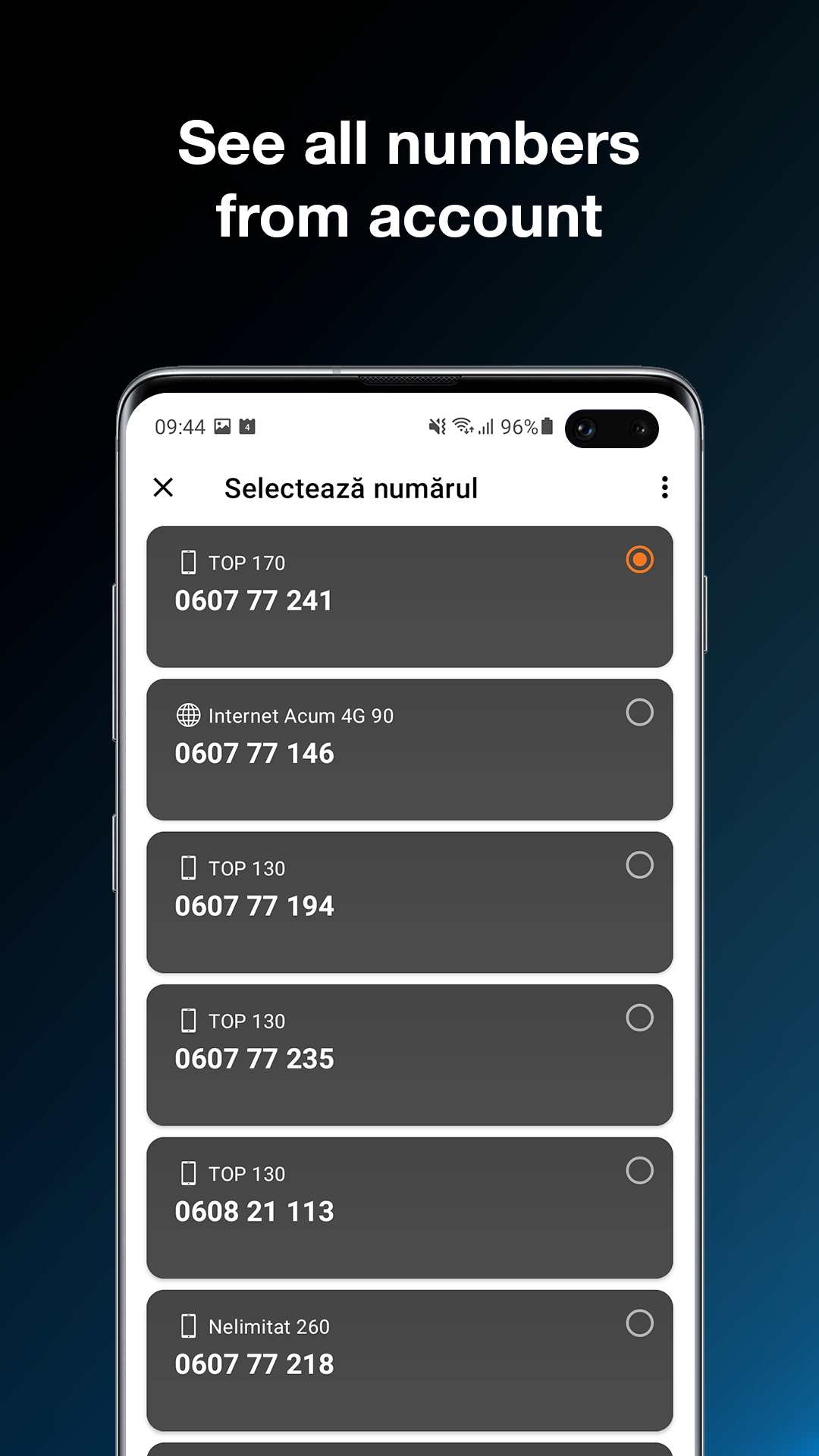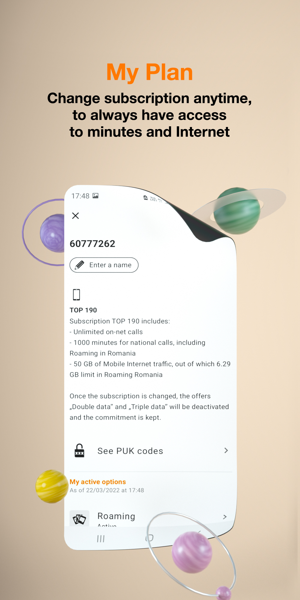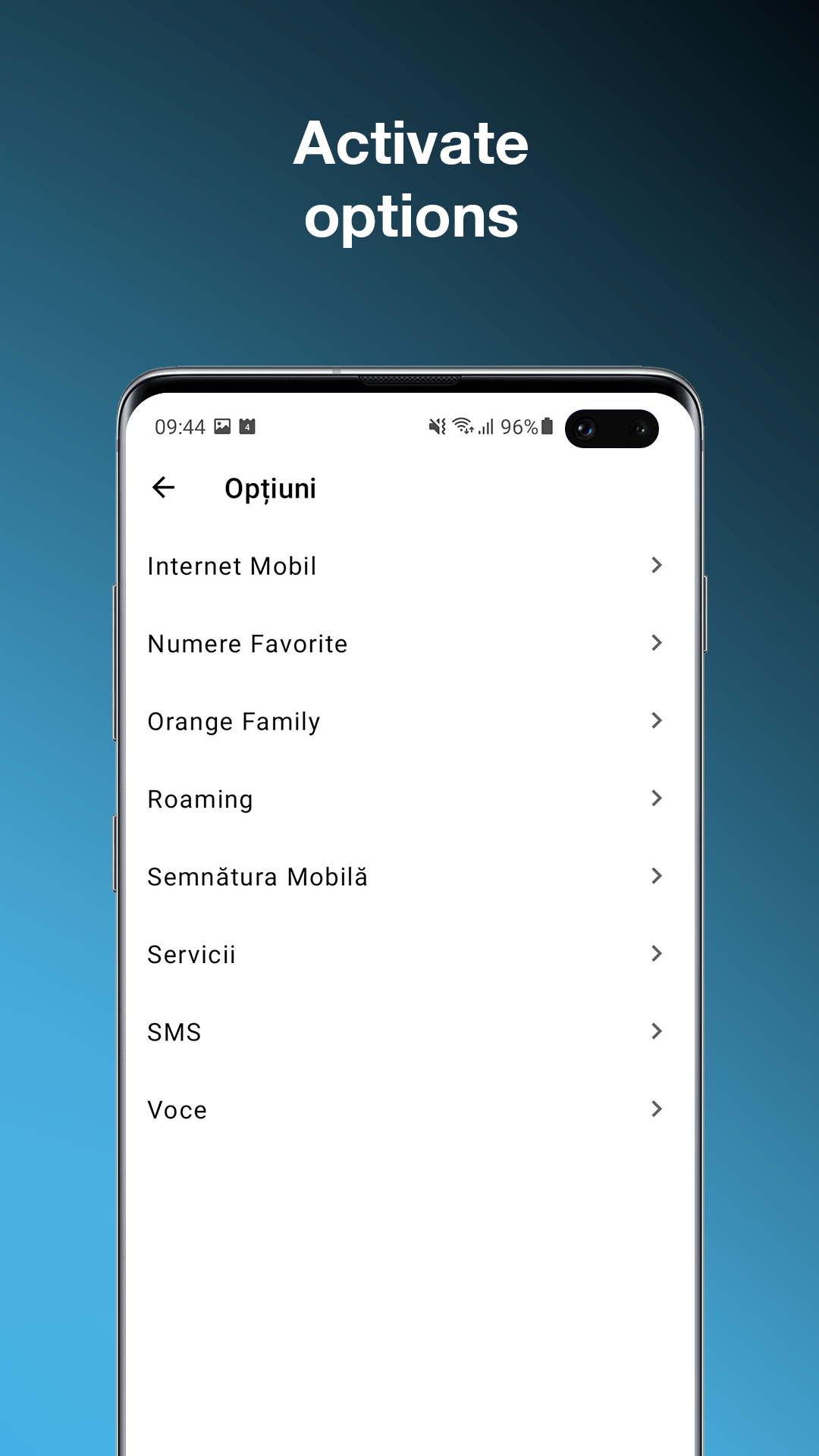 Con My Orange puede verificar el saldo de su cuenta, agregar opciones y servicios, administrar Números favoritos, recargar en línea cualquier cuenta Orange con una tarjeta bancaria y cambiar su plan de tarifas sobre la marcha, dondequiera que esté, con solo un clic. Hay más por venir. Tenemos un montón de funciones adicionales planeadas para My Orange durante los próximos meses, así que esté atento a las actualizaciones. Lo que necesitas saber: · La aplicación está disponible para todos los clientes de Orange Abonament, PrePay e Internet Acum PrePay; · Necesita una conexión a Internet 3G / 4G para autenticarse con éxito en My Orange; · Una vez autenticado, puede utilizar cualquier conexión de datos, incluido Wi-Fi; · La sesión de autenticación es válida por 14 días y se reiniciará automáticamente por otros 14 días cada vez que abra la aplicación usando una conexión Orange 3G / 4G; · Además, puede autenticarse a través de WiFi con una cuenta de Orange; · El tráfico utilizado para descargar la aplicación se cobrará a su tarifa estándar; · El tráfico utilizado dentro de la aplicación es gratuito, excepto las secciones "Orange Stores" y "Orange Chat"; · Cuando utilice My Orange en roaming, el tráfico de datos se cobrará de acuerdo con sus tarifas y opciones de roaming. Más detalles en https://www.orange.md/?l=1&p=1&c=11&sc=1111