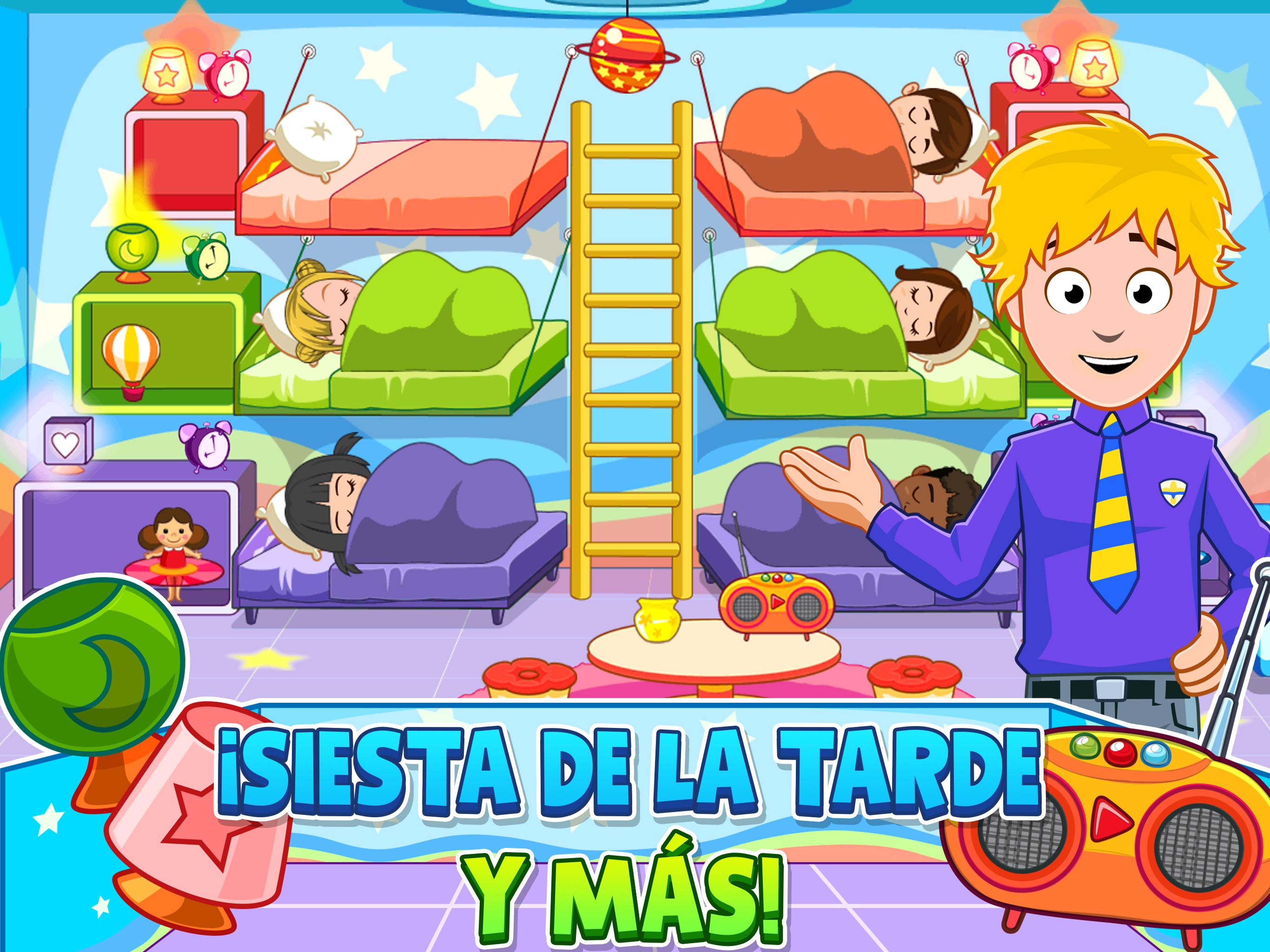 Te damos la bienvenida a Mi Ciudad: Jardín de Infantes. Crea, imagina y juega en tu propio jardín de infantes. ¡Juega y diviértete horas a pura imaginación en el patio de juego, visitando la enfermería de la escuela, aprendiendo, haciendo almuerzos súper sabrosos y mucho más! ¿DE QUÉ SE TRATAN LOS JUEGOS DE MI CIUDAD? Nuestros juegos motivan la imaginación y el entretenimiento. Al crear un entorno libre de estrés, sin límites, reglas ni objetivos, los niños pueden crear una infinita cantidad de historias y aventuras. Mi Ciudad es la mejor casa de muñecas digital basada en lugares del día a día que nuestros niños encuentran en el mundo real. LO NUEVO Sabemos lo mucho que te gustó la nueva función de emociones que introdujimos y las agregamos para todos los personajes de Mi ciudad: Jardín de Infantes. ¡Así que ahora los niños pueden llorar en la enfermería de la escuela, reír en el patio o asombrarse viendo los nuevos trajes y juguetes! ** ¡Queríamos agradecerles a todos nuestros fans, a los 3,5 millones! ** JUEGA, IMAGINA Y DESCUBRE El nuevo jardín de infantes ahora está abierto y listo para explorar y descubrir. Busca actividades y accesorios para completar tu aventura. Viste a tus hijos, llévalos al baño, véndalos cuando se lastimen o simplemente diviértete en el almuerzo. Todo es posible. CARACTERÍSTICAS -8 lugares de entretenimiento: sala de enseñanza, baño, enfermería, patio, cafetería y sala de siesta -Se agregaron emociones nuevas para todos los personajes; ahora puedes hacer reír, llorar, sonreír, enloquecer, asombrar a cualquier personaje -Un montón de personajes, como maestros de preescolar, niños y padres -Sala de enfermería escolar donde puedes examinar a los niños, vendarlos y hasta hacerles un control de la vista en caso de que necesiten anteojos. -Ropa de estación para todos los niños y un montón de trajes para disfrazarse GRUPO DE EDAD RECOMENDADO Niños y adultos pueden disfrutar de jugar juntos. El juego fue creado para que los niños de 3 años jueguen con sus padres perfectamente, o que los niños de 12 jueguen solos. El control parental total y la ausencia de compras integradas y anuncios hacen de nuestros juegos un entorno seguro para nuestros hijos. ¡CUÉNTANOS QUÉ TE PARECE! Nos encanta escuchar tus ideas y queremos ayudar donde haga falta. Únete a nosotros o ponte en contacto por Facebook: https://www.facebook.com/mytowngames Twitter: https://twitter.com/mytowngames Sitio web: http://www.My-Town.com