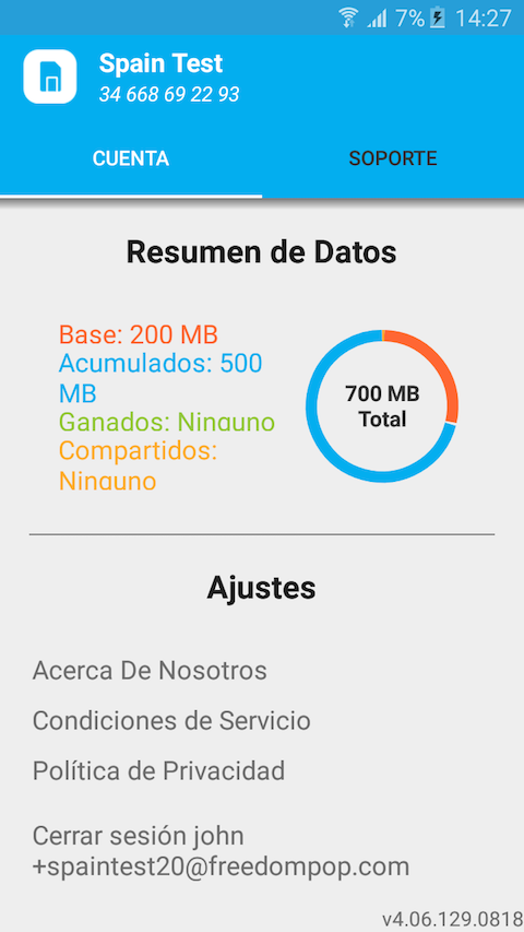 MiFreedomPop permite gestionar tus cuentas FreedomPop desde smartphone o tablet Android. A través de esta aplicación tendrás acceso, de manera fácil y segura, a todas las funcionalidades de tus cuentas FreedomPop, incluyendo: Resumen del uso de datos ¿Problemas al acceder a tu cuenta? Restablece tu contraseña Cambia tu plan de datos Revisa tu plan de datos Añade o cancela servicios Revisa los detalles de los servicios Controla y gana más datos gratis Accede a las FAQs de facturación, uso y funcionalidades Para utilizar la aplicación necesitas una cuenta FreedomPop activa. Si todavía no te has dado de alta, sigue este enlace https://es.freedompop.com/ para registrarte y descarga la aplicación miFreedomPop desde el Play Store