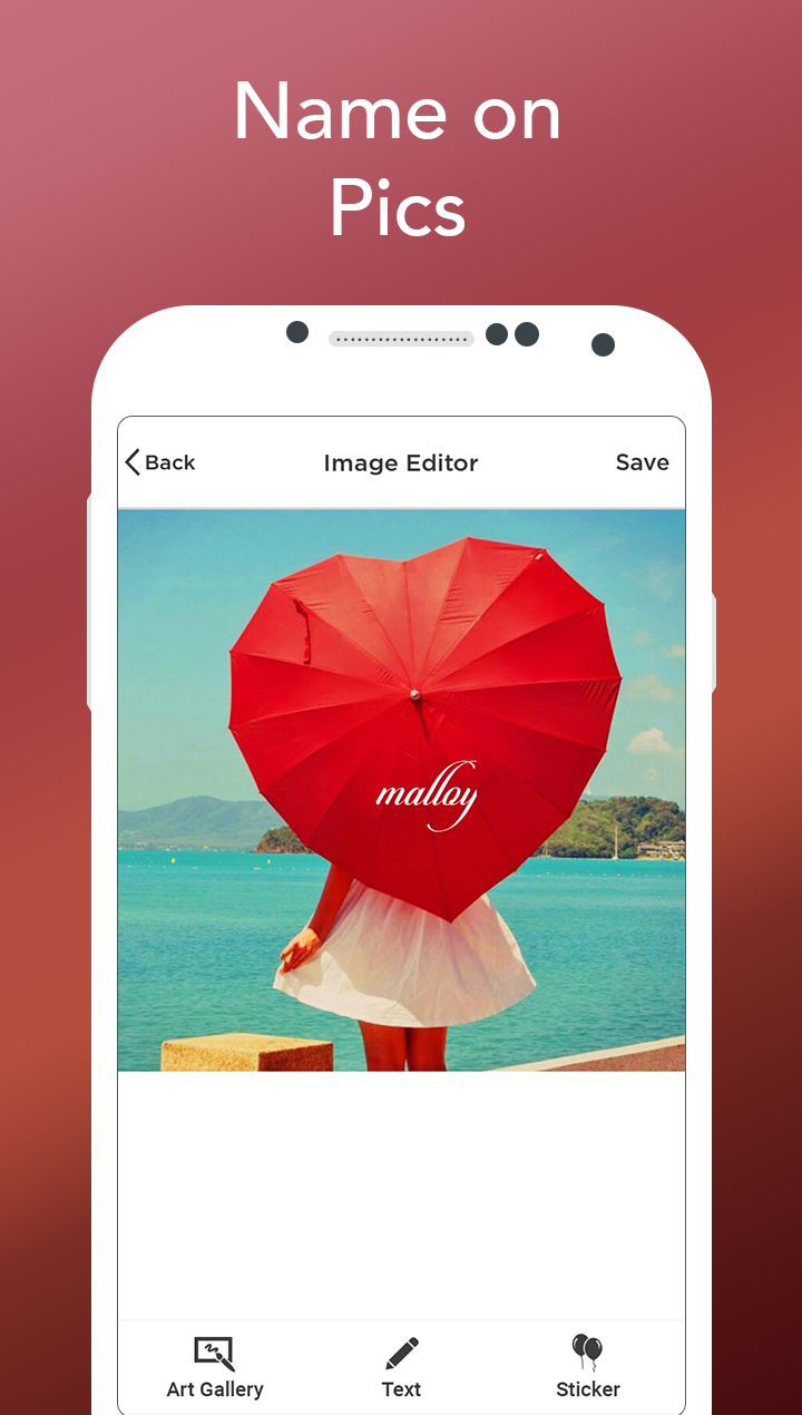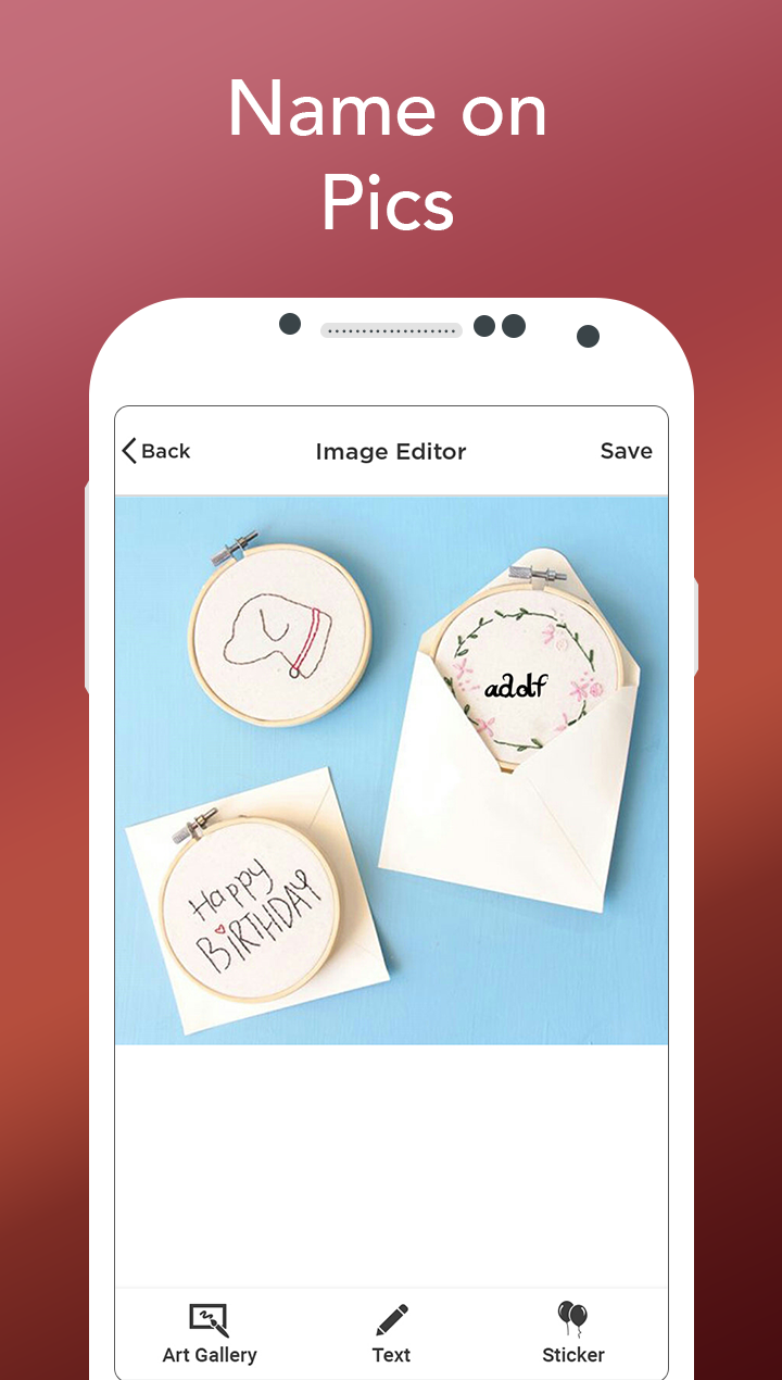 Name On Pics give user to choice select any one pics out of 45 best HD Pics and to write Name on it with best stylish font and also set stickers of your choice.
